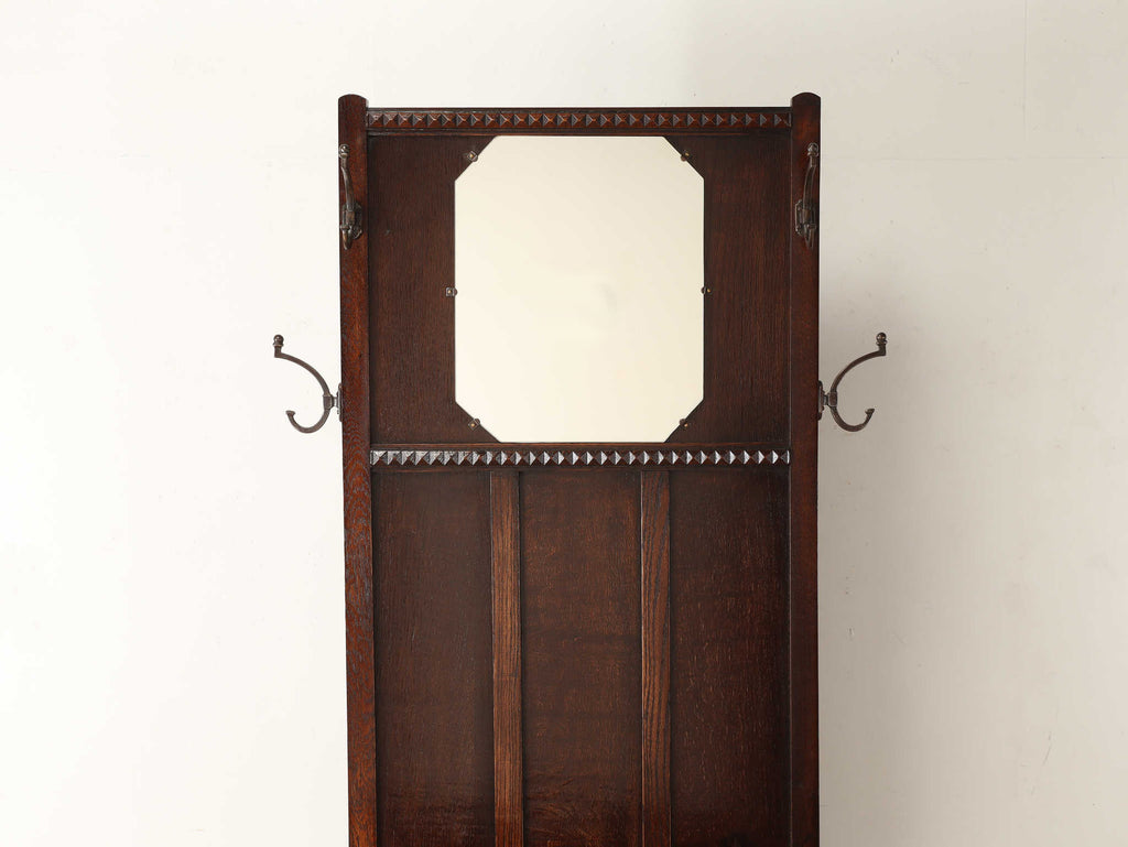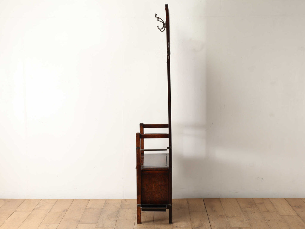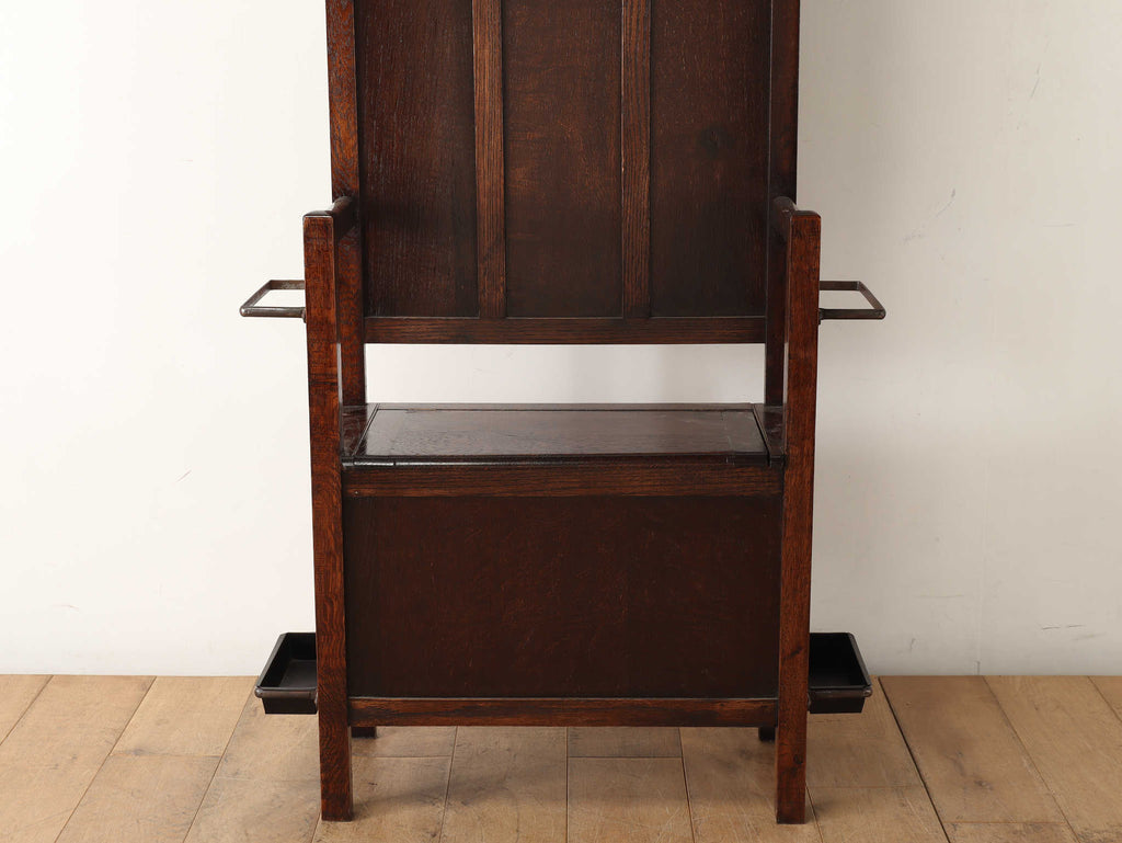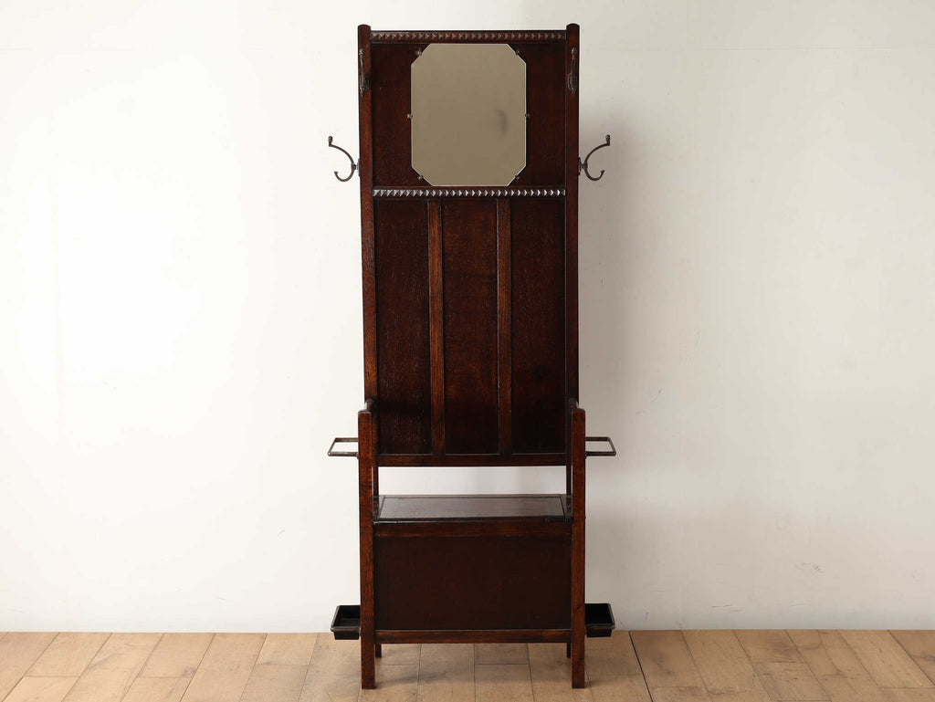 オーク材の堅牢な佇まいが魅力的なホールスタンド。その名の通り、当時より玄関ホールおける、お出かけ前の身支度を整える場所の1つとして設けられていました。美しいオーク材の杢目を存分に生かしたシンプルなデザインはさることながら、ベンチやミラー、フックやボックス収納など、玄関周りにあると便利な機能が凝縮されている点も大きな魅力です。玄関先のみならず、ドレッシングルーム等に取り入れてみてはいかがでしょうか。