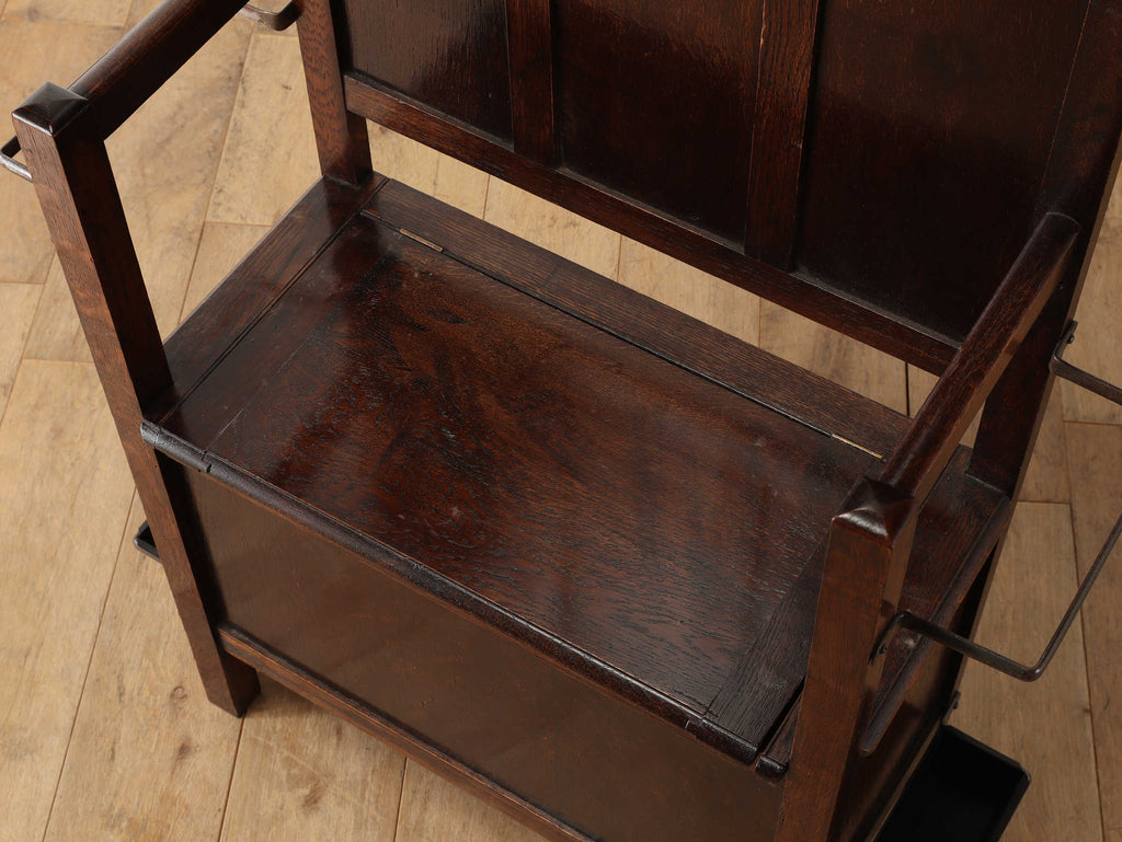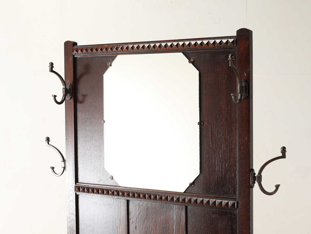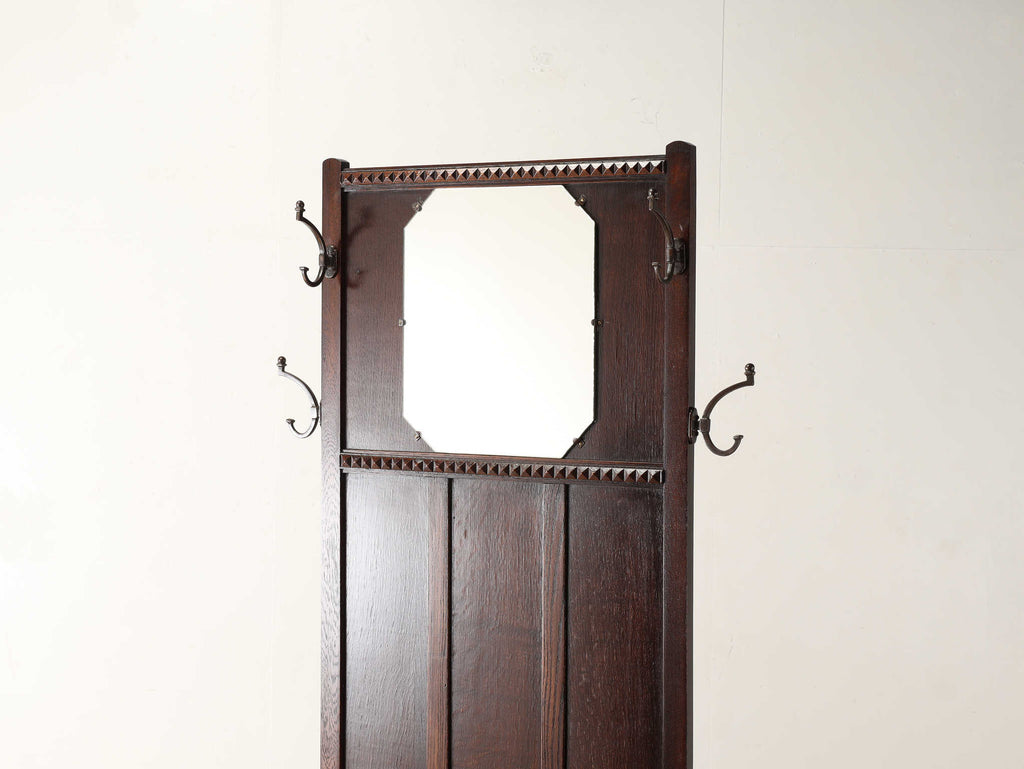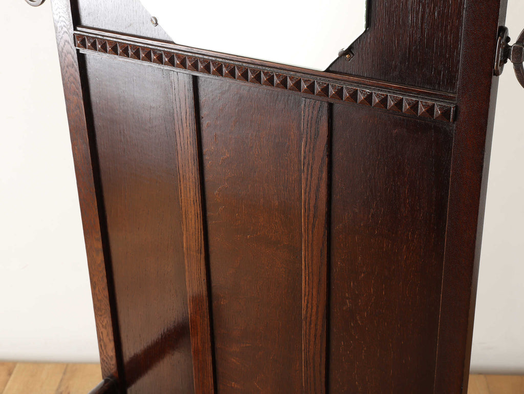 オーク材の堅牢な佇まいが魅力的なホールスタンド。その名の通り、当時より玄関ホールおける、お出かけ前の身支度を整える場所の1つとして設けられていました。美しいオーク材の杢目を存分に生かしたシンプルなデザインはさることながら、ベンチやミラー、フックやボックス収納など、玄関周りにあると便利な機能が凝縮されている点も大きな魅力です。玄関先のみならず、ドレッシングルーム等に取り入れてみてはいかがでしょうか。