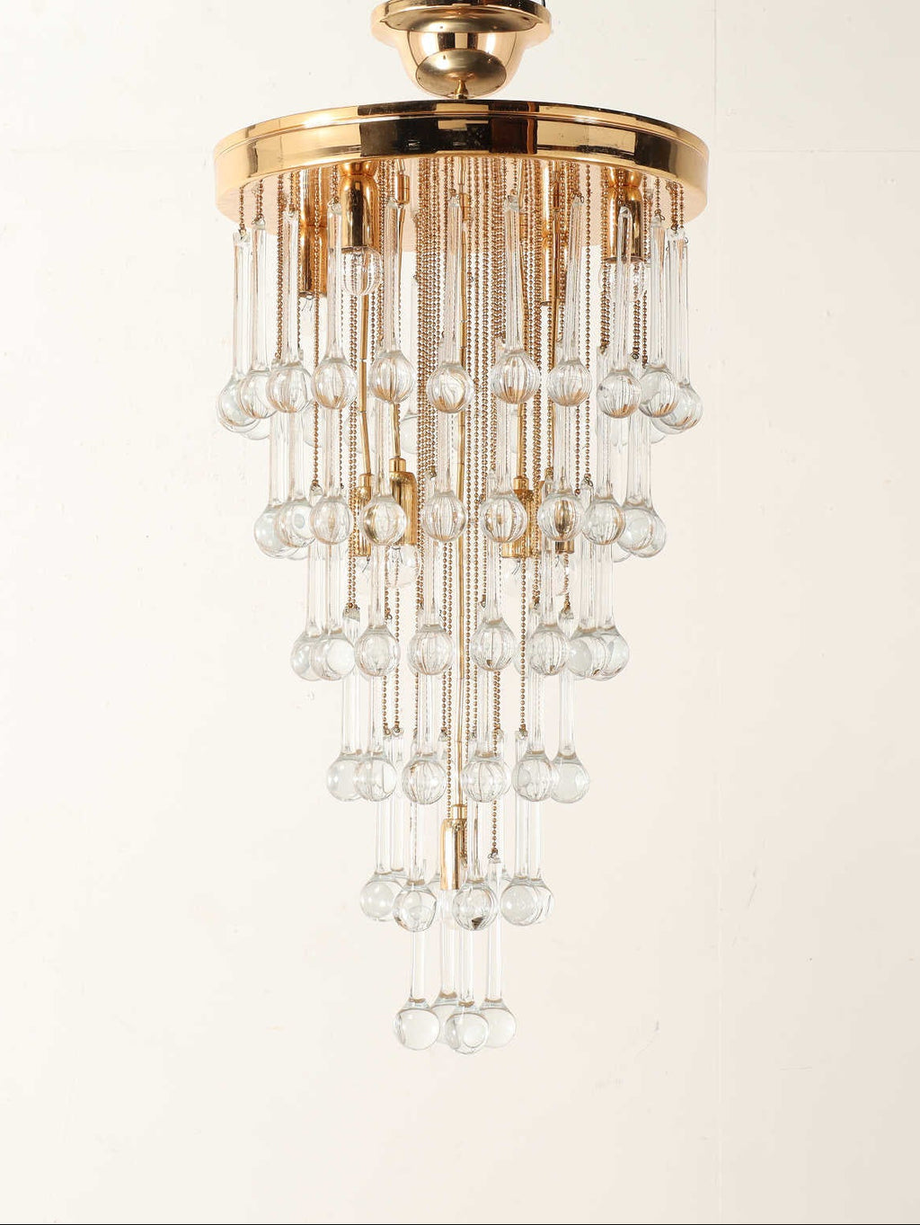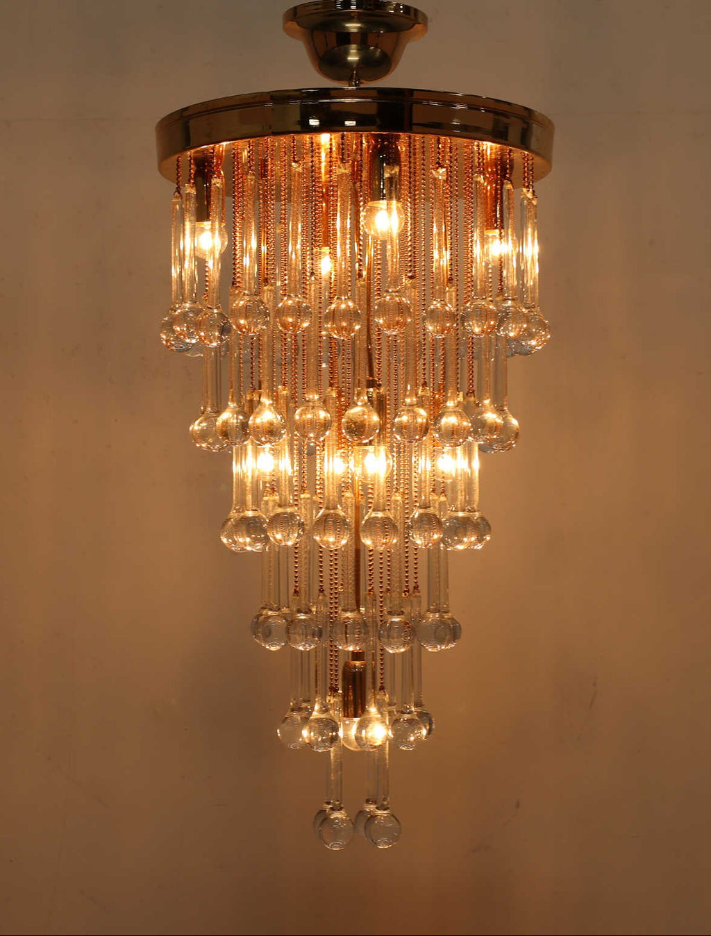 垂直に落ちる一つ一つの装飾の先にガラスが付き、光の反射が美しい近未来的なデザインのシーリングランプです。点灯した際ももちろんのこと、自然光による光の反射も美しく、空間をデザインしてくれる一品です。ゴールドの華やかなデザインは、木目調のクラシカルな空間にもコンクリートなどの無機質な空間にも合うスタイリッシュなアイテムです。