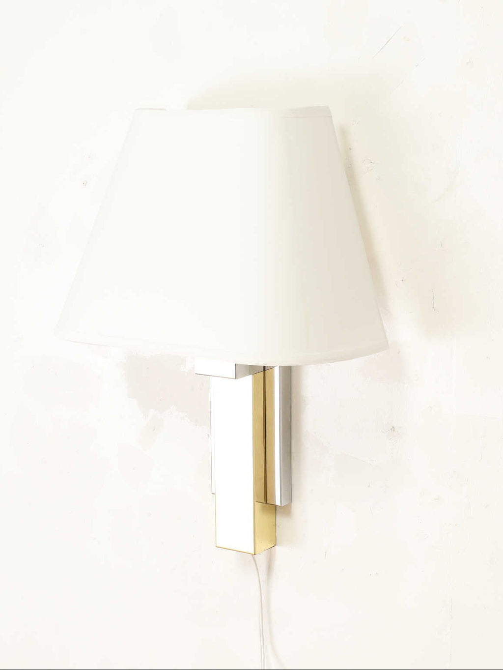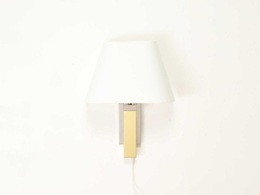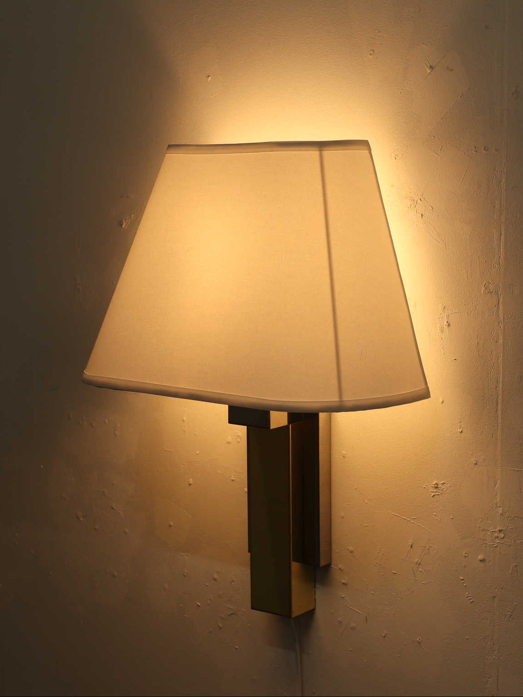 対照的なメタルのデザインが現代的かつシャープな印象を与えるウォールランプ。存在感のある佇まいは、空間にアクセントを加えてくれるでしょう。間接照明として灯した際はもちろんのこと、照明を付けていない時でも素材の持つ雰囲気を存分に楽しんでいただけるアイテムです。玄関先や寝室など、一息付きたい空間にいかがでしょうか。