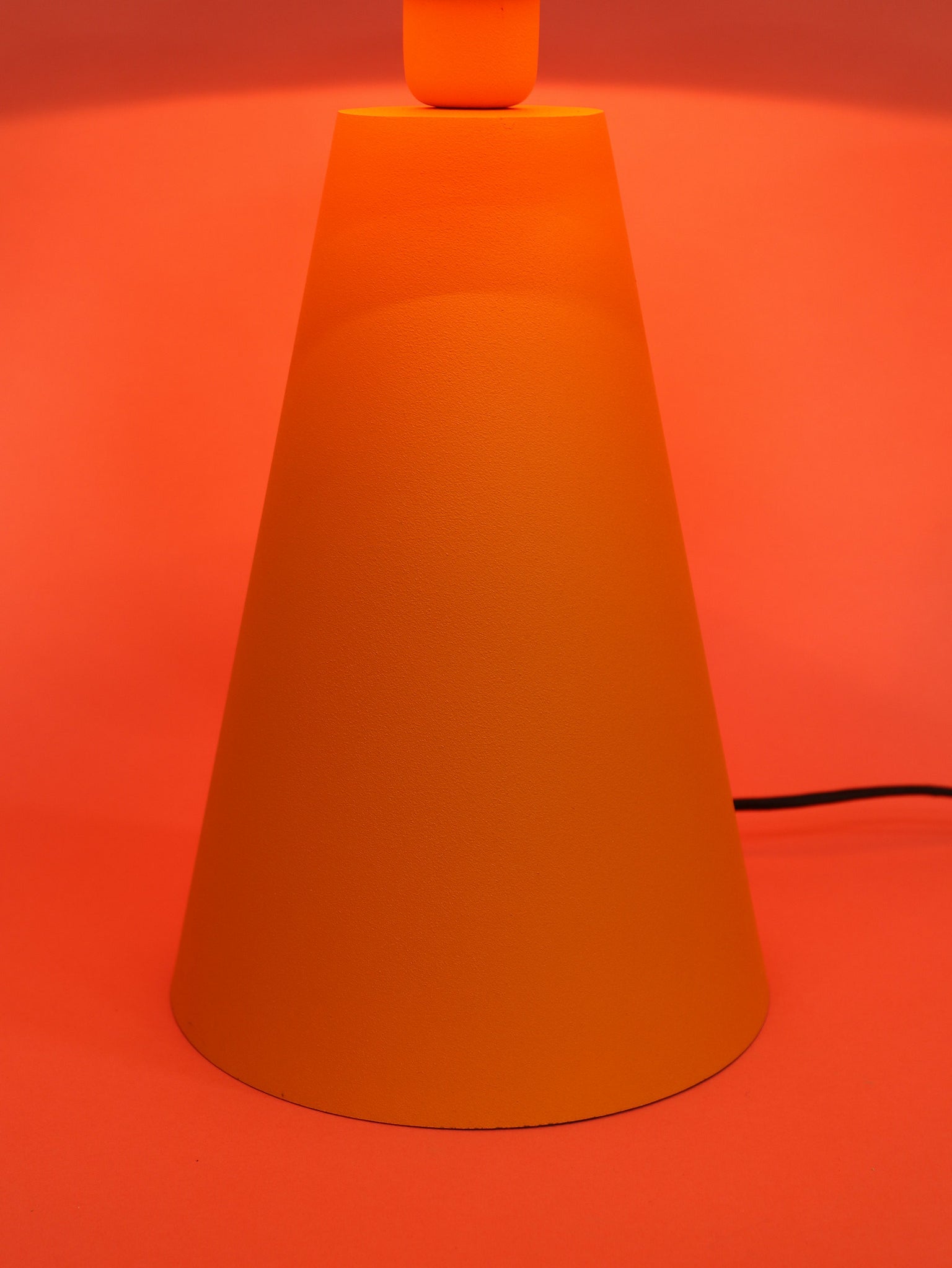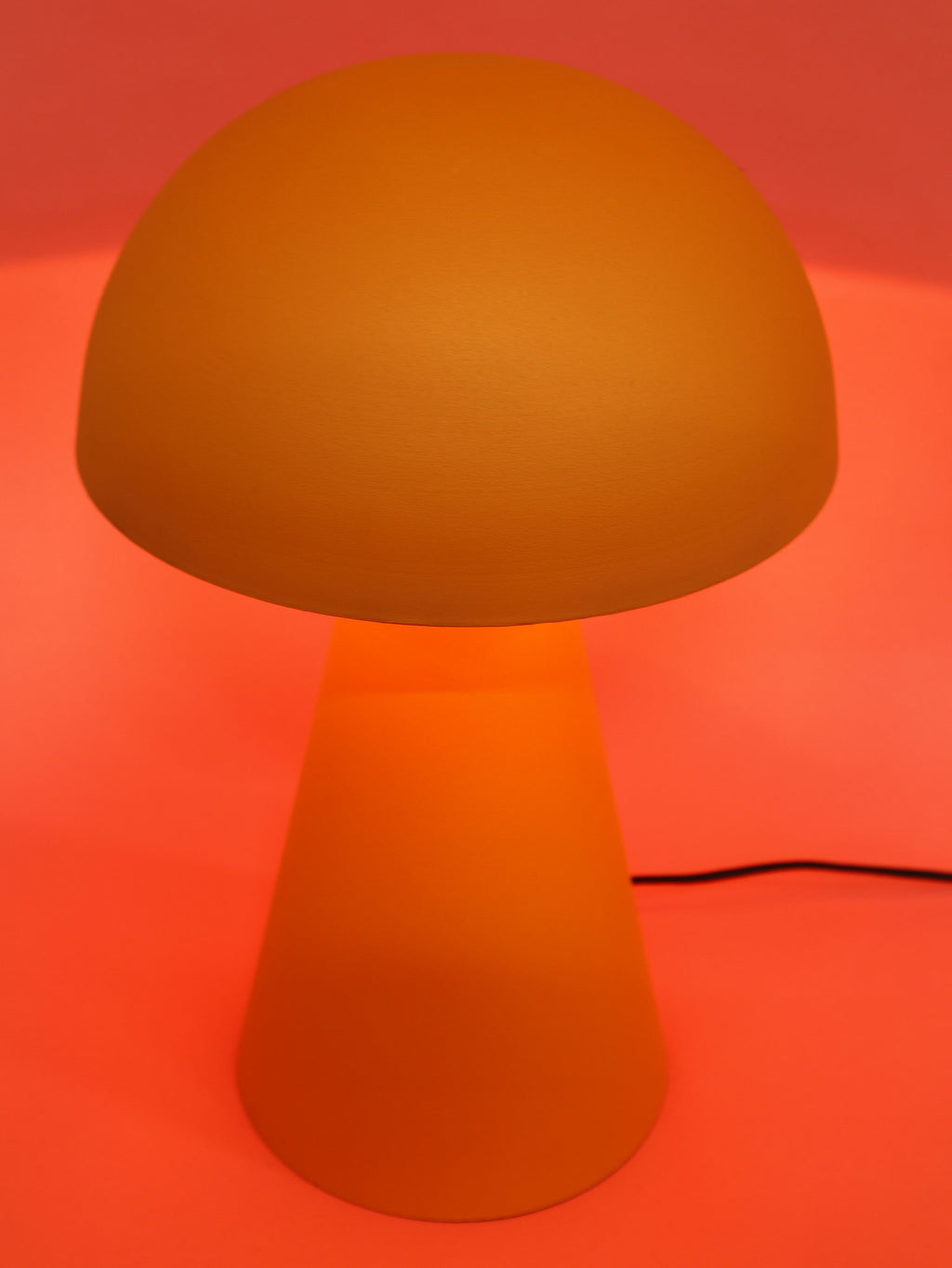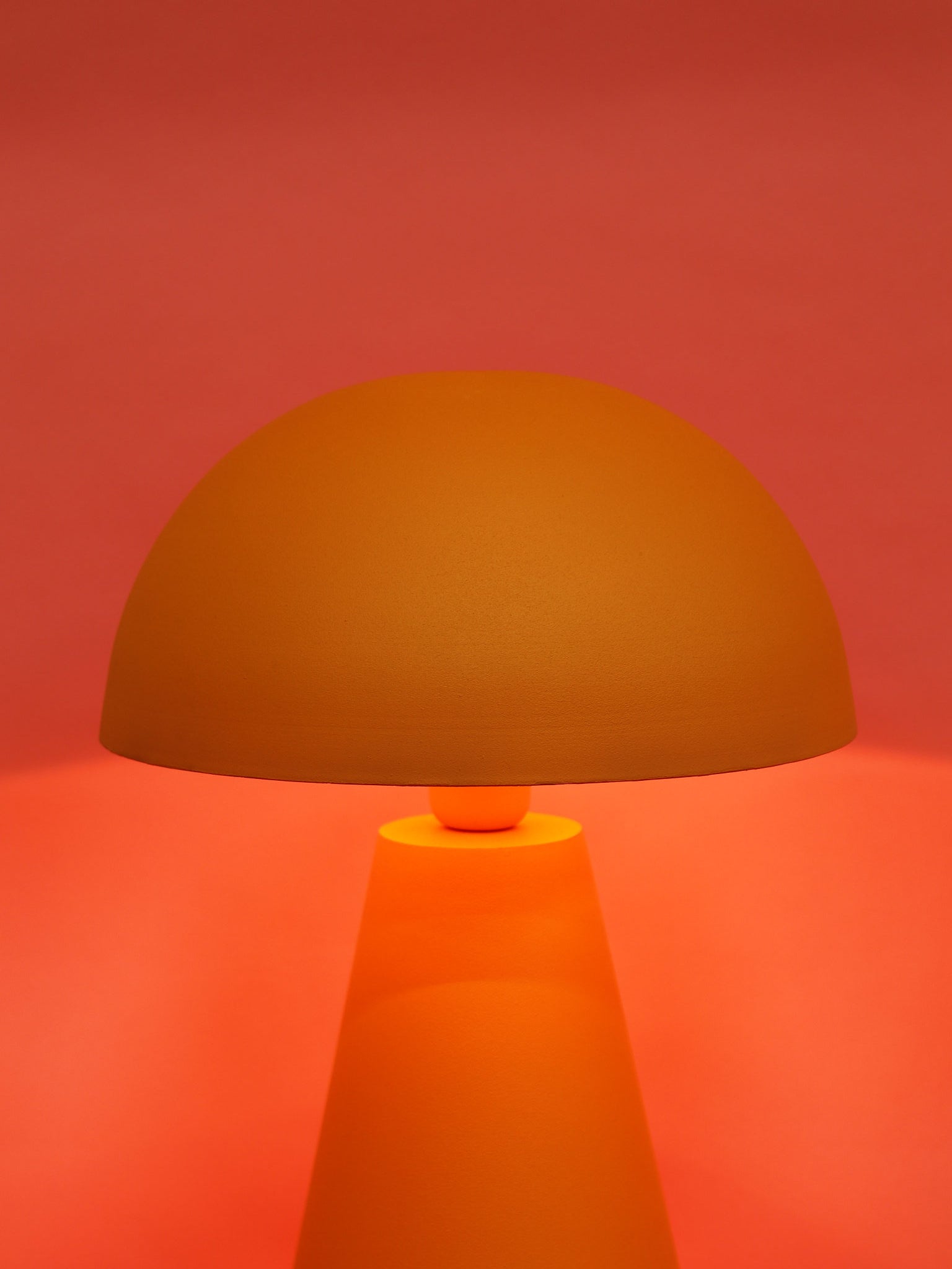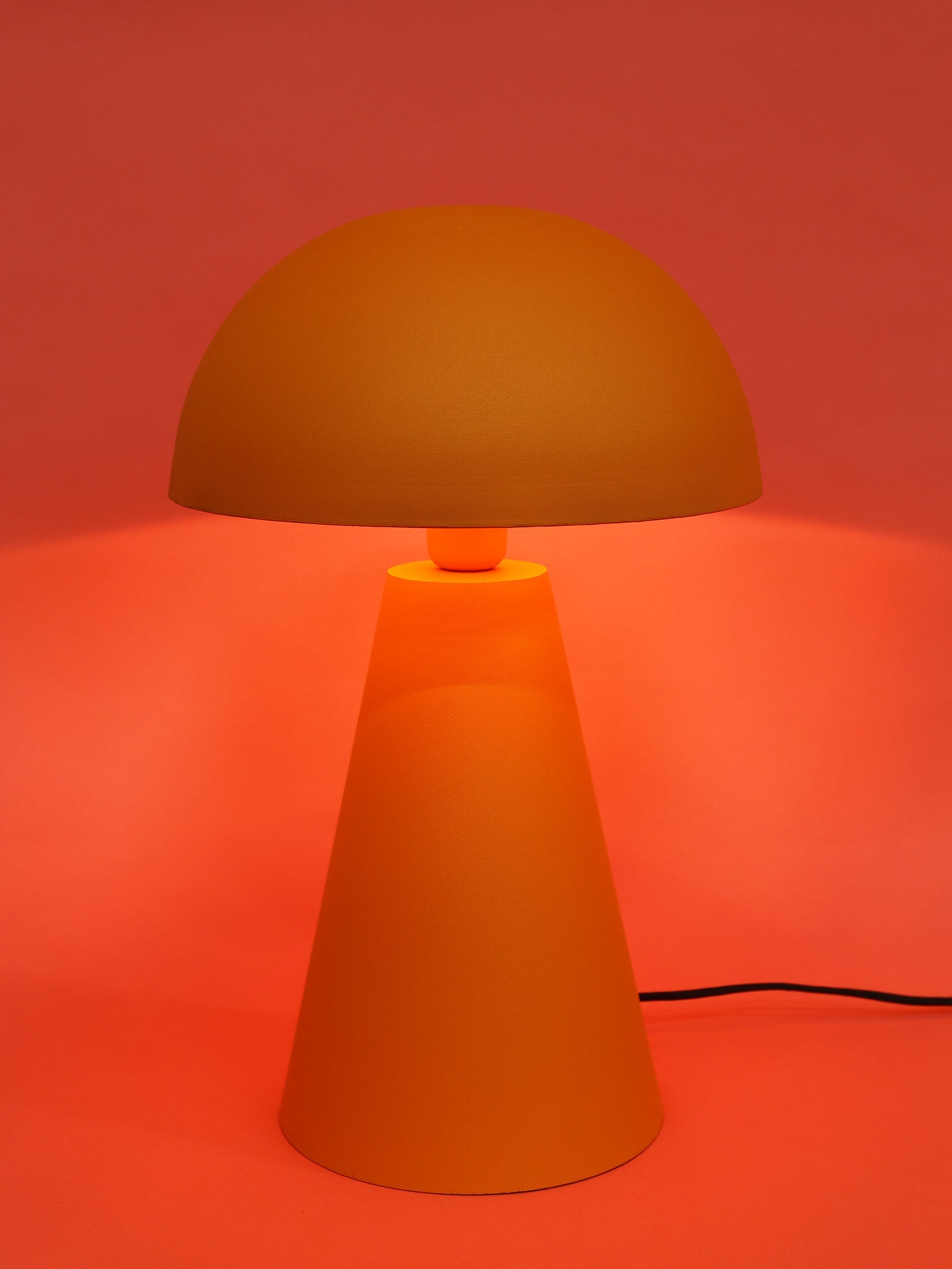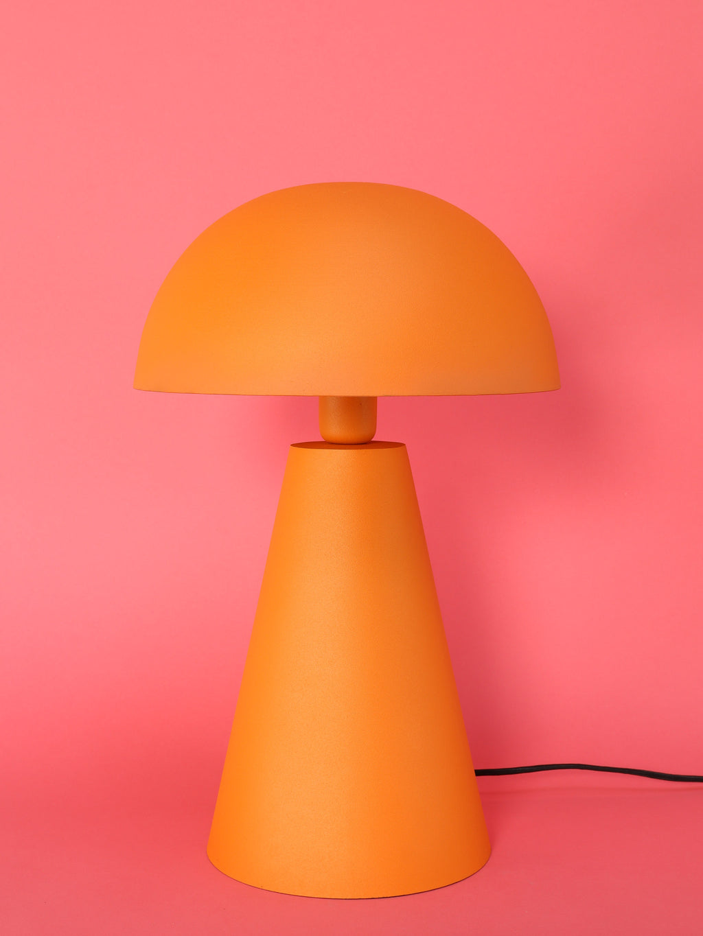 あたたかみのあるマットオレンジが、部屋全体に優しく柔らかな雰囲気を広げてくれるテーブルランプ。マッシュルームのような丸みを帯びたドームシェードと、すっと伸びる円錐形のベースが絶妙なバランスを生み、シンプルながらも存在感のあるデザインです。光は柔らかく拡散され、眩しすぎず心地よい明かりに。サイズ違いでMとLがあります。ご利用シーンに合わせてお選びください。