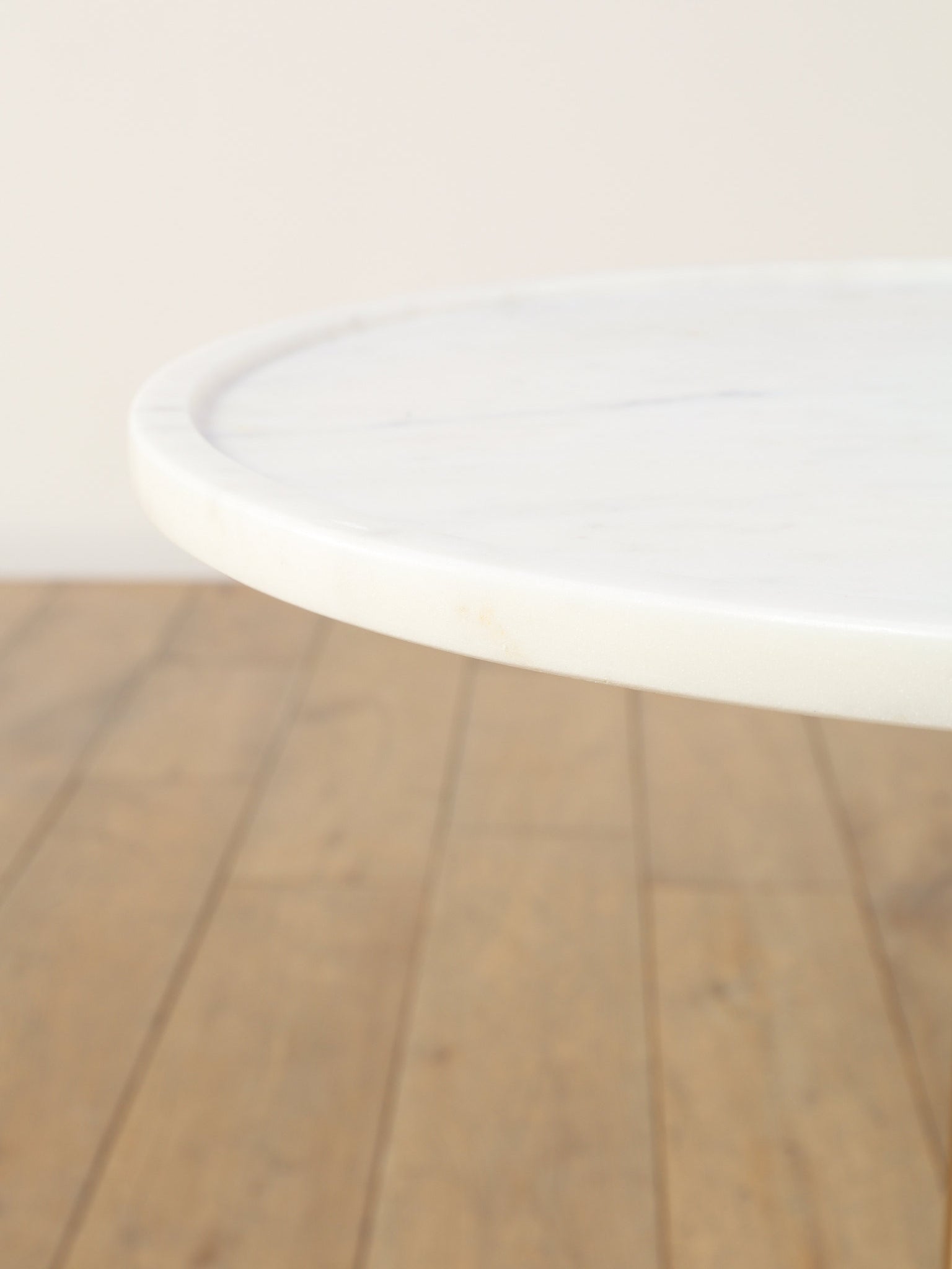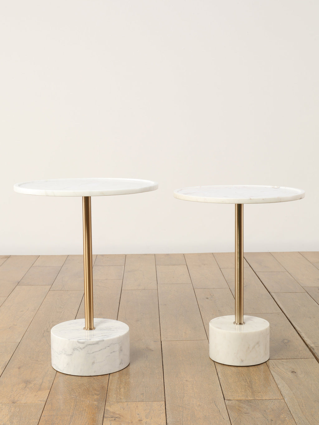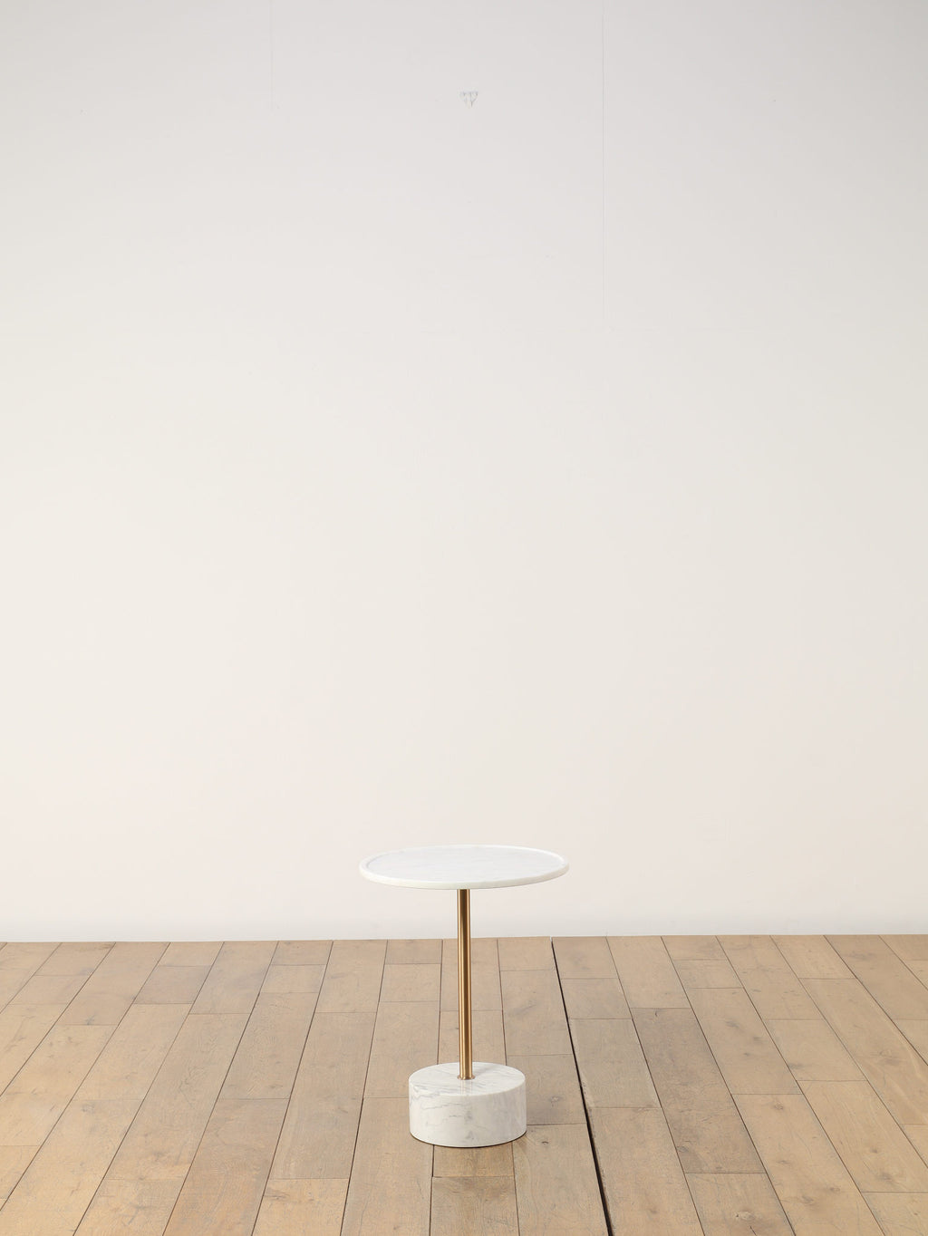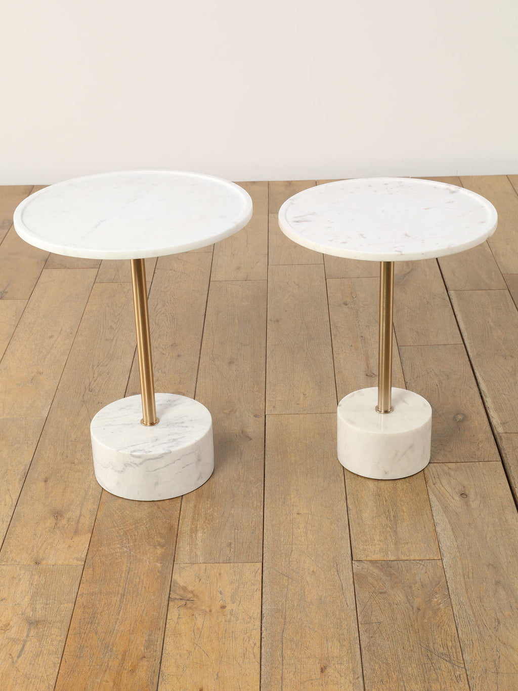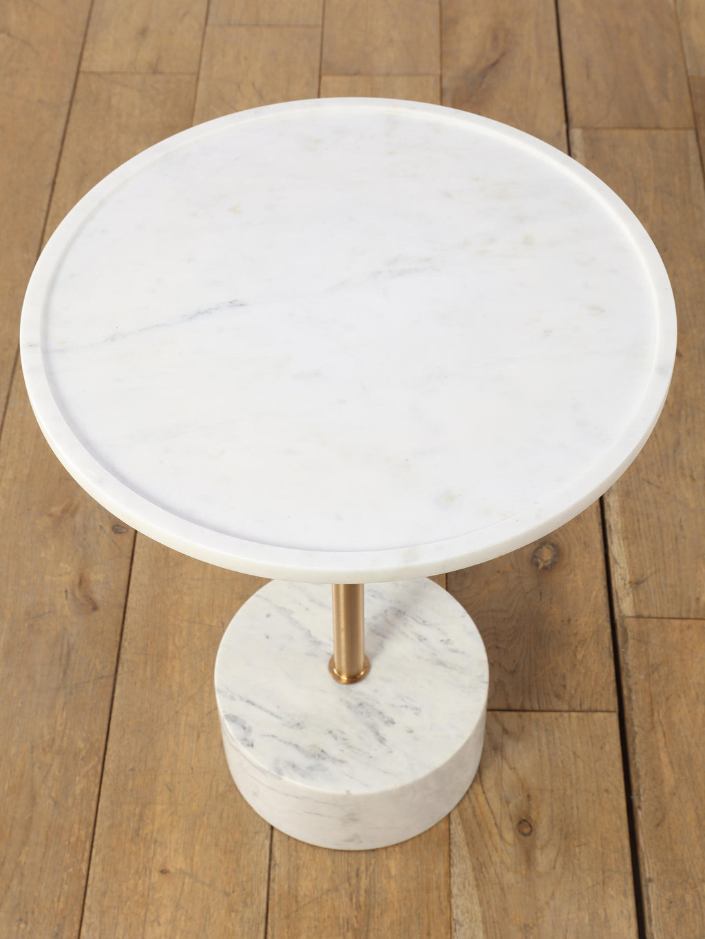 上品なホワイトマーブルとゴールドメタルの組み合わせが、洗練されたラグジュアリーを演出するサイドテーブル。天板は滑らかな円形で、天然の大理石ならではの繊細なヴェイン(模様)が一つひとつ異なる個性を放ち、ミニマルながらも存在感があり、空間に高級感をプラスします。ソファサイドやベッドサイドのナイトテーブルとしても活躍。モダン、コンテンポラリー、北欧スタイル、またはクラシックなインテリアにも自然に溶け込み、一瞬で格上げしてくれるアイテムです。サイズ違いでMとLがあります。