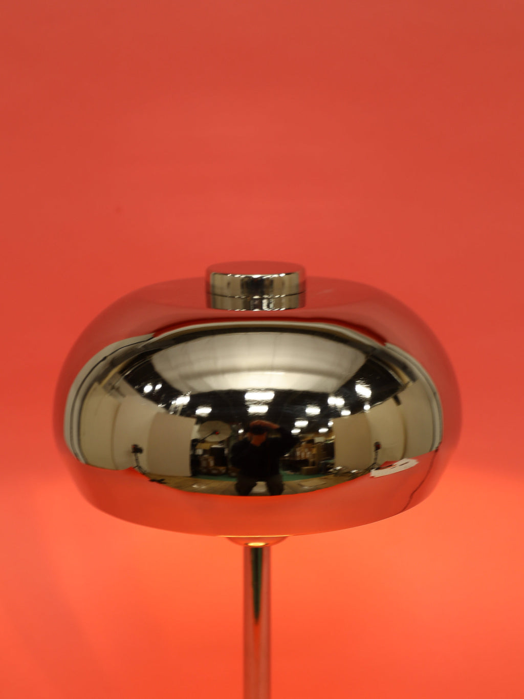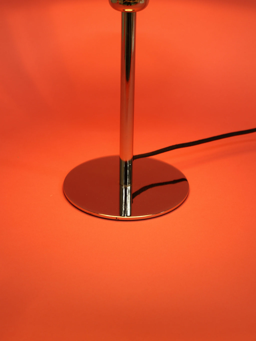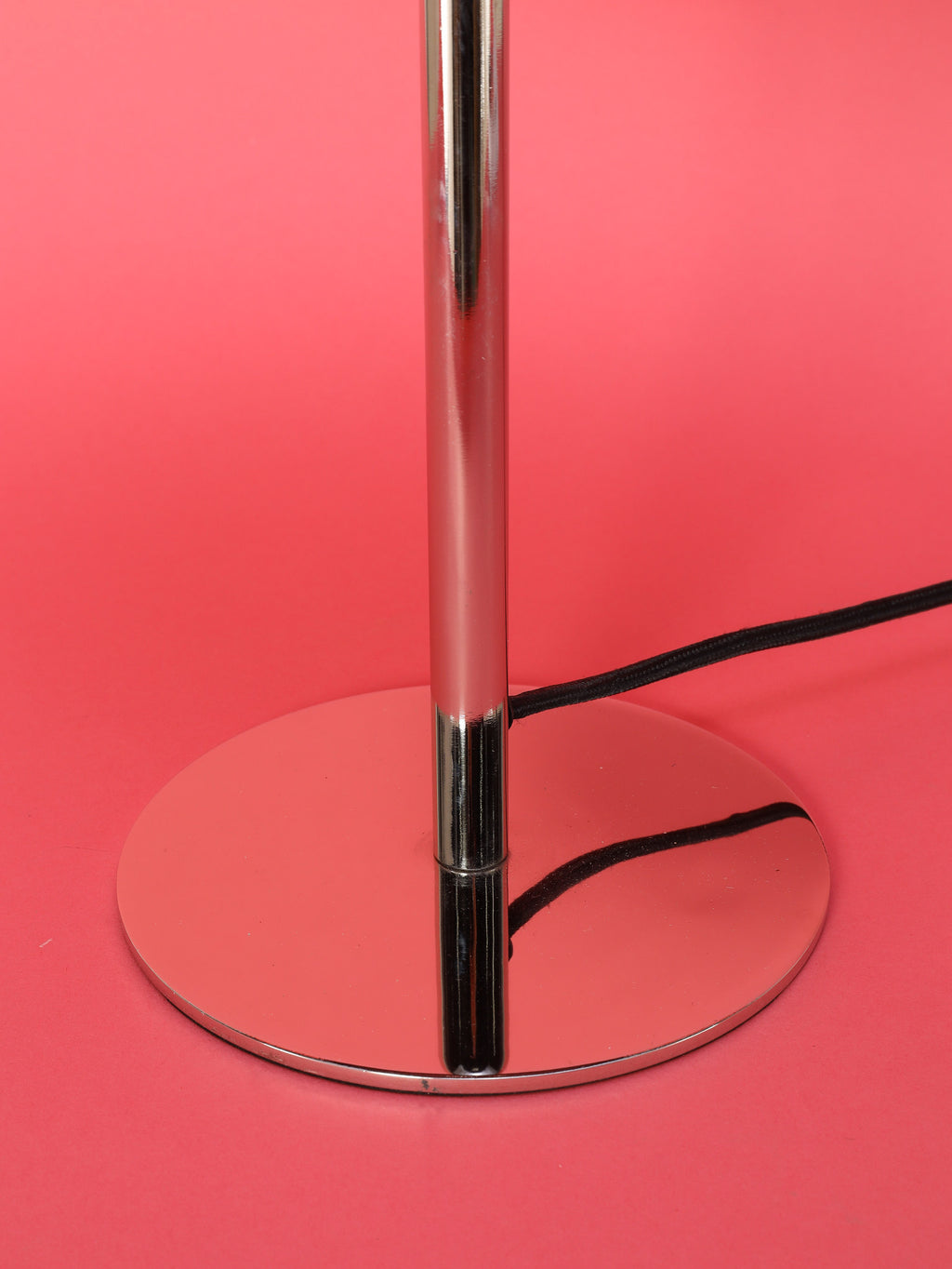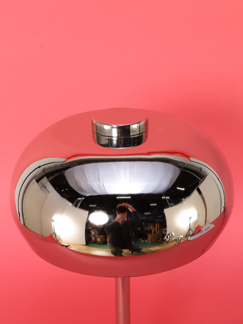 シャイニーなメタリックな質感が、洗練されたモダンな空間に格上げしてくれるテーブルランプ。ぽってりとした半球型のドームシェードは、光を柔らかく反射しながらも鏡面のようなクリアな輝きを放ち、ミニマルなデザインながらも上品で洗練された存在感を演出します。鏡面仕上げの表面は周囲の光やインテリアを美しく映し込み、置く場所によって表情が変わるのも魅力の一つ。柔らかな光が広がるので、ベッドサイドのナイトライトとして、またはリビングのサイドテーブルにアクセント照明として最適です。日常のシーンをワンランク上の洗練された雰囲気に変えてくれます。タイムレスなデザインで、長く愛用できる一灯です。