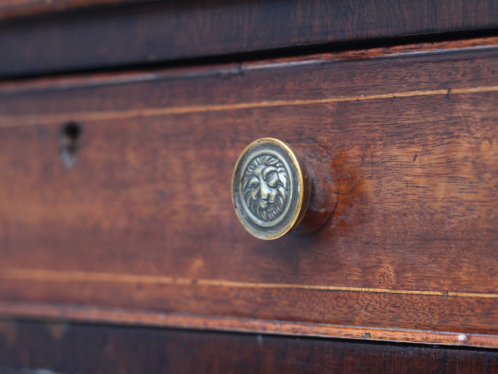 天板や引き出し前面に細く入ったインレイ(象嵌)のラインがポイントとなっています。