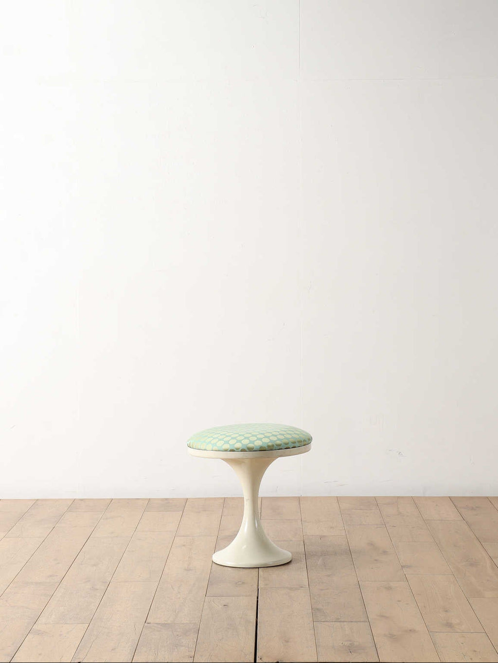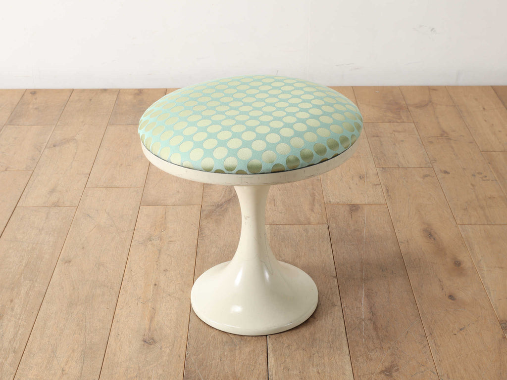1960年代(推定)イタリアヴィンテージのスツールです。工業の発展によって多様化する家具の素材の中で、プラスチックは自由度の高いディテールの再現を現実のものにしました。無機質な素材ながら、ヴィンテージ特有の経年変化は、質感に深みをもたらし、よりキャラクター性を感じる事ができます。この時代を反映したレトロモダンなディテールは、現代の空間のコーディネートにおいても素晴らしい存在感を発揮してくれる事でしょう。【ファブリック】