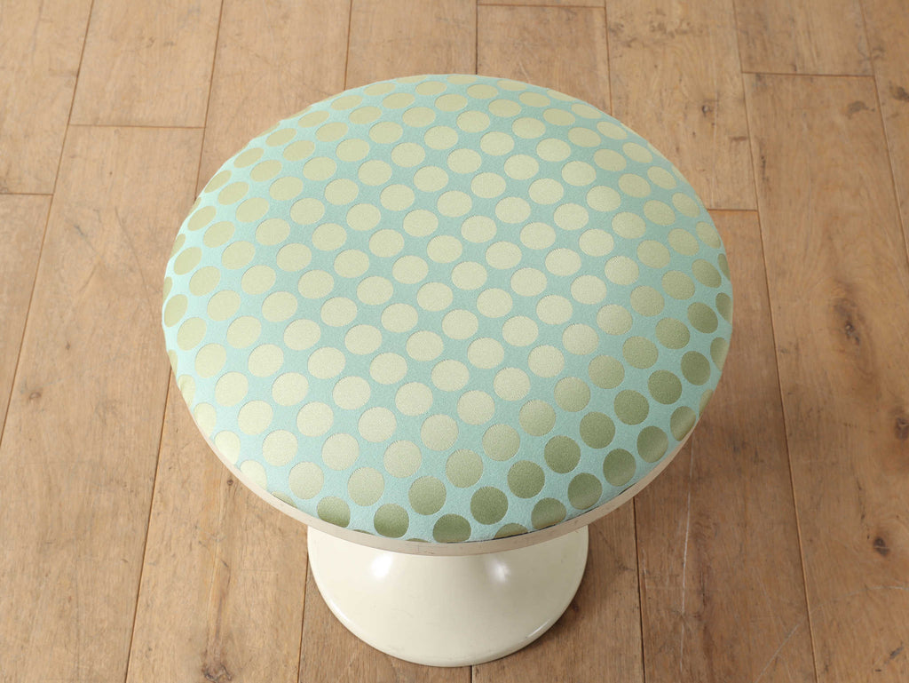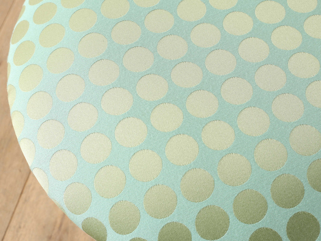 イタリア製ポルカドット柄の生地で張り替えています。生地と中材は国内で張替えています。