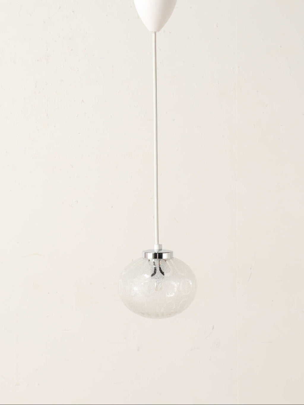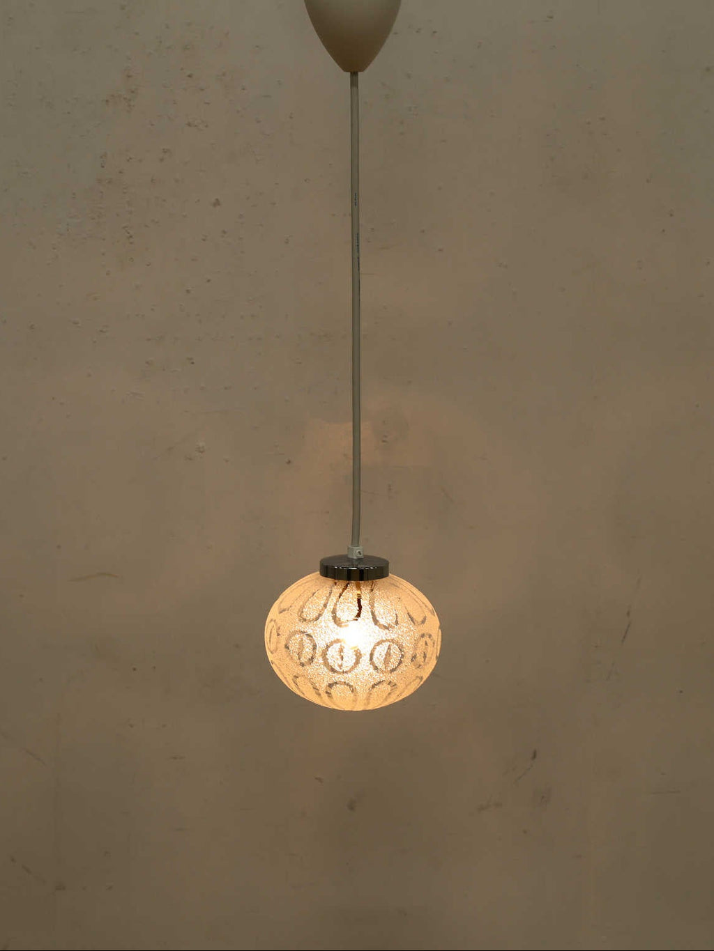 1960年代(推定)のドイツ製のシーリングランプ。とても繊細で美しい磨りガラスが魅力的です。温かみのある厚いガラスから構成されるデザインは、消灯している際もオブジェとして空間を彩ってくれます。どんなインテリアにも溶け込みやすいデザインのため、お好みのシーンでお部屋を彩る灯りとして取り入れてみてはいかがでしょうか。
