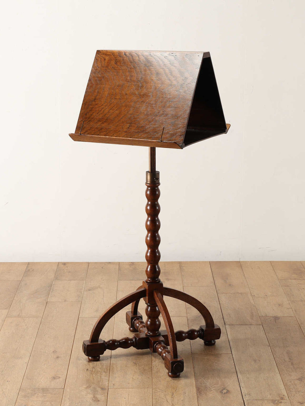 1940年代(推定)の英国でつくられたレクターン。レクターンとは書見台や教卓などで用いられた家具のこと。当時の牧師や教授がこの台の上に聖書をおいてご説教をされたそうです。使用されているのはオーク材で、温かくも凛々しい杢目と全体のシンプルなフォルム感が魅力的。ワンポイントで場所を選ばず、お好きな空間で、高級感を演出できる逸品です。ミュージックスタンドやメニュースタンドとしてのご使用もおすすめで、様々な場所で活躍できる逸品です。