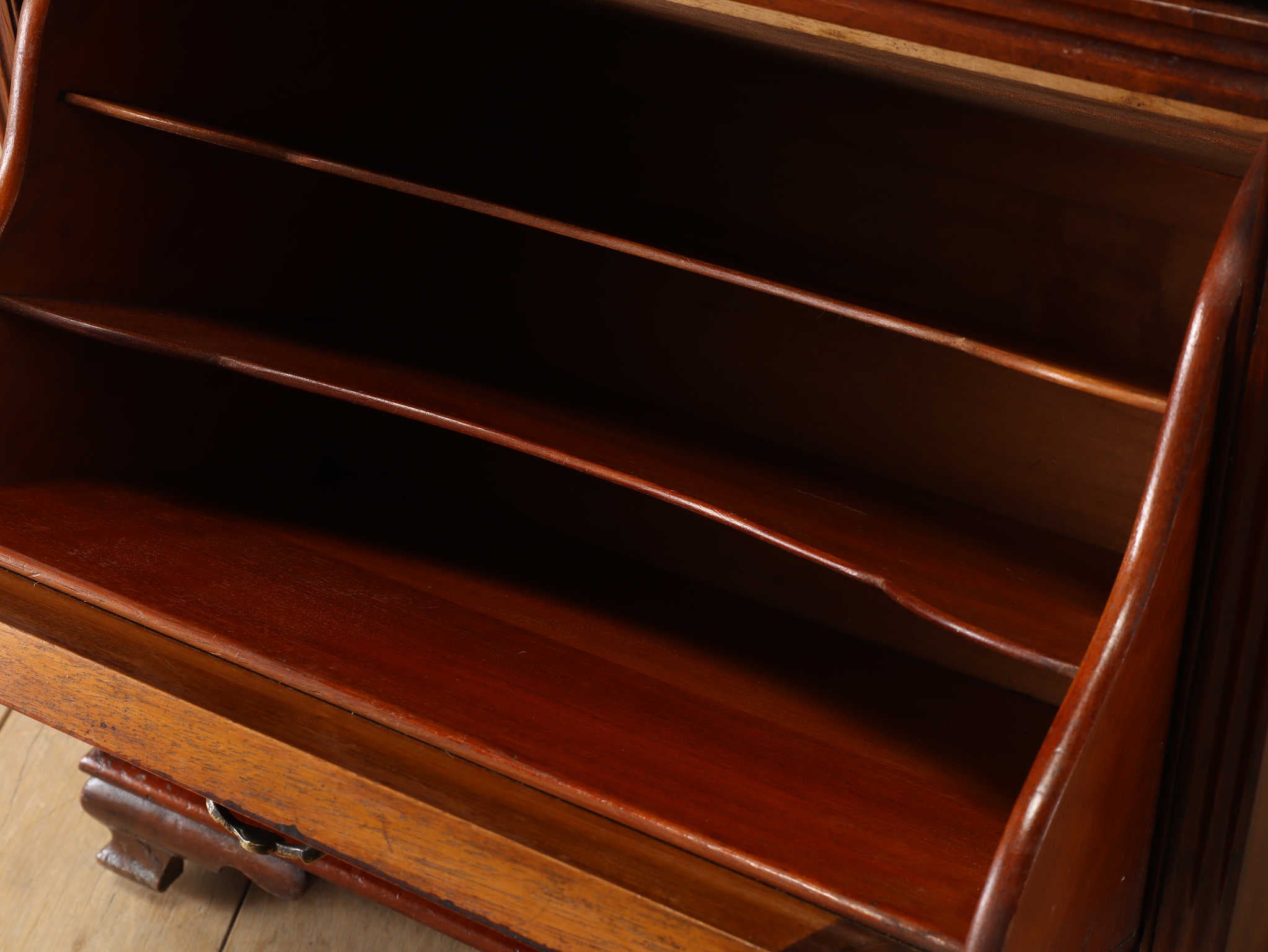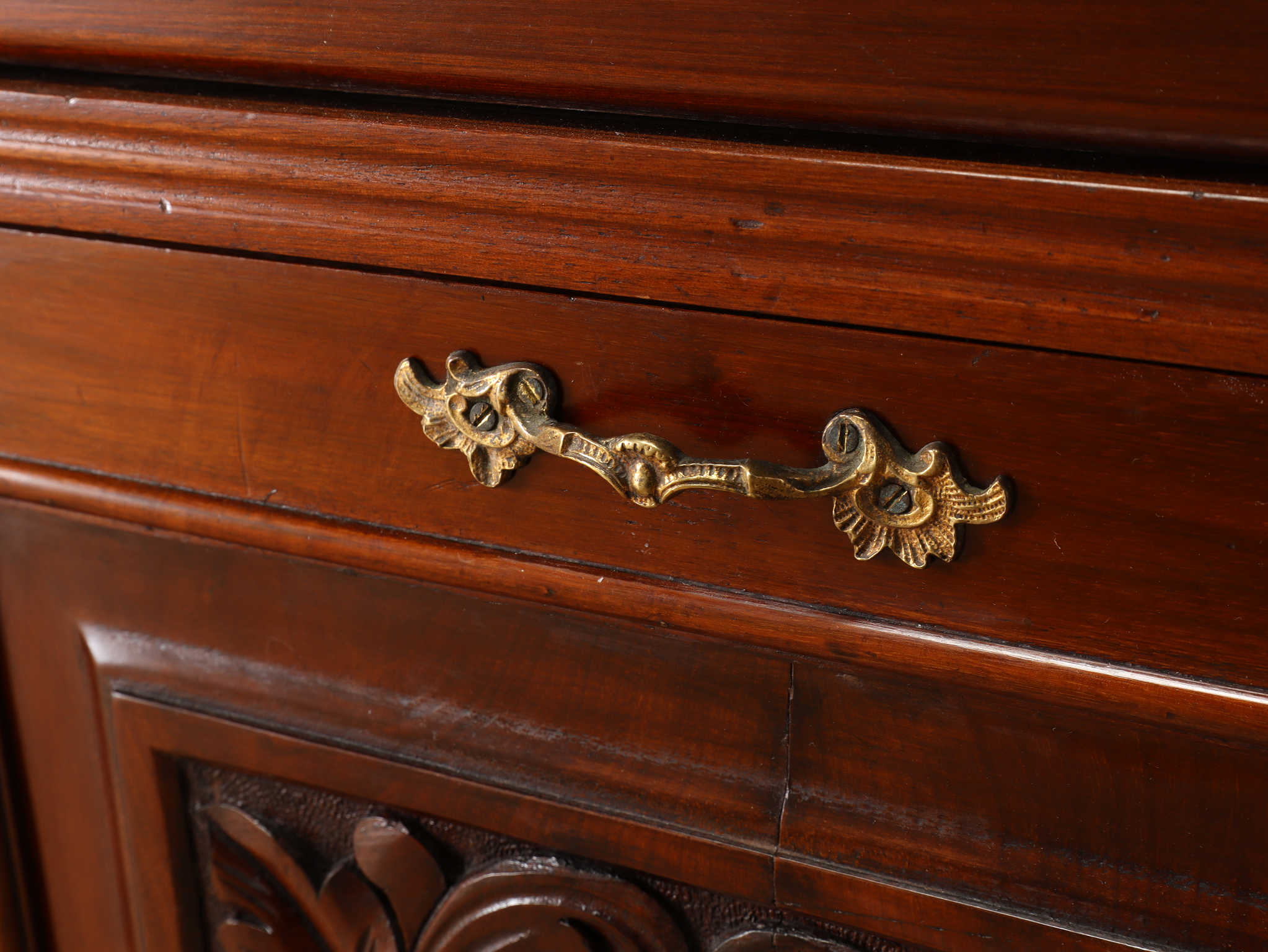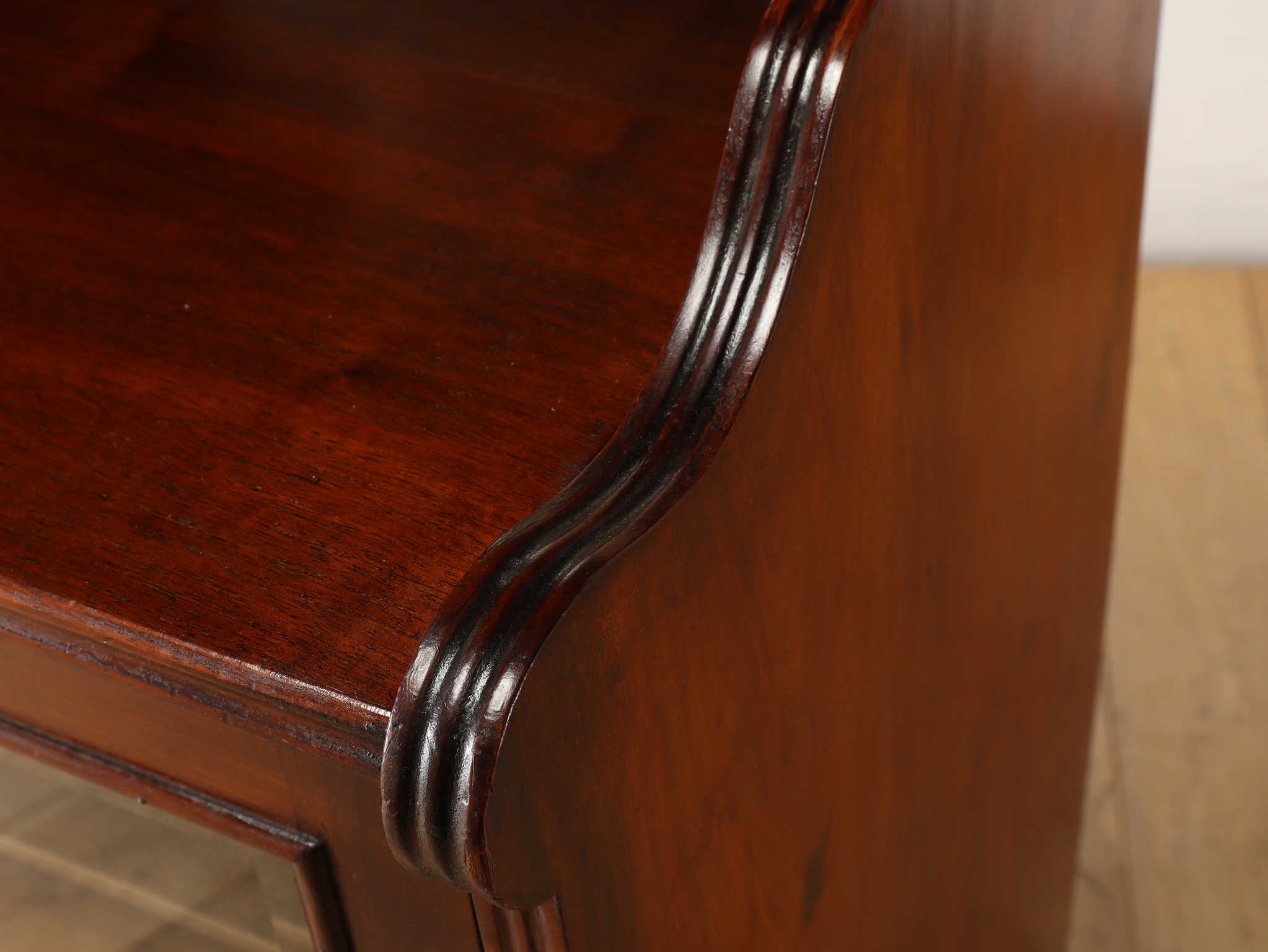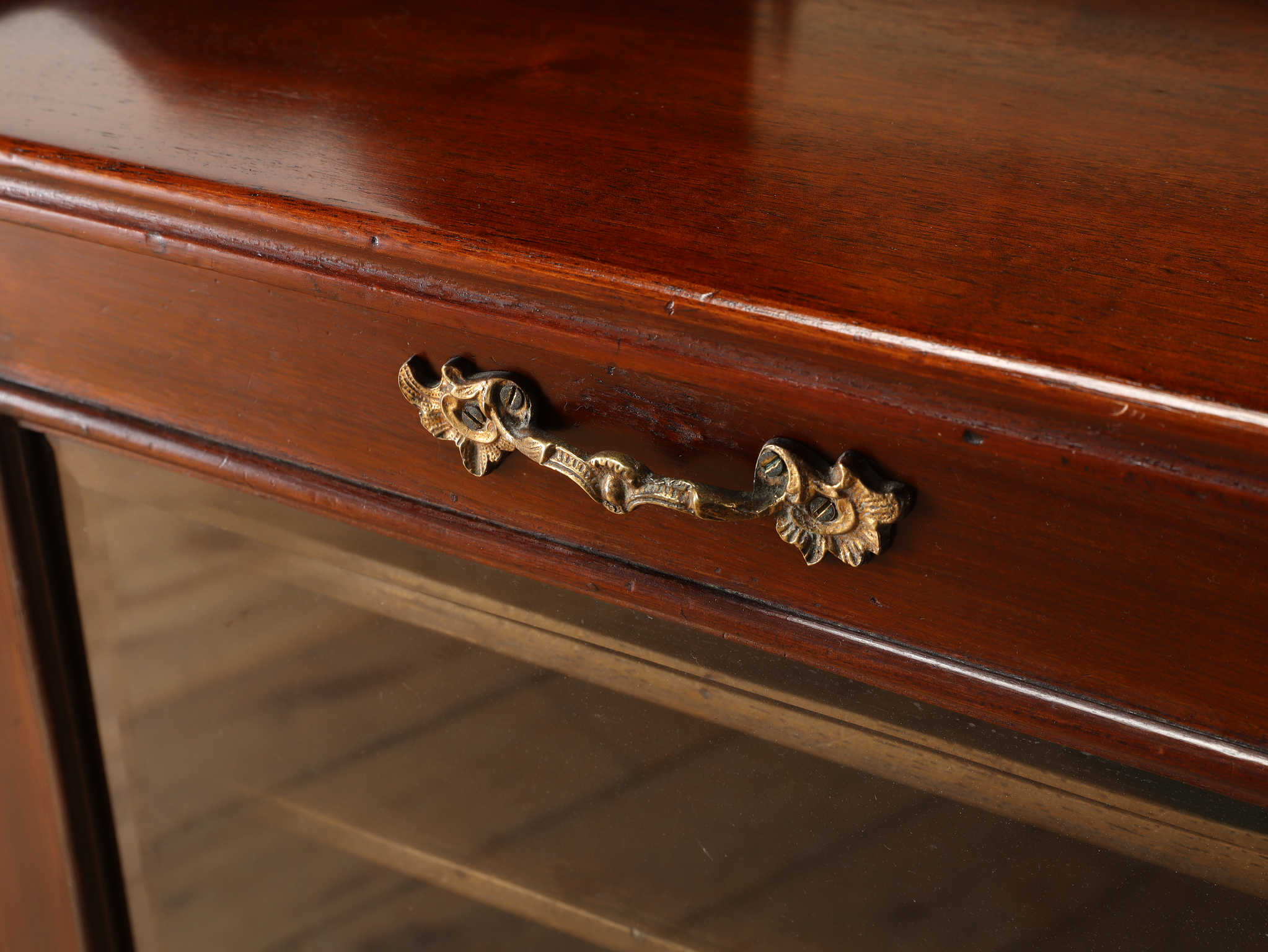 元来、レコード盤や楽譜などを収納する為に設計されたミュージックキャビネットと呼ばれる収納家具。アンティークにおいて、度々入荷のあるカテゴリーですが、デザインや材質など、様々なバリエーションがあり、一点物との出会いをより楽しめるとも言えます。その収納目的から、比較的小振りなものが多く、現代においてはディスプレイキャビネットやカップボードとして等、その用途は多岐に渡ります。こちらは上部にミラーが施されており、前に花やコレクションを並べていただくと奥行きがでて素敵な空間となるでしょう。