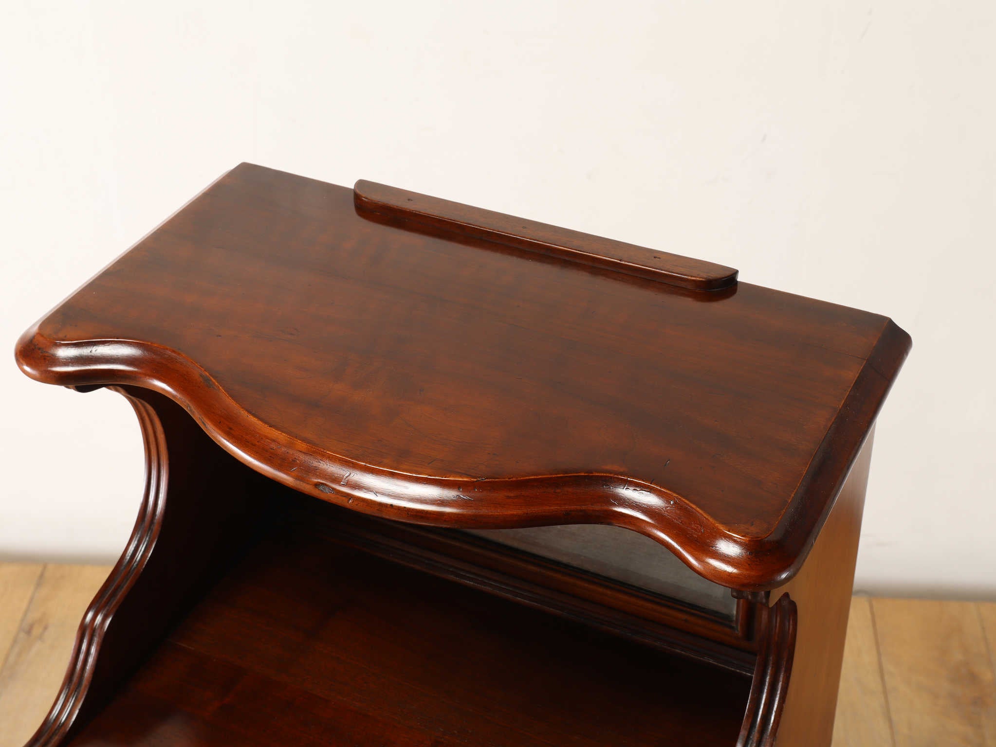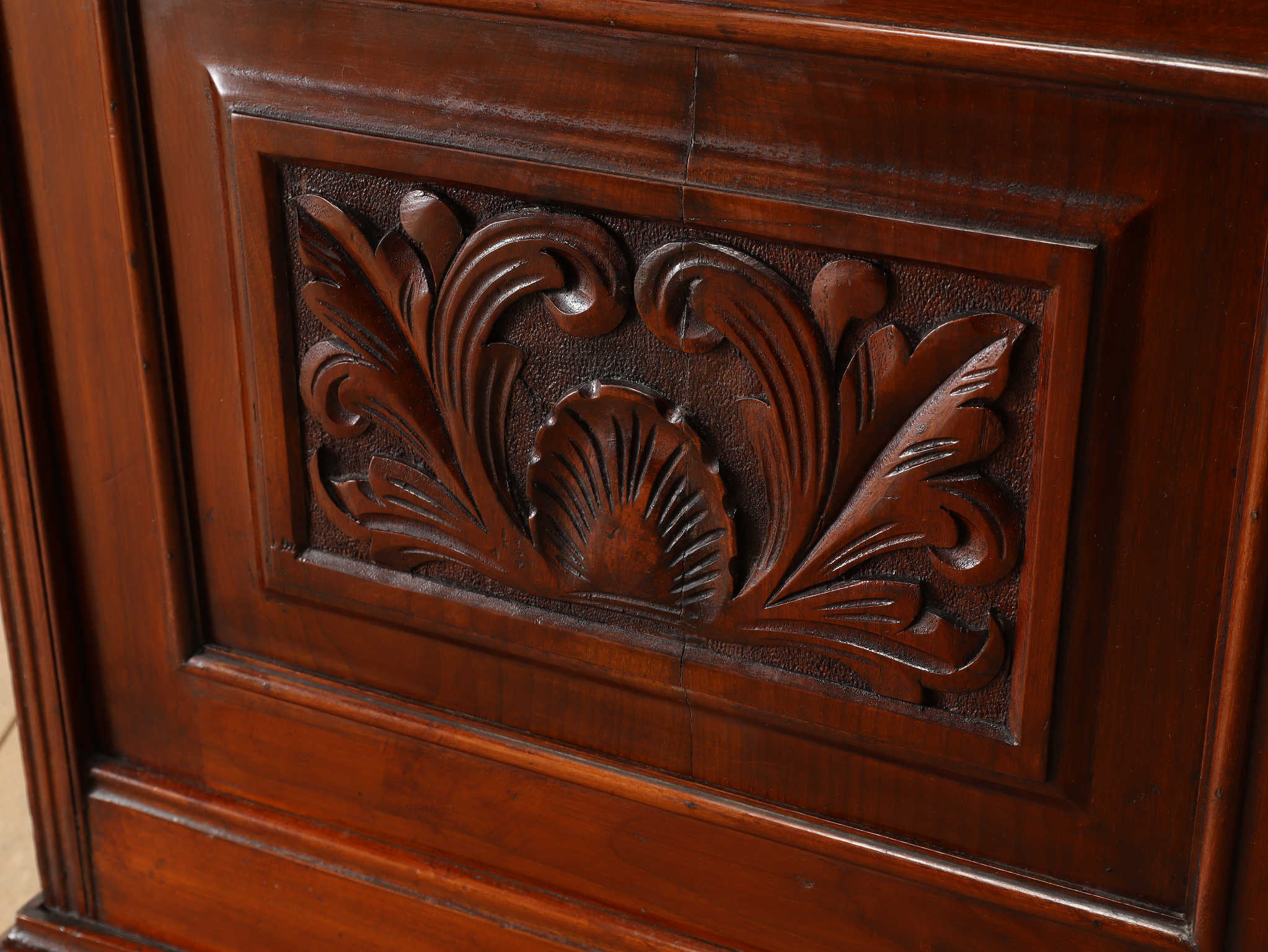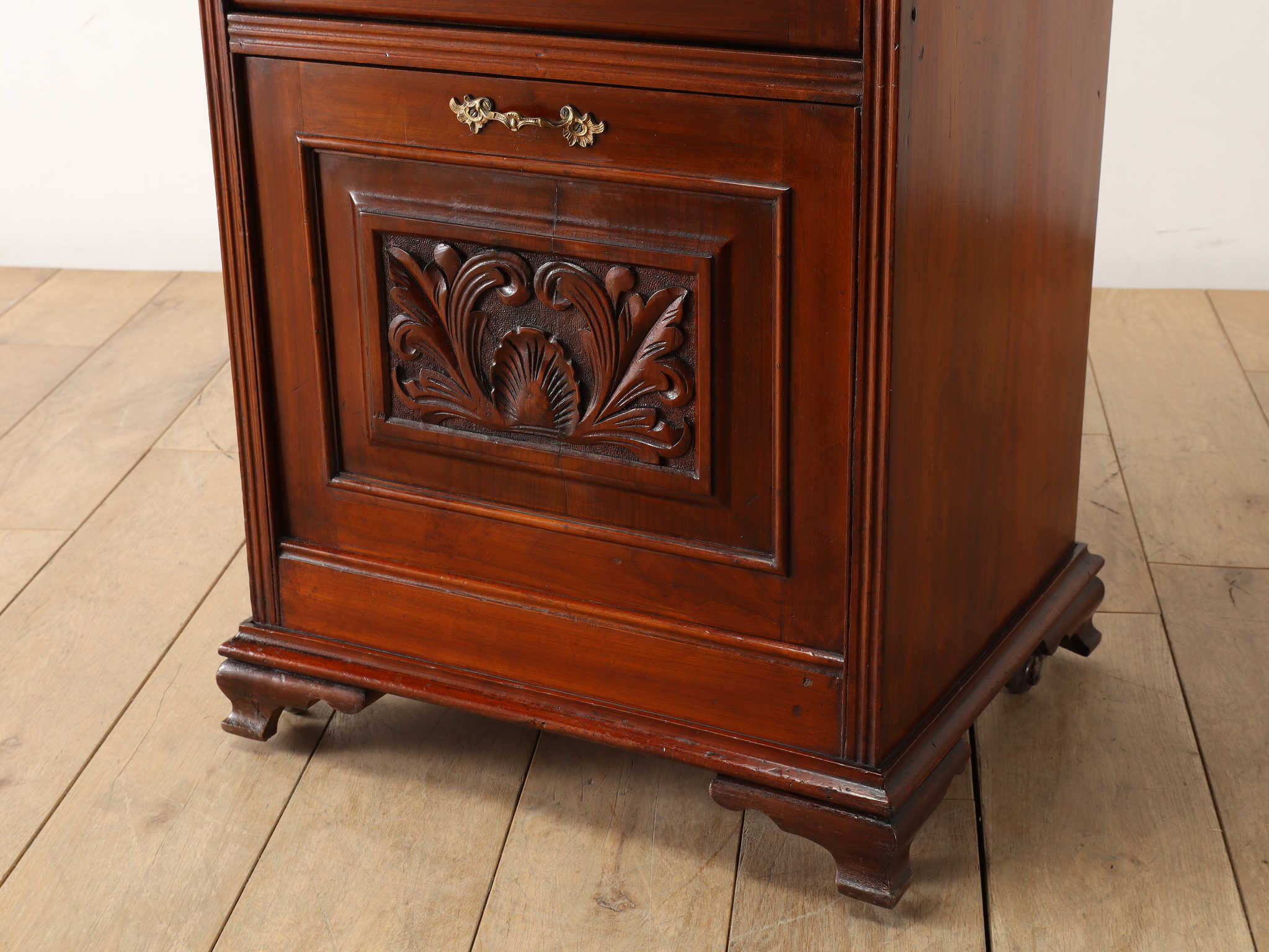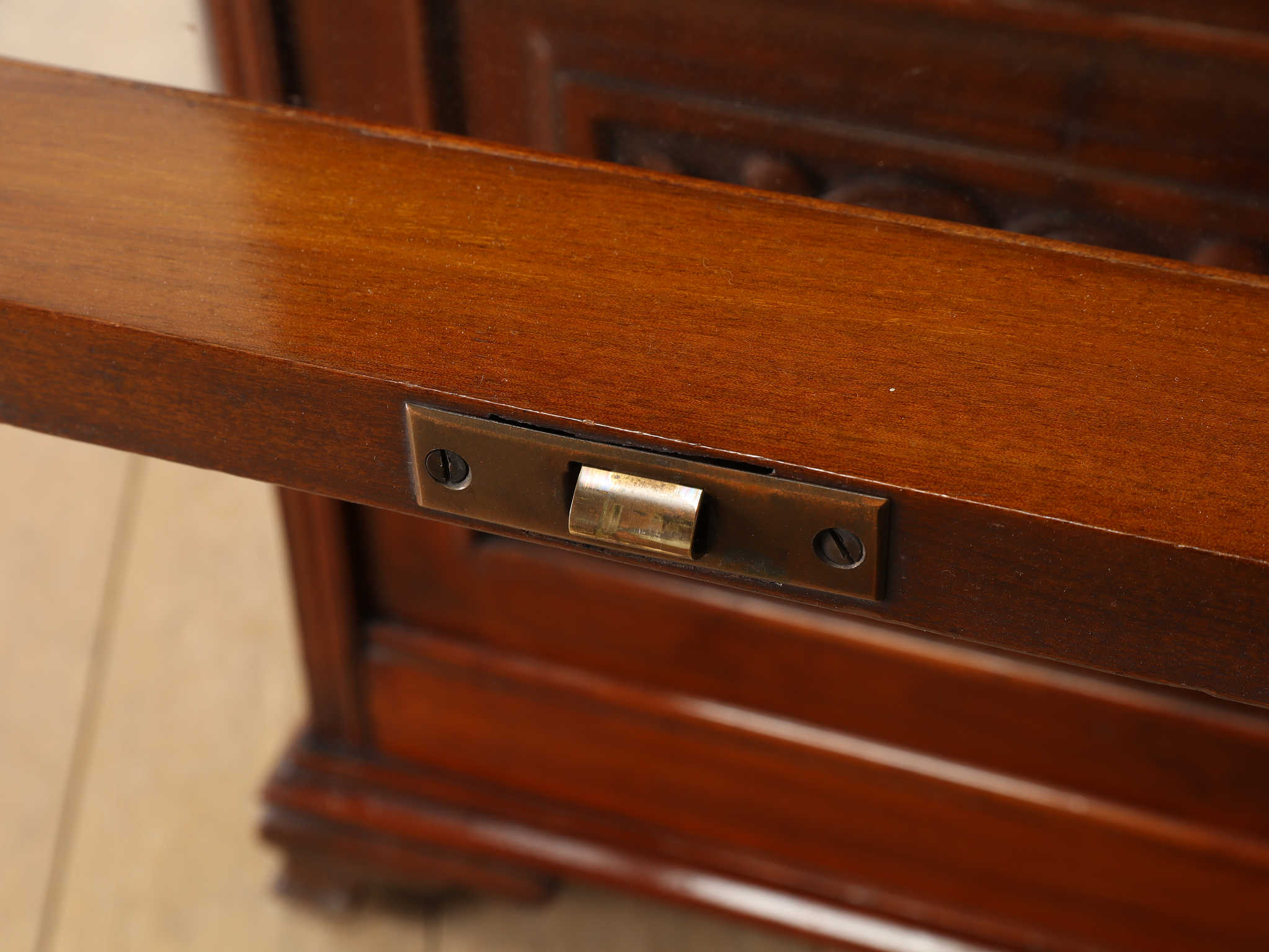 元来、レコード盤や楽譜などを収納する為に設計されたミュージックキャビネットと呼ばれる収納家具。アンティークにおいて、度々入荷のあるカテゴリーですが、デザインや材質など、様々なバリエーションがあり、一点物との出会いをより楽しめるとも言えます。その収納目的から、比較的小振りなものが多く、現代においてはディスプレイキャビネットやカップボードとして等、その用途は多岐に渡ります。こちらは上部にミラーが施されており、前に花やコレクションを並べていただくと奥行きがでて素敵な空間となるでしょう。