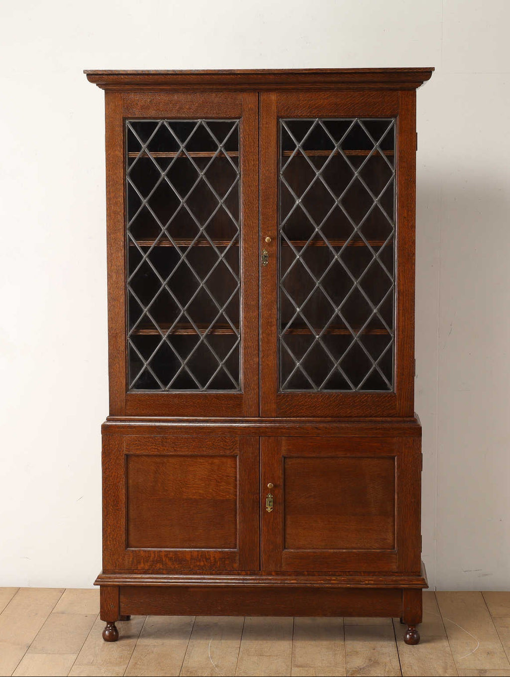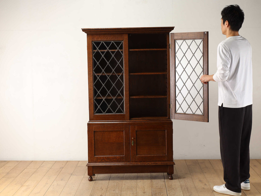 オーク材の深みある色味が素敵なブックケース。濃淡のあるオーク材はご自宅の空間にも馴染みやすくとてもおすすめです。こちらのブックケースは収納とディスプレイ、2つの機能を兼ね備えているため、書籍はもちろん、カップ&ソーサーなど食器や置物などディスプレイも楽しめる仕様です。下部は見えない収納になっているため、使い方の幅も広がります。様々なシーンで活躍してくれるアイテムです。
