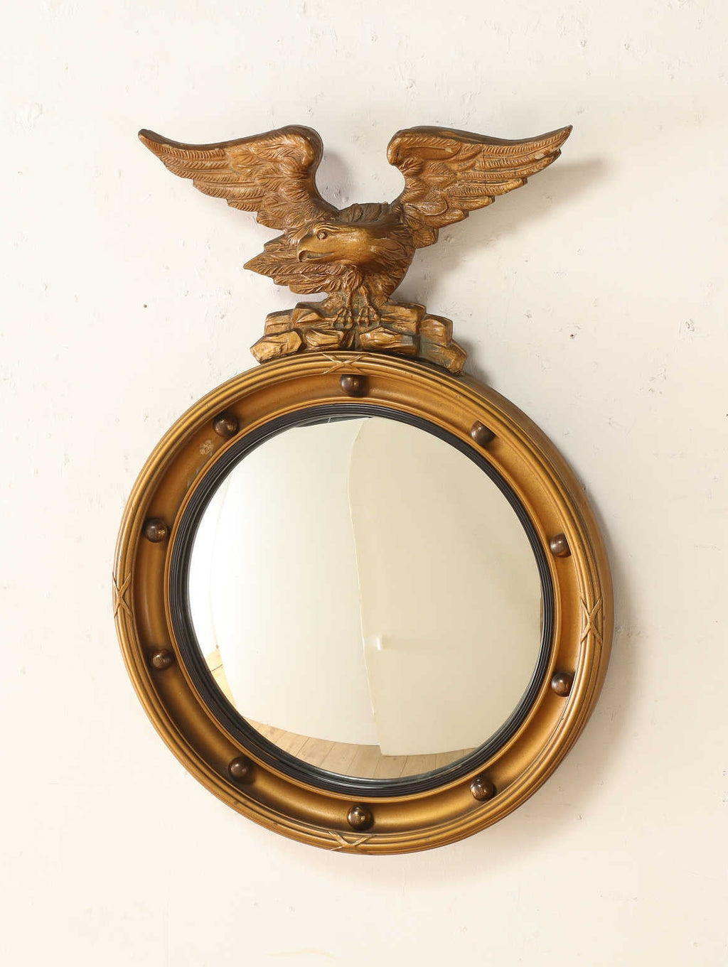 鳥のモチーフがついた力強さを感じるコンベックミラー。コンベックスはミラーが凸面の魚眼のような形であることから、写す景色を広角に切り取り、通常のミラーとは異なった景色を見せてくれるためインテリアアクセサリーとして人気のアイテムです。1点でお部屋のアクセントに、また様々なミラーやデコレーションとともにMixしてコーディネートをお楽しみいただけます。