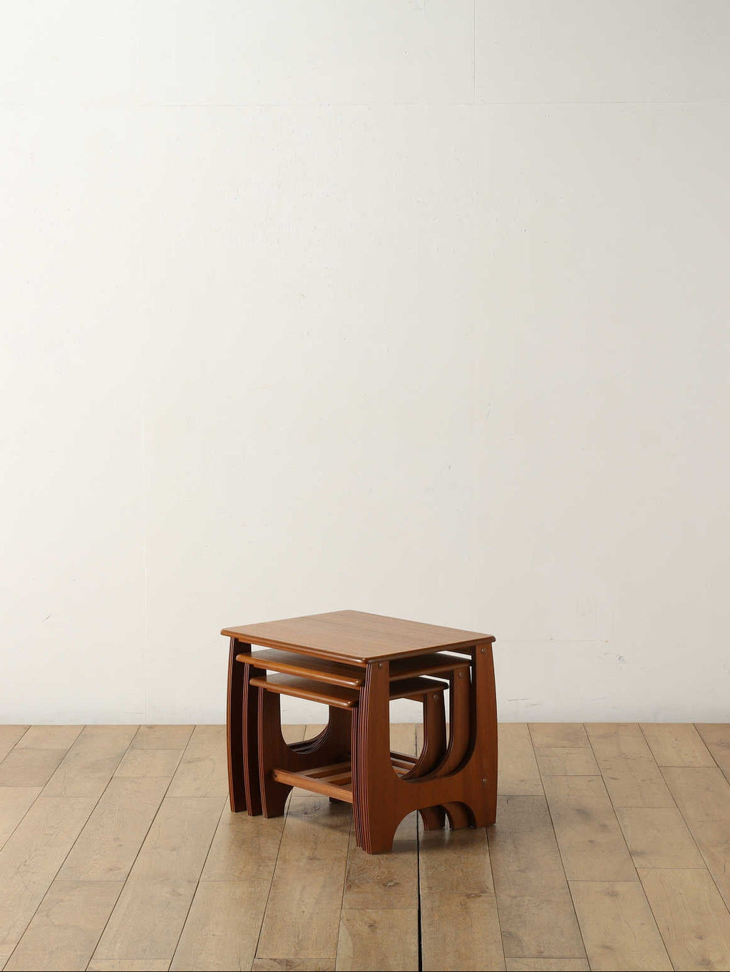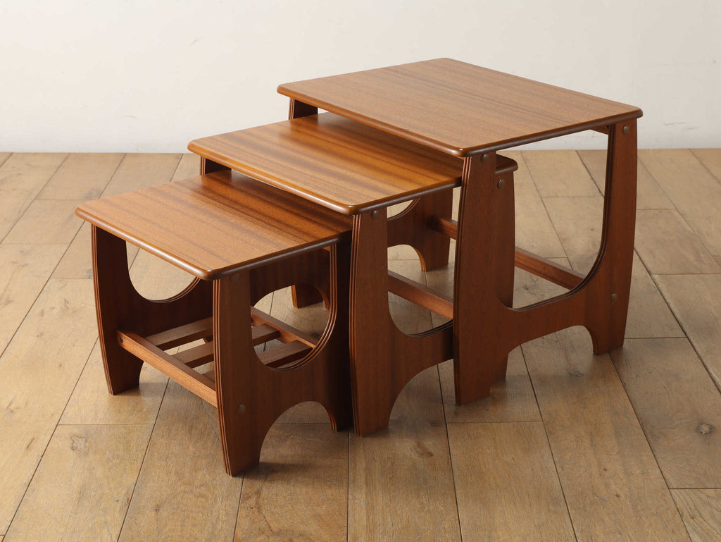 三大銘木であるチーク材は、他にない温かみが感じられる非常に価値のある材質です。優しい風合いが漂うだけではなく、すっきりとした無駄の無い造りからは柔らかな北欧らしさも感じられます。入れ子式で3台にサイズの異なるテーブルの造りであるため、花器やオブジェを飾るサイドテーブルとしてなど、様々なお使い方が出来る便利なアイテムです。
