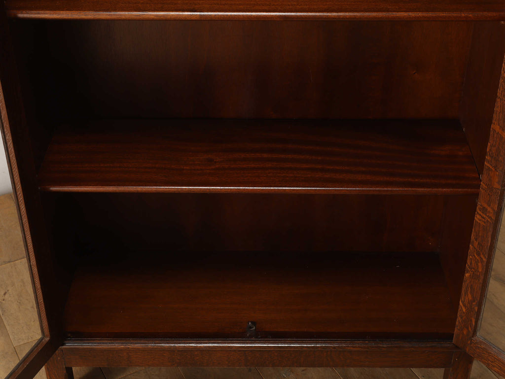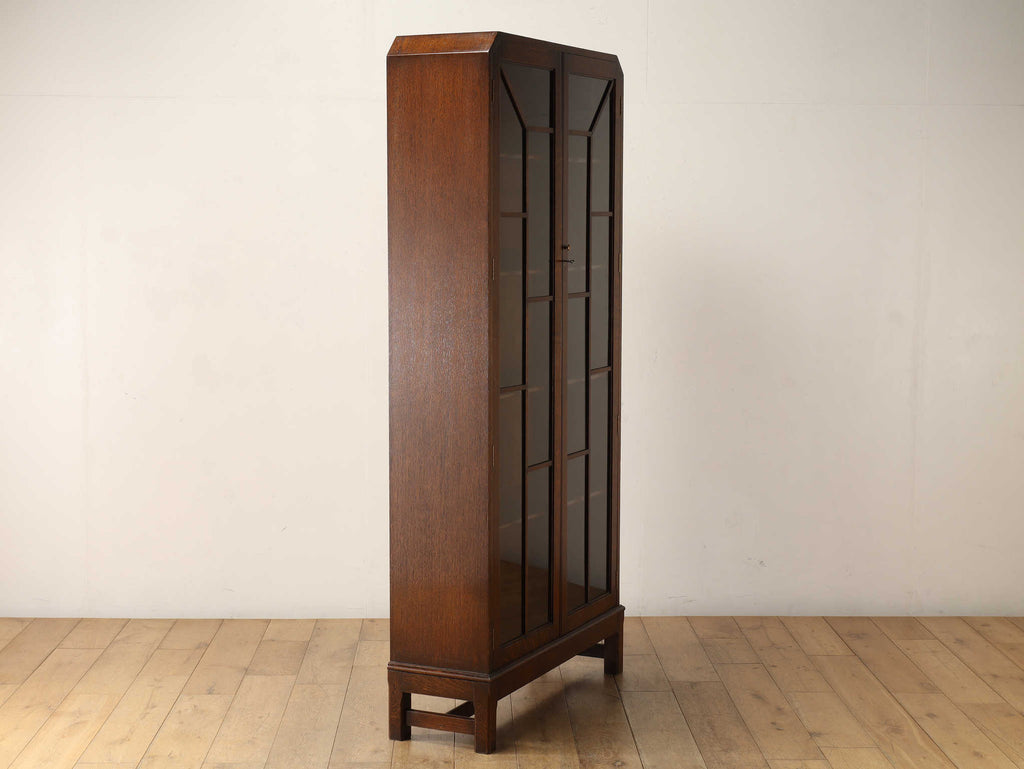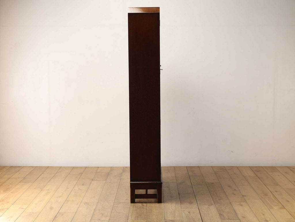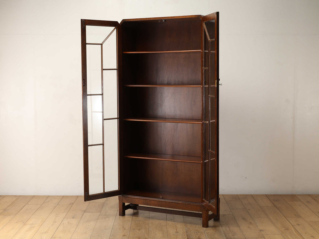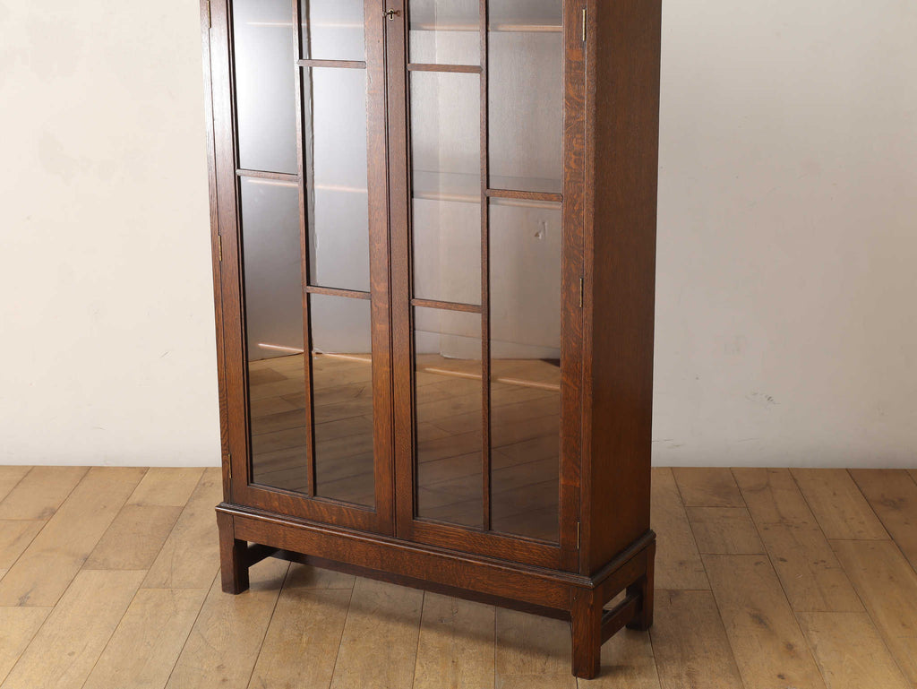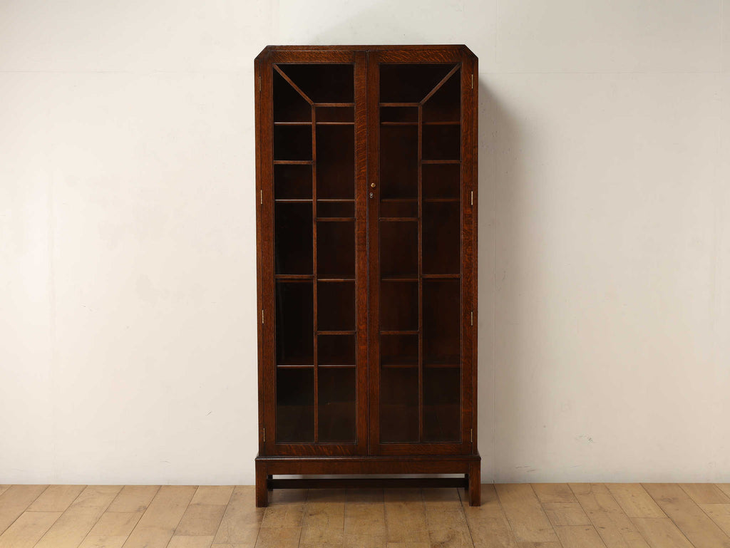 イギリスでは15世紀に活版印刷が発明され書籍が流通されていきますが、書物は貴重なもので一般の人々が手にすることはほとんどありませんでした。17世紀に入り書籍が一般にも流通し始めるようになり、小振りな書棚や扉付きの本棚が作られるようになって以後様々な仕様のブックケースが登場していきました。こちらのブックケースは格子が横一直線にならないように交互に配置されており、製作者のデザインへの拘りが感じられます。書籍だけではなく、食器棚としてもお勧めです。