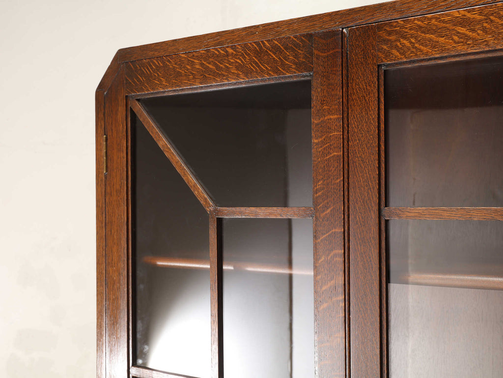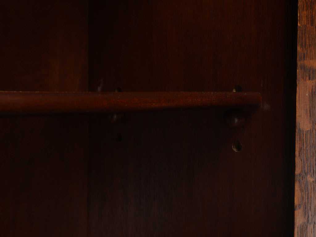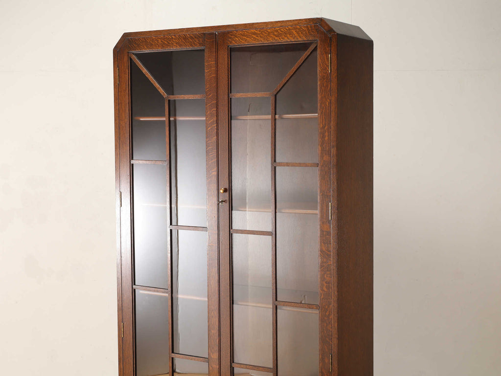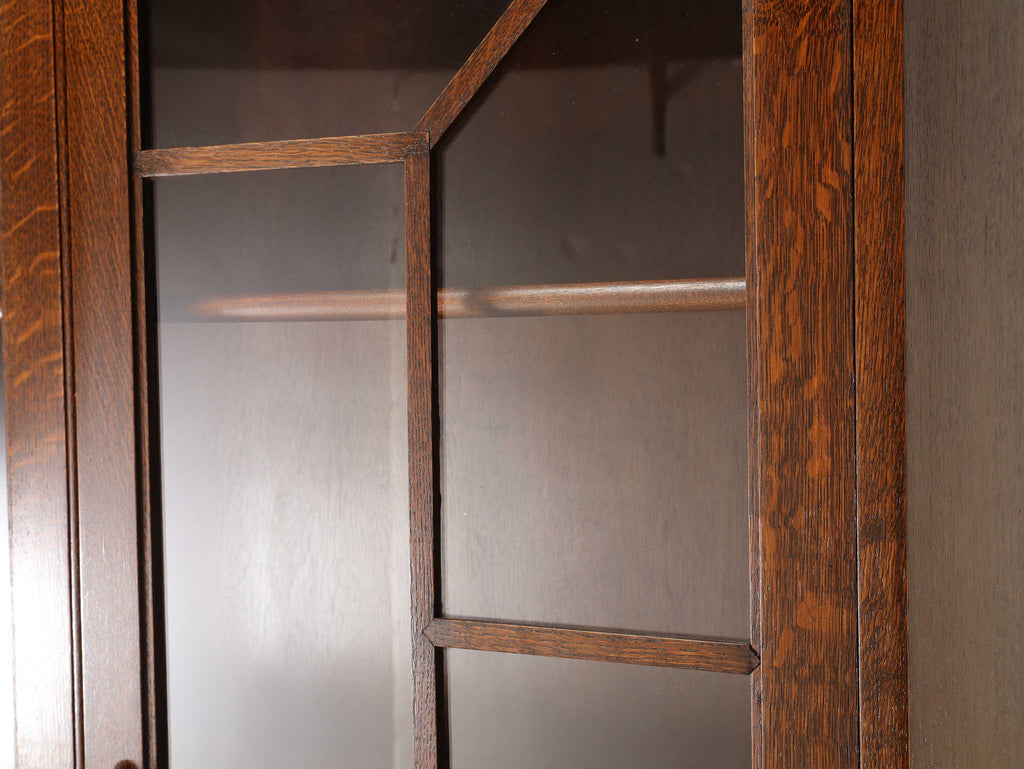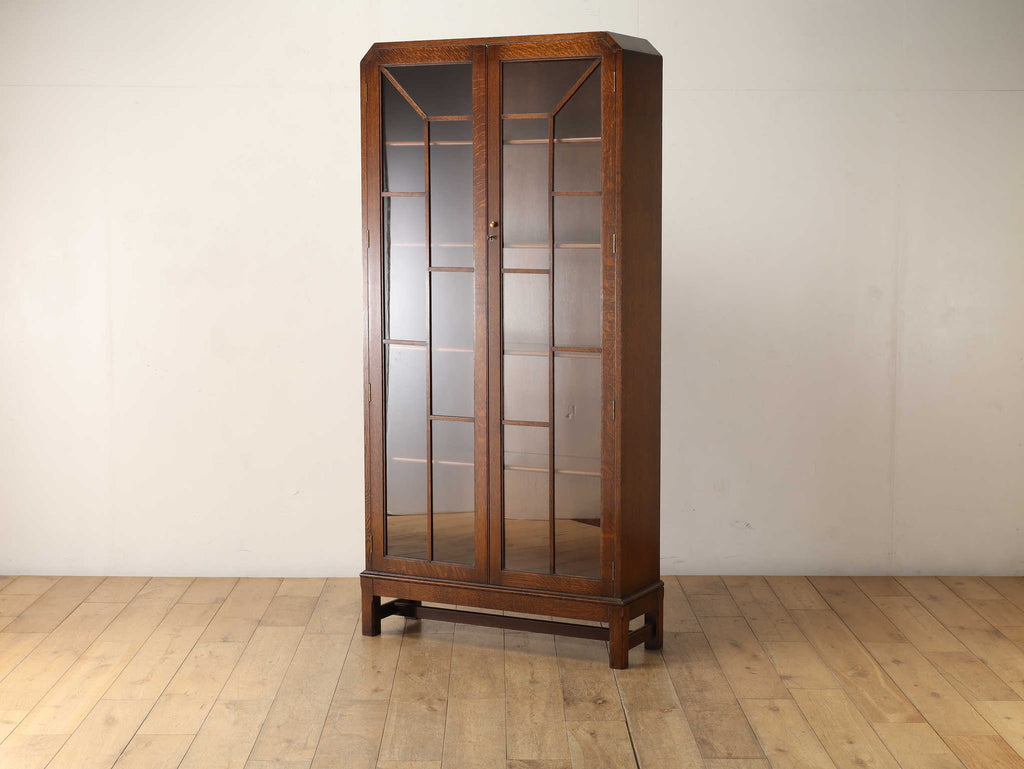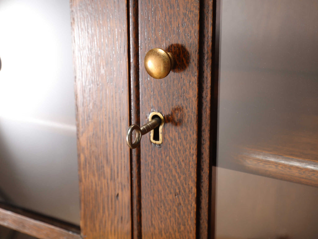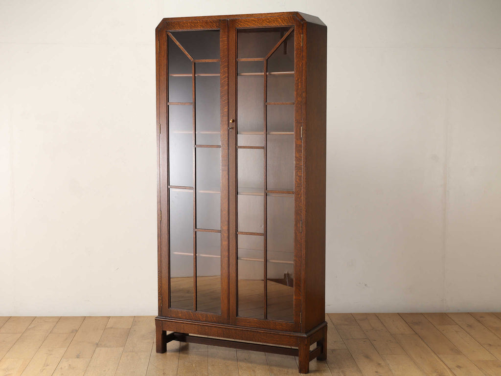 イギリスでは15世紀に活版印刷が発明され書籍が流通されていきますが、書物は貴重なもので一般の人々が手にすることはほとんどありませんでした。17世紀に入り書籍が一般にも流通し始めるようになり、小振りな書棚や扉付きの本棚が作られるようになって以後様々な仕様のブックケースが登場していきました。こちらのブックケースは格子が横一直線にならないように交互に配置されており、製作者のデザインへの拘りが感じられます。書籍だけではなく、食器棚としてもお勧めです。