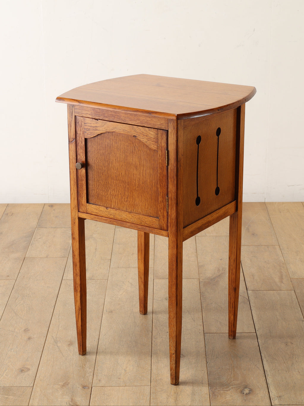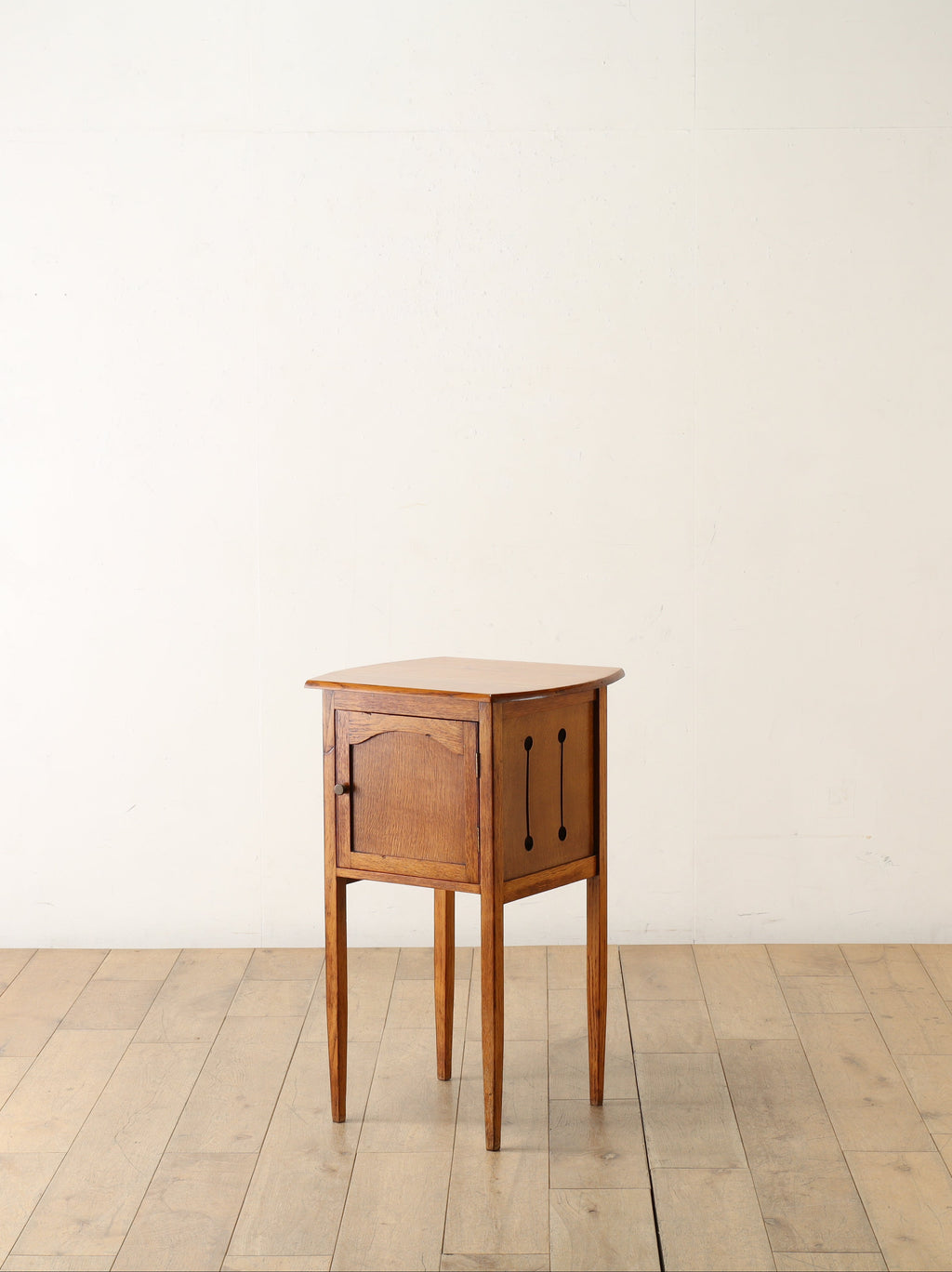 経年変化を経たオーク材の木目と色合いは優しく温かい雰囲気を演出します。小振りなサイズのため、ベッドサイドや玄関など限られたスペースでも活躍します。ランプや植物、お気に入りのコレクションを飾ったりとアレンジしてご使用いただけます。様々なシーンでも活躍しますので、お部屋のアクセントにお愉しみください。