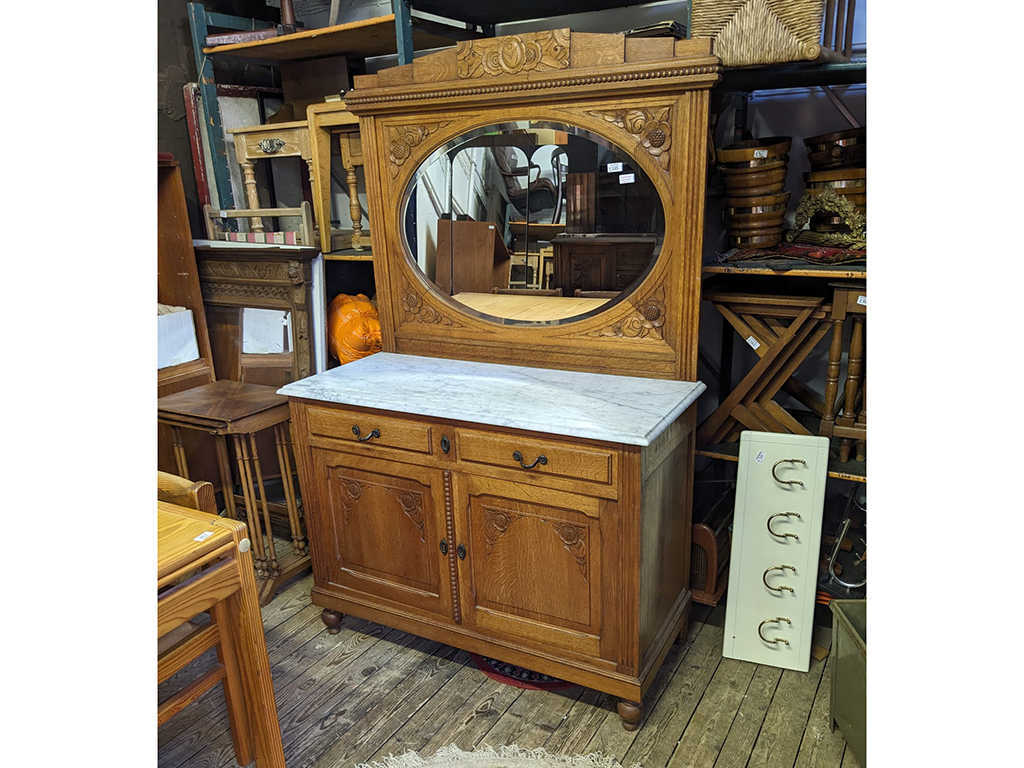マーブルトップミラーバックサイドボード