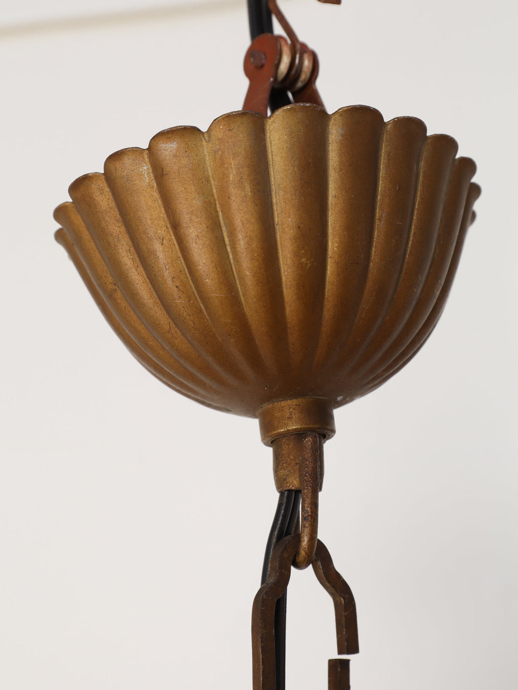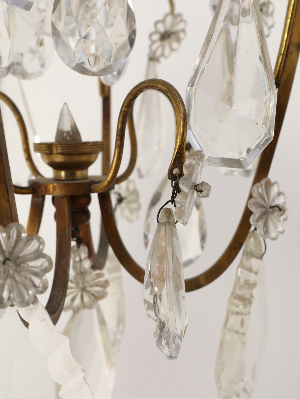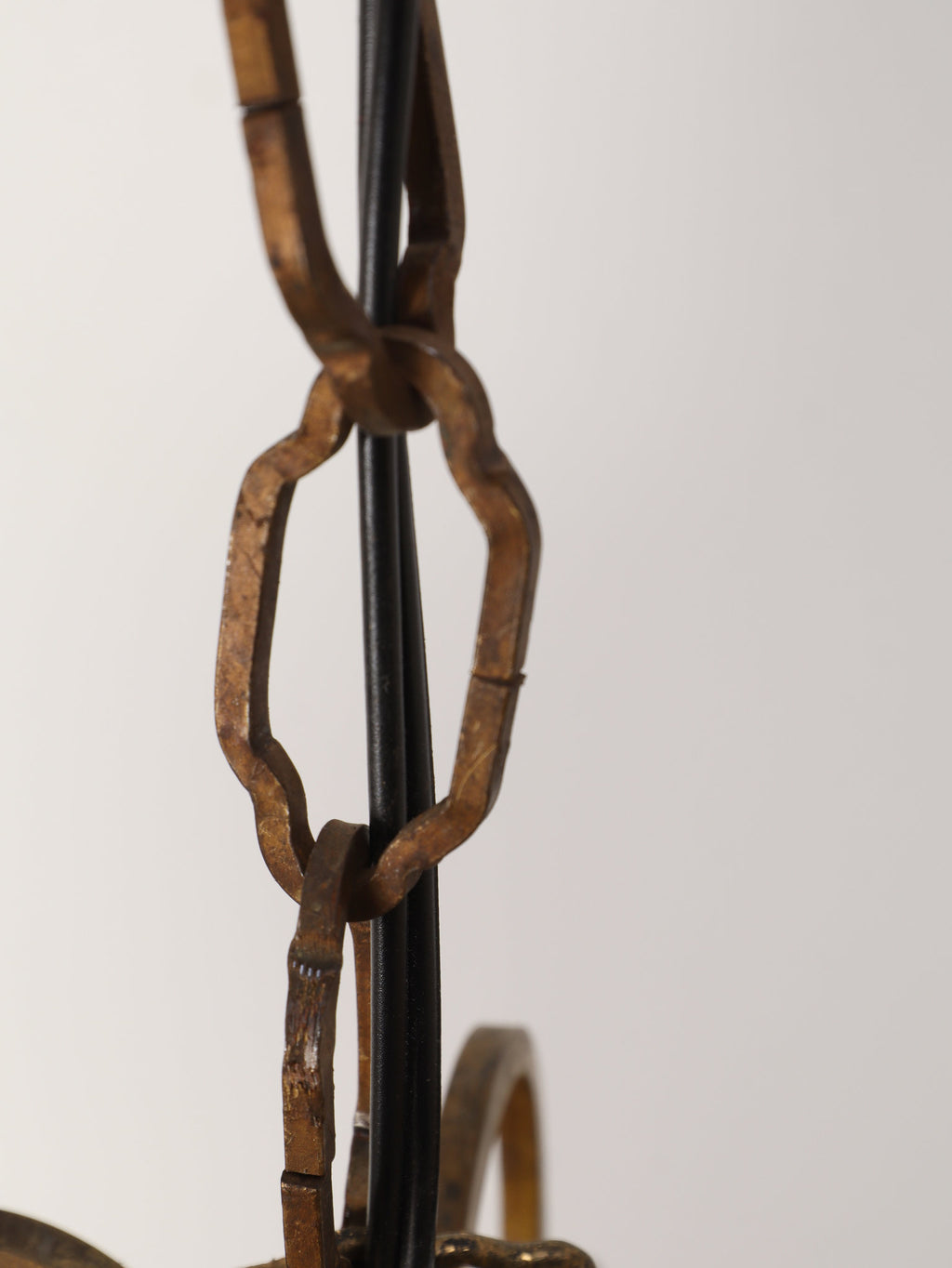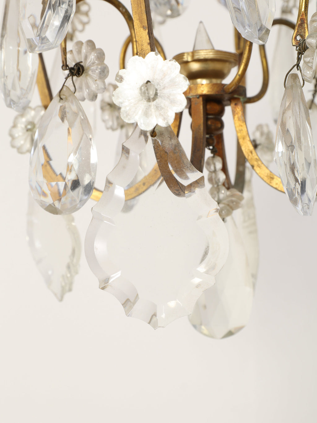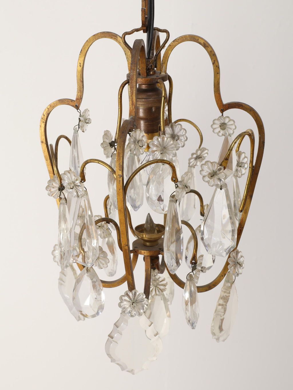 推定1920年代のイタリア製のシャンデリア。雫形の大ぶりなガラスパーツが上品かつ大胆に部屋に彩りを与えてくれます。フラワーモチーフのガラスパーツが程よいアクセントとなって、全体を引き立たせています。どの面からみても見る人たちを飽きさせない、そんなアイテムです。玄関やダイニングスペースなどで活躍してくれるでしょう。