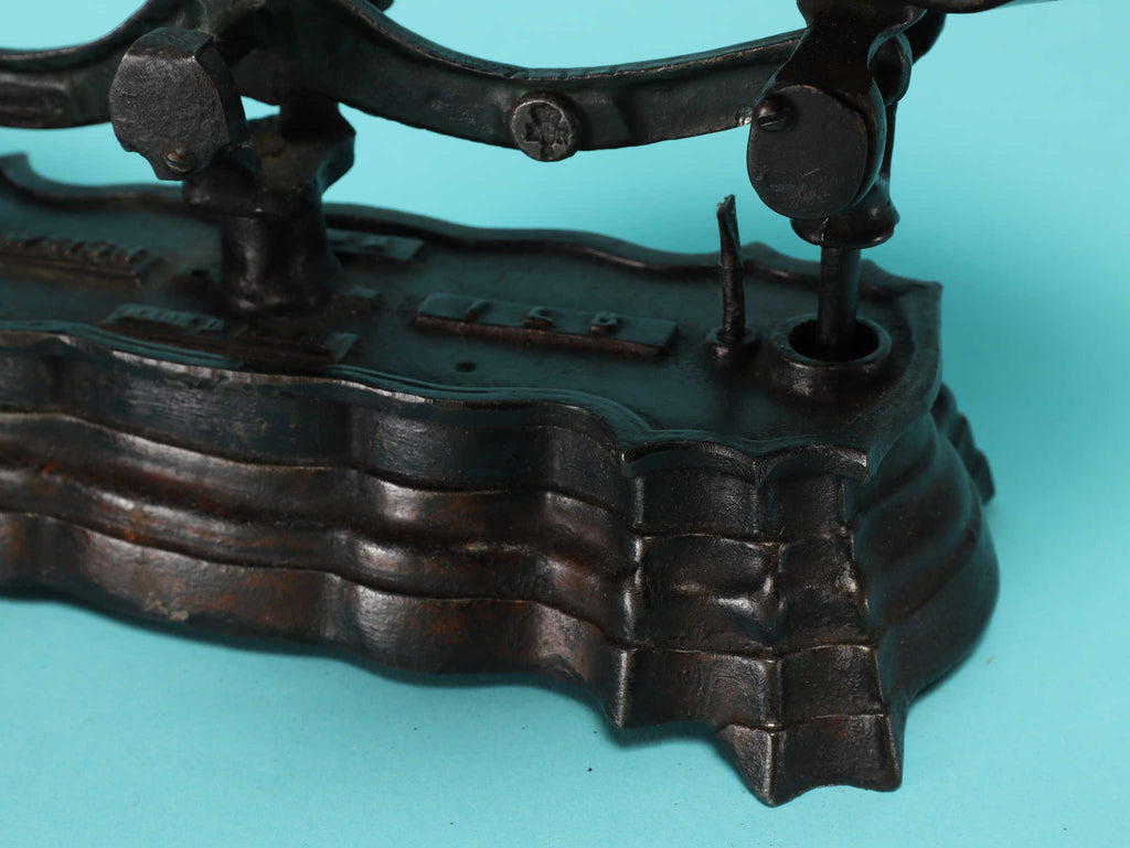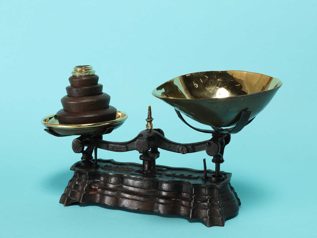 約100年以上前のフランス製推定のアンティークスケールです。年月を経て得た真鍮の風合いなどはかっこいいの一言につきます。アクセサリーや時計などを入れてディスプレイとしてお使いいただくこともお勧めです。英国クラシックのインテリアアイテム、お部屋のワンポイントにいかがでしょうか。お気に入りの空間で、アレンジをしてぜひお愉しみください。