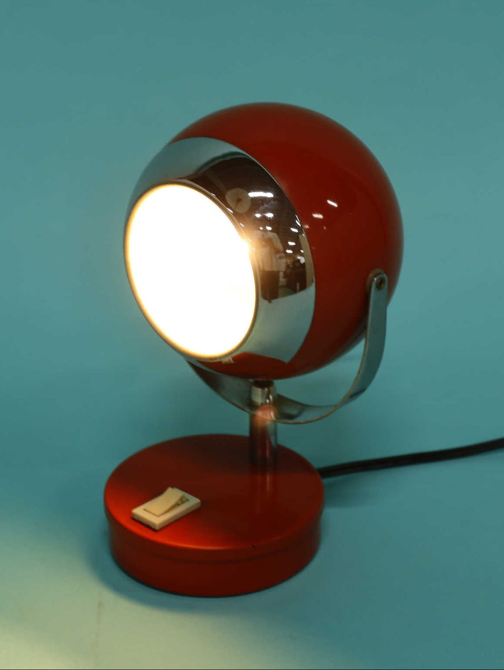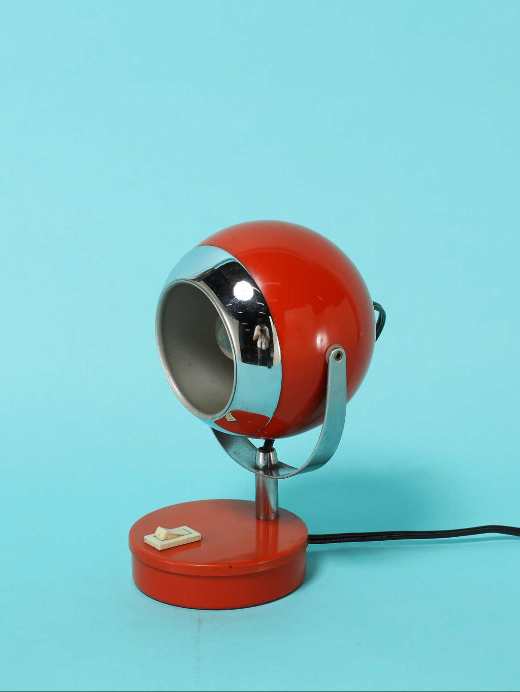 およそ1970年頃イタリア製のメタル製テーブルランプ。鮮やかな赤色が印象的で、飛行機のジェットエンジンを思わせる流線型のデザインがとてもスタイリッシュ一品です。シンプルながらも個性的なフォルムは、ヴィンテージ感とモダンさが絶妙に融合しており、デスクやサイドテーブルに置くだけで空間のアクセントになります。コンパクトなサイズ感で場所を取らず、インテリアのポイントとしても重宝するランプです。イタリアらしい遊び心と機能美を感じられるアイテムです。