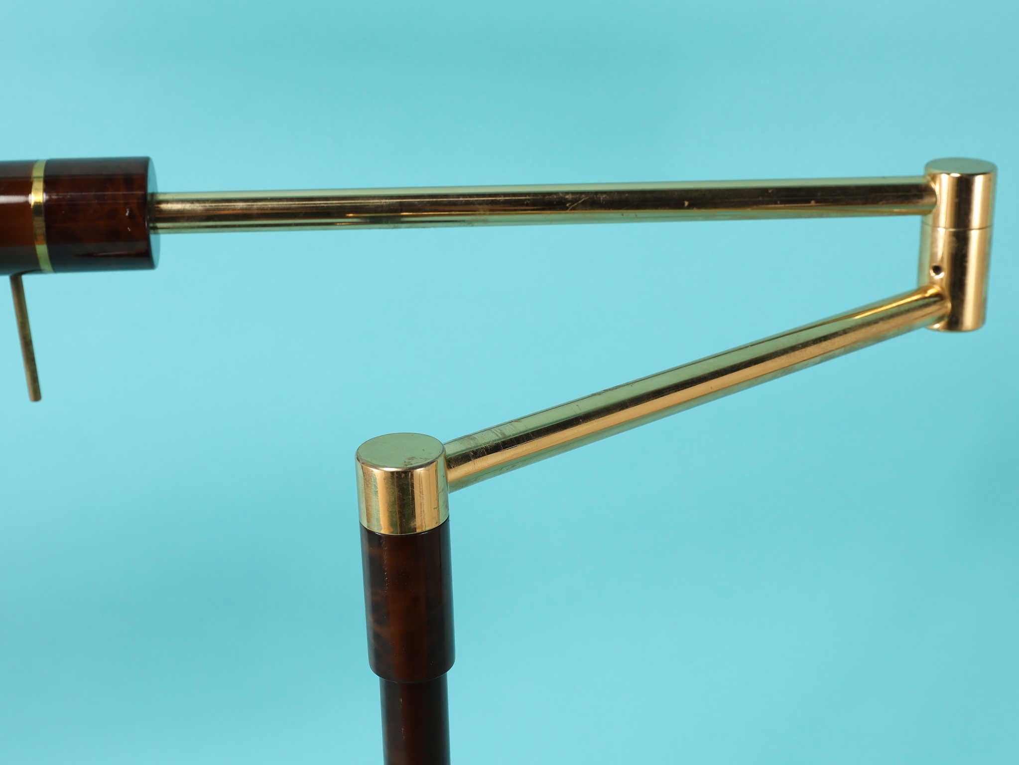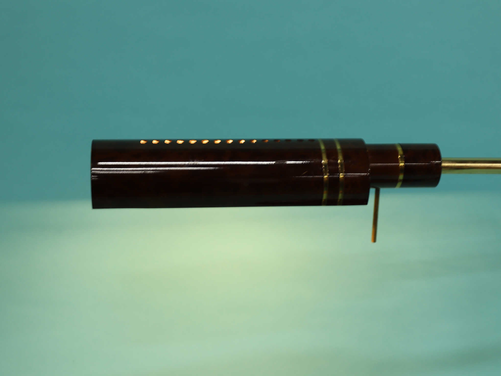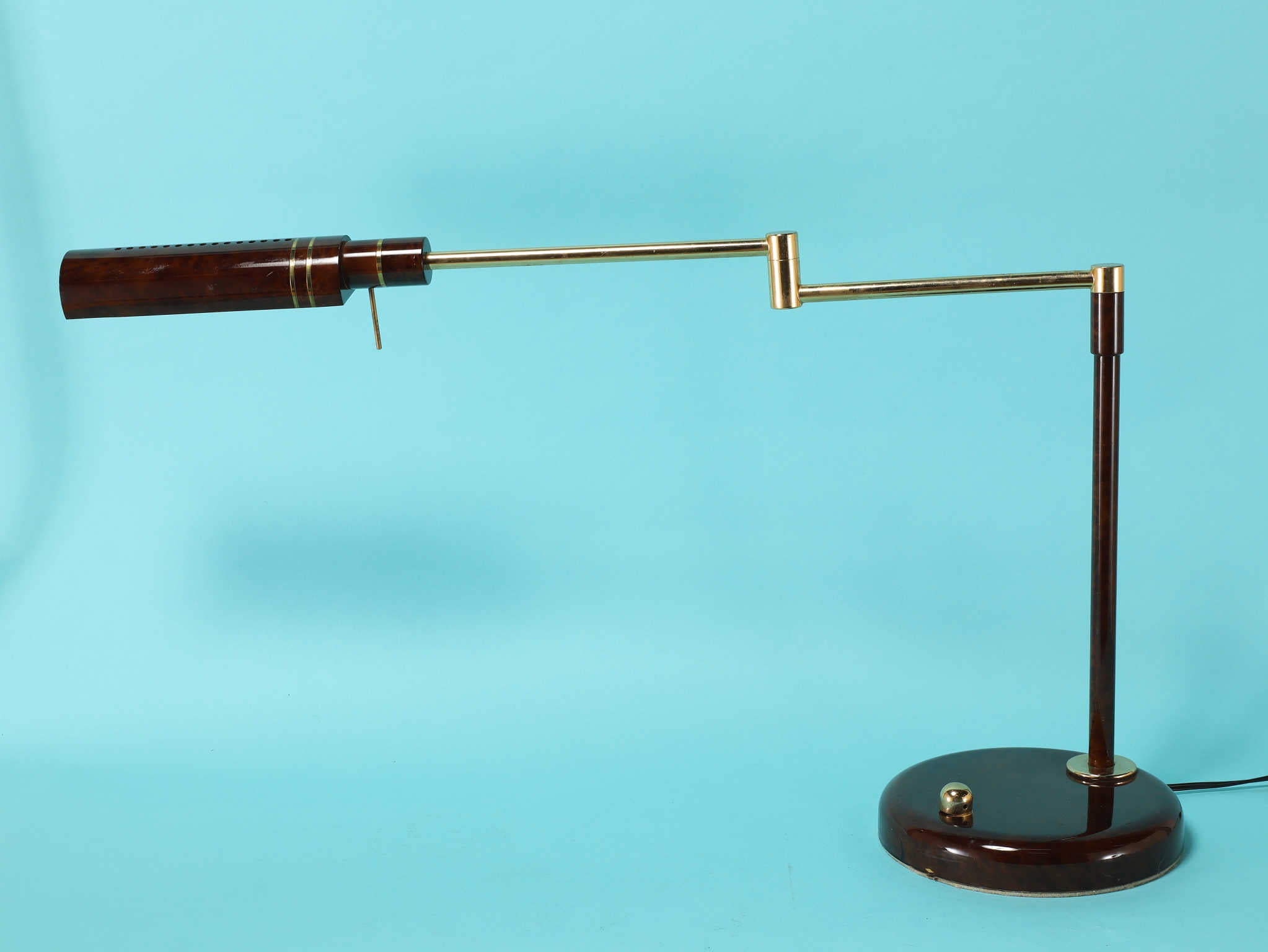 1980年代(推定)、FRATELLI MARTINIのテーブルランプです。ブラックとゴールドのコントラストが美しく、洗練されたデザイン。支柱部分は自由に調整可能で、必要な場所に光を届けます。読書や作業灯としてではなく、お部屋のモダンなアクセントとしても最適。書斎やリビングにエレガントかつ、上質な落ち着きを添えてくれるアイテムです。