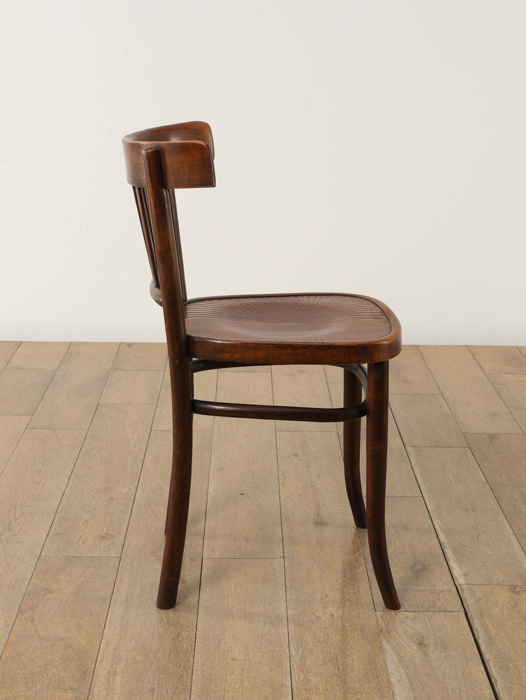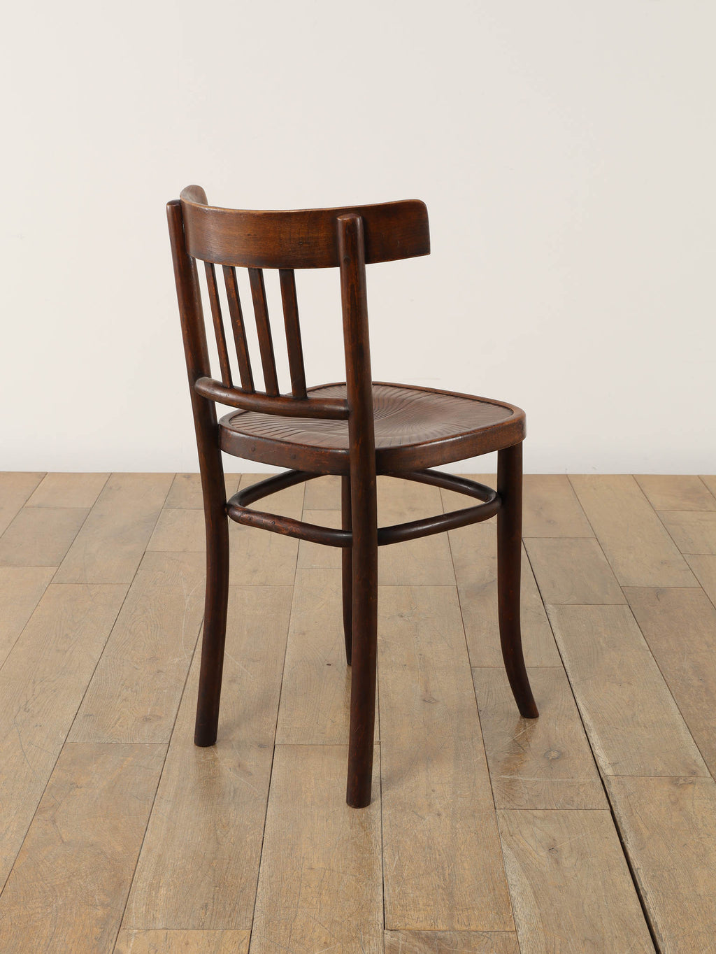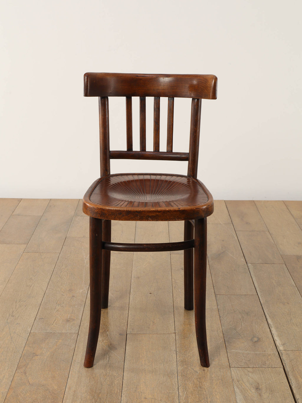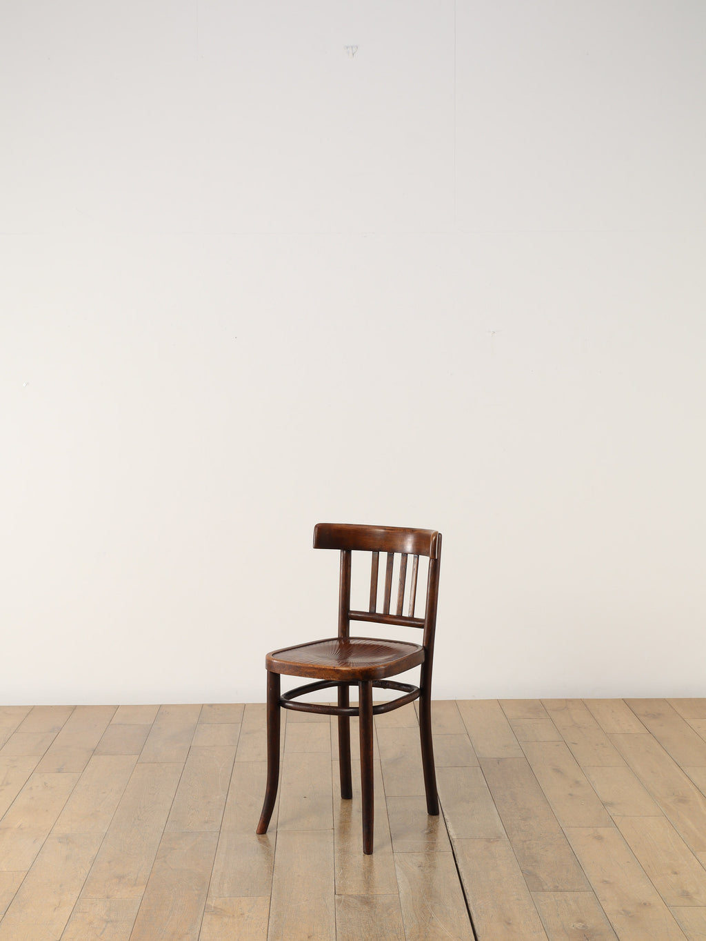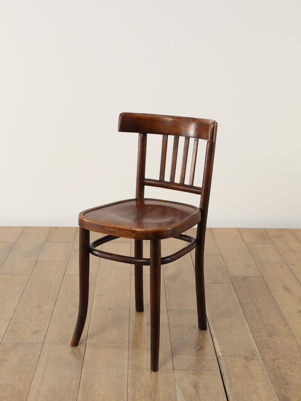 1920年代(推定)ポーランド製のベントウッドチェアです。曲げ木による丸みを帯びた背面は美しく、背中を優しく包みこんでくれる印象です。ベントウッドチェアは丈夫で分解や修理が容易な構造のため英国のカフェやパブなどで多く使用されていきました。軽量で持ち運びが容易な点も魅力の一つです。シンプルなデザインで、お部屋の空間に溶け込みやすく、ダイニングチェアとしてだけでなく、ベッドサイドテーブル、エントランスホールのコンソールなど様々な用途でのご利用をお楽しみ頂けます。