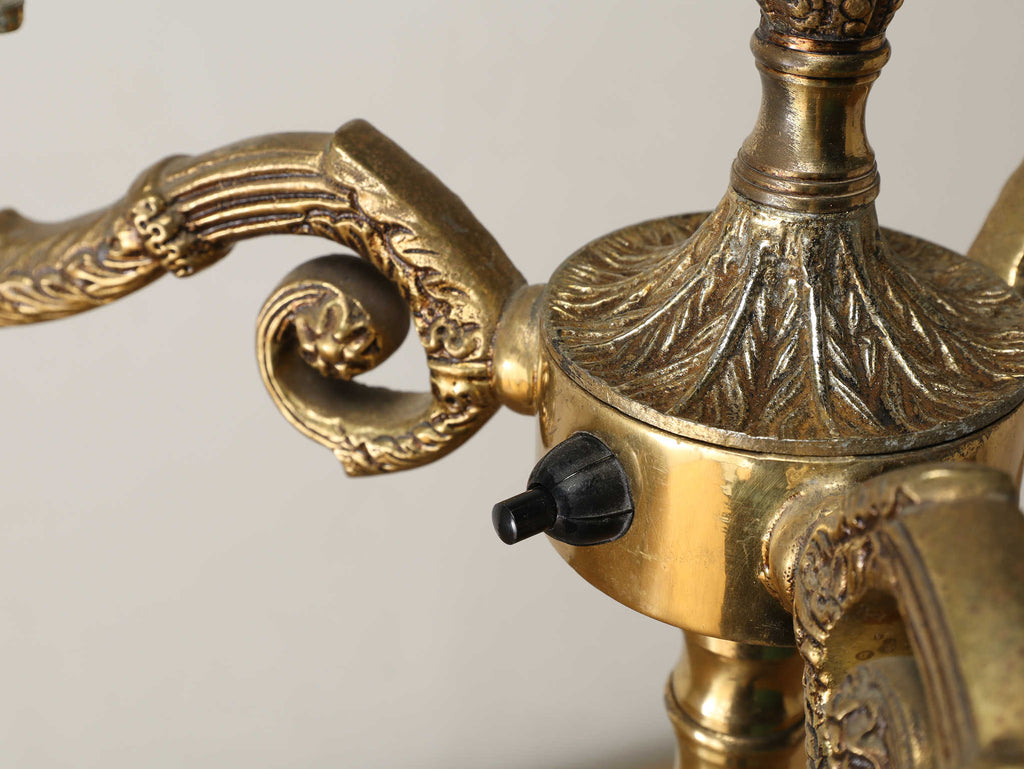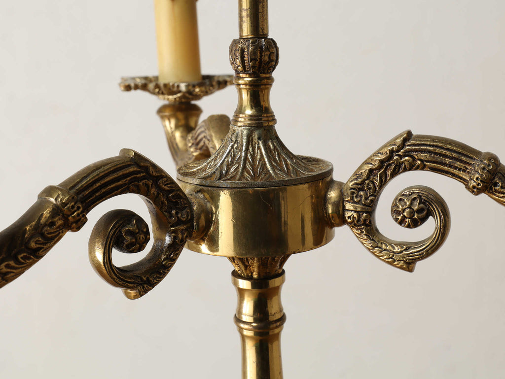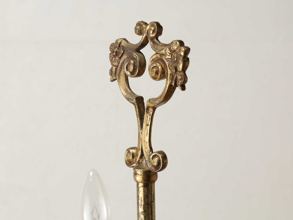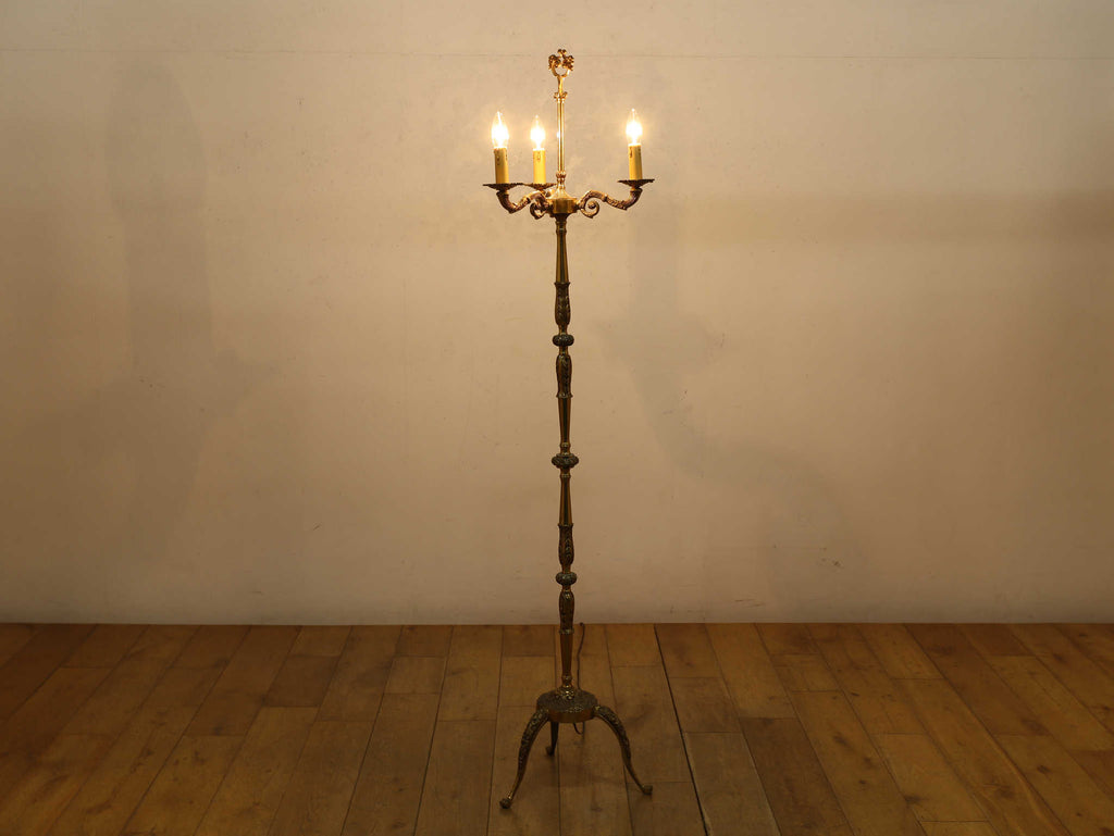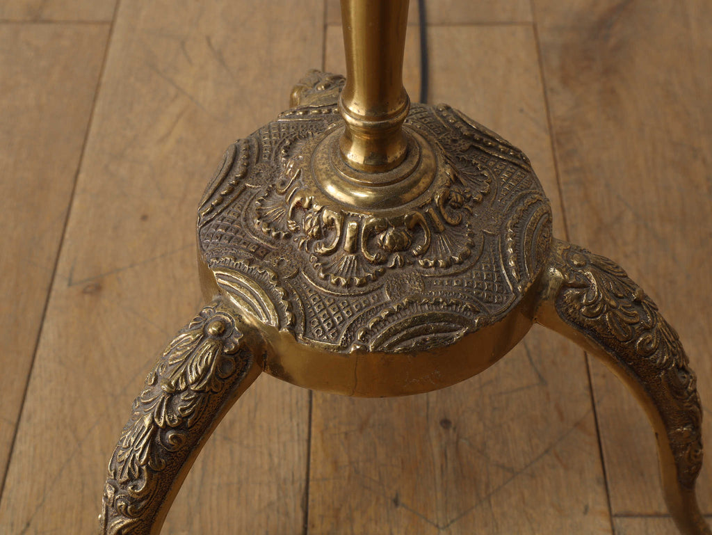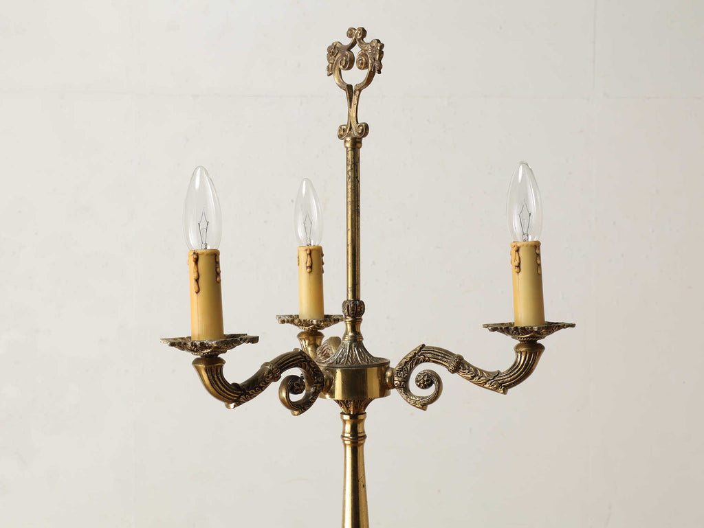 1960年代(推定)にフランスで製作された、フロアランプです。クラシカルな要素と、モダンデザインが交差するミッドセンチュリー期のフランスで育まれた、普遍的なデザイン性を持つ逸品です。支柱は優美な装飾で構成されており、経年による深い味わいがその歴史を物語っています。重厚な素材感でありながら、流麗な曲線を描くフォルムは空間に重々しさを与えすぎず、エレガントな存在感を放ちます。これは、当時の職人の卓越した技術と、装飾美へのこだわりを示すものです。また、このランプの真髄はその空間の主役となる存在感にあります。リビングや書斎はもちろん、モダンな店舗什器として配置すれば、瞬時にその場の雰囲気を格上げします。