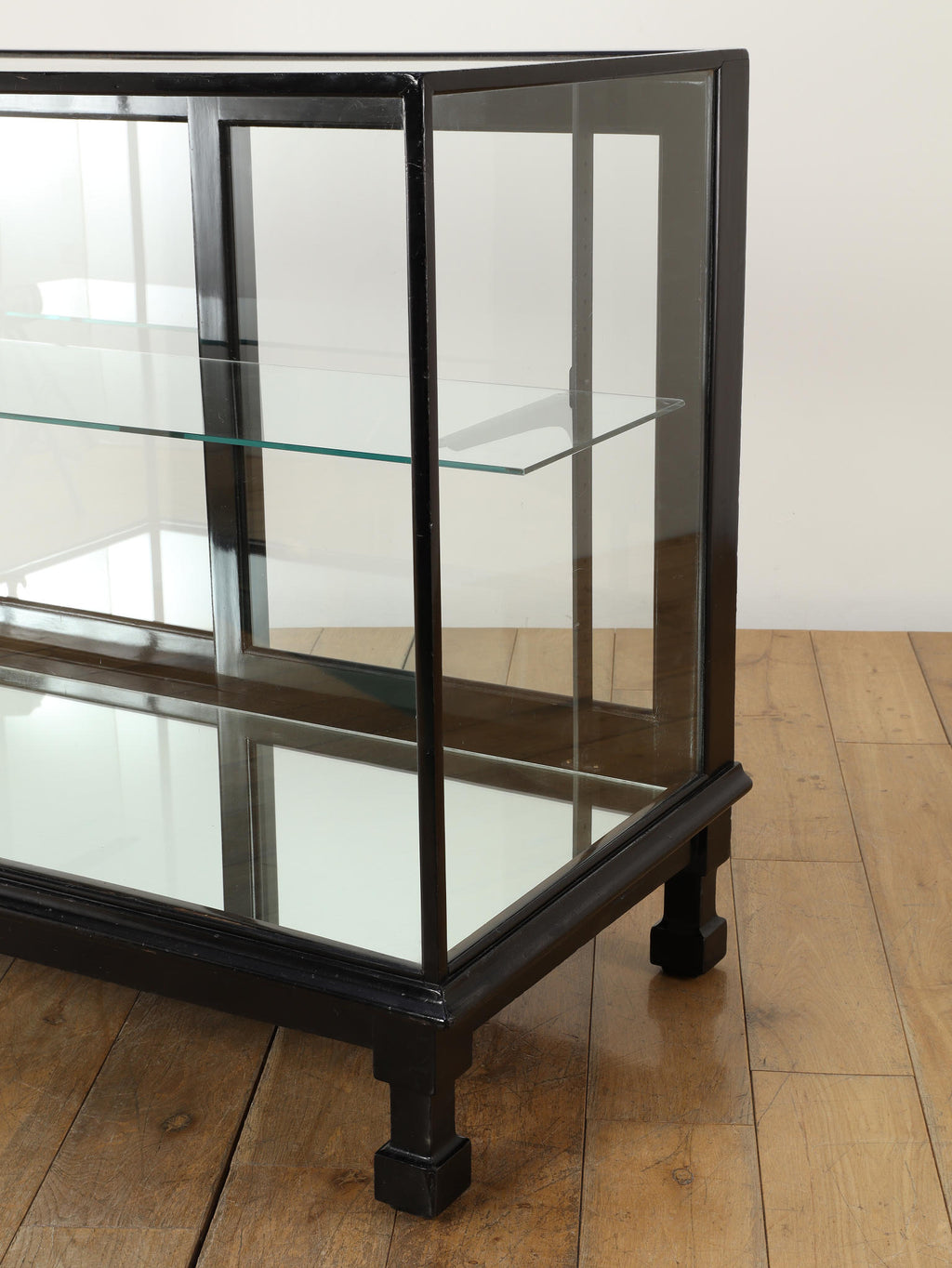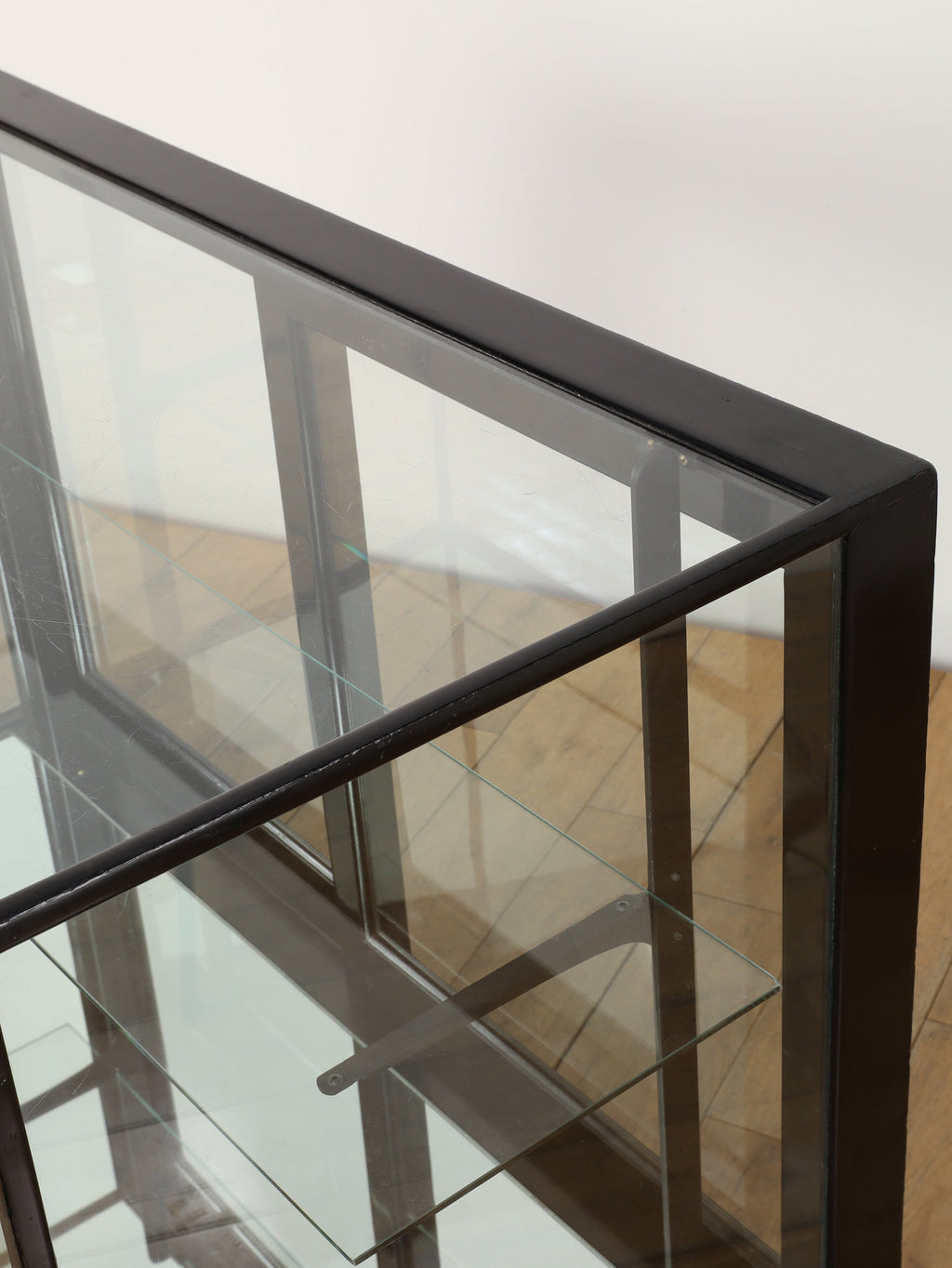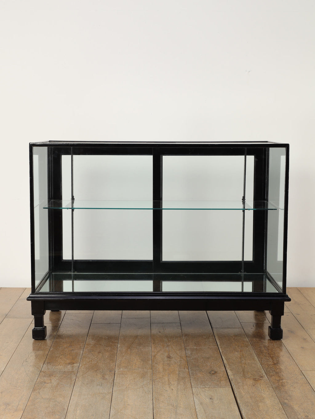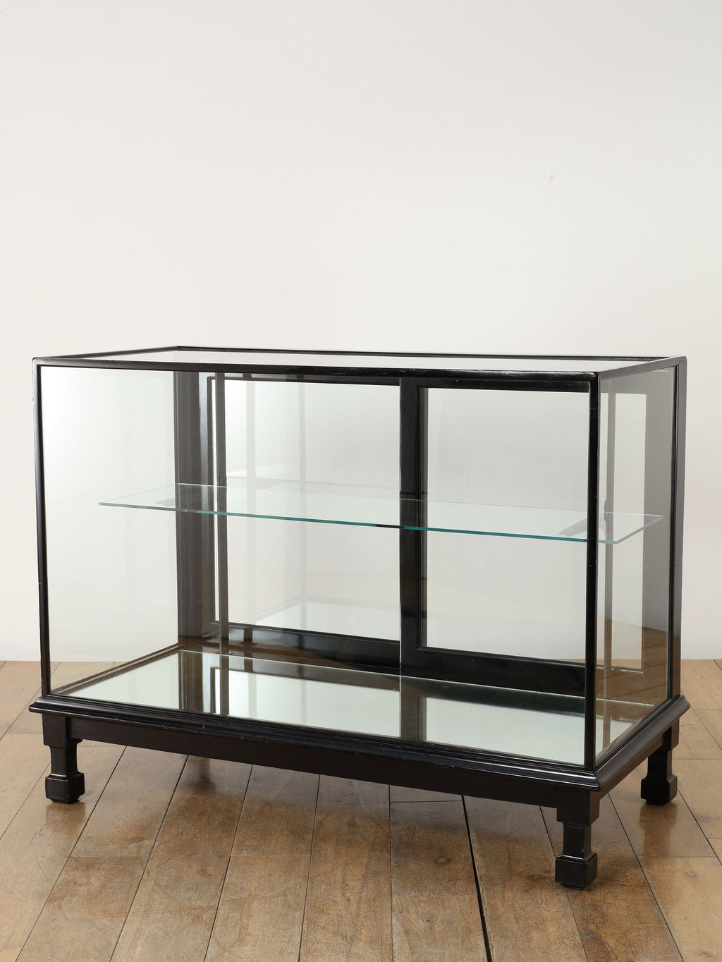1920年代(推定)にイギリスで製作された、重厚なマホガニー製ショップカウンターです。アール・デコ様式が流行し始めた時代の空気感をまとい、当時の賑わいある店先を彷彿とさせる、非常に貴重な英国アンティークです。全体をブラックで塗装された木製フレームと、全体を囲む大きなガラス面が特徴です。艶やかな黒は、約100年の時を経てもなお、普遍的なデザイン性と深い味わいを保っています。ガラス越しに見せるディスプレイは、何を飾っても空間の主役となる存在感を発揮します。ご自宅のリビングや書斎でコレクションケースとして使用するのはもちろん、その格式高い佇まいは、ブティックやカフェなどの店舗什器としても理想的です。単なる家具ではなく、英国の商業史の一端を担ってきたこのカウンターは、歴史と風格をまとっています。