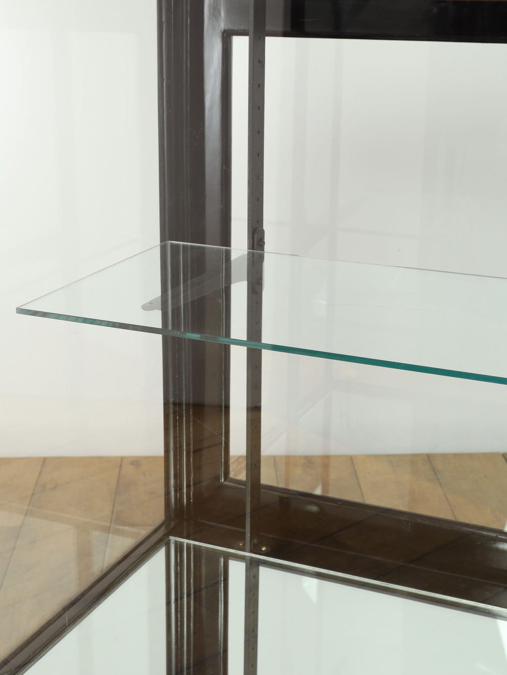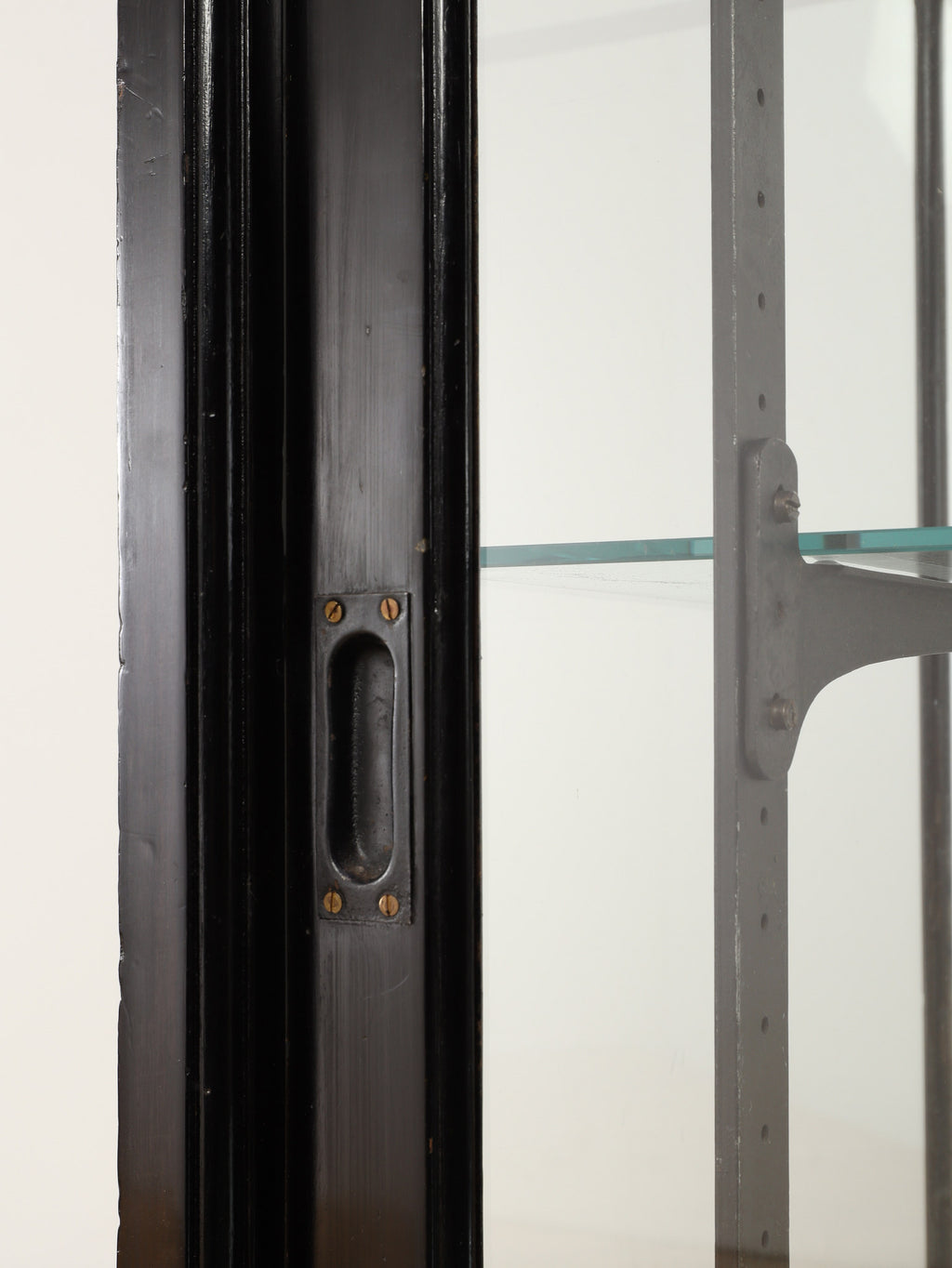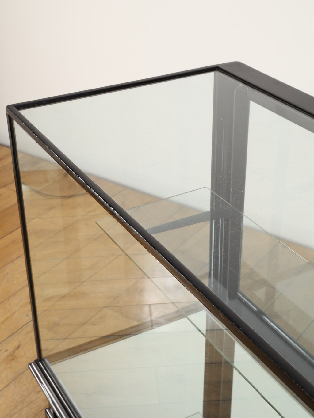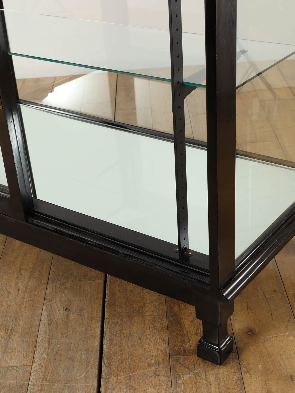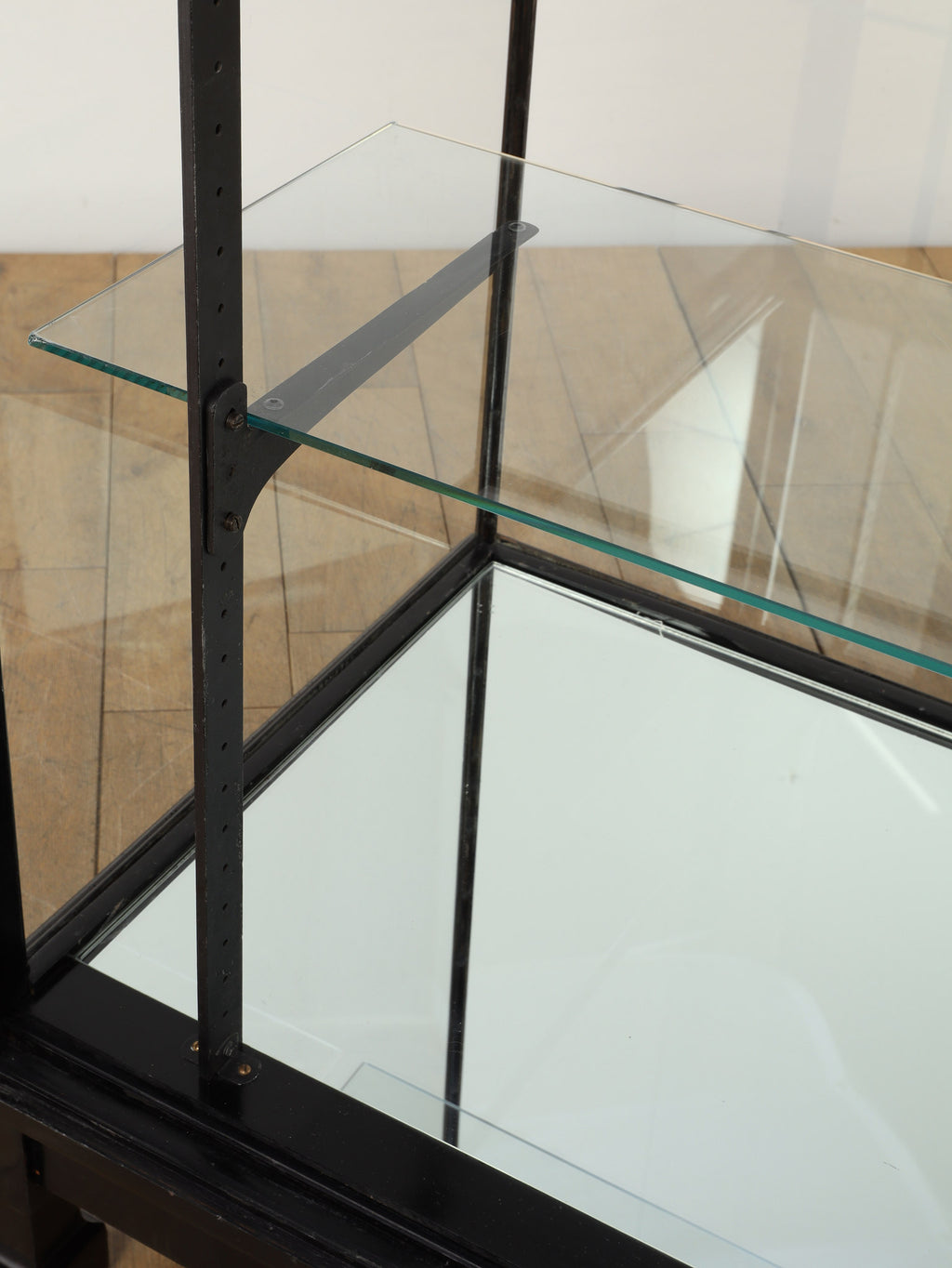 1920年代(推定)にイギリスで製作された、重厚なマホガニー製ショップカウンターです。アール・デコ様式が流行し始めた時代の空気感をまとい、当時の賑わいある店先を彷彿とさせる、非常に貴重な英国アンティークです。全体をブラックで塗装された木製フレームと、全体を囲む大きなガラス面が特徴です。艶やかな黒は、約100年の時を経てもなお、普遍的なデザイン性と深い味わいを保っています。ガラス越しに見せるディスプレイは、何を飾っても空間の主役となる存在感を発揮します。ご自宅のリビングや書斎でコレクションケースとして使用するのはもちろん、その格式高い佇まいは、ブティックやカフェなどの店舗什器としても理想的です。単なる家具ではなく、英国の商業史の一端を担ってきたこのカウンターは、歴史と風格をまとっています。