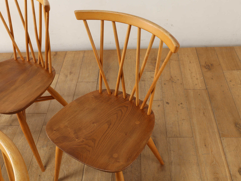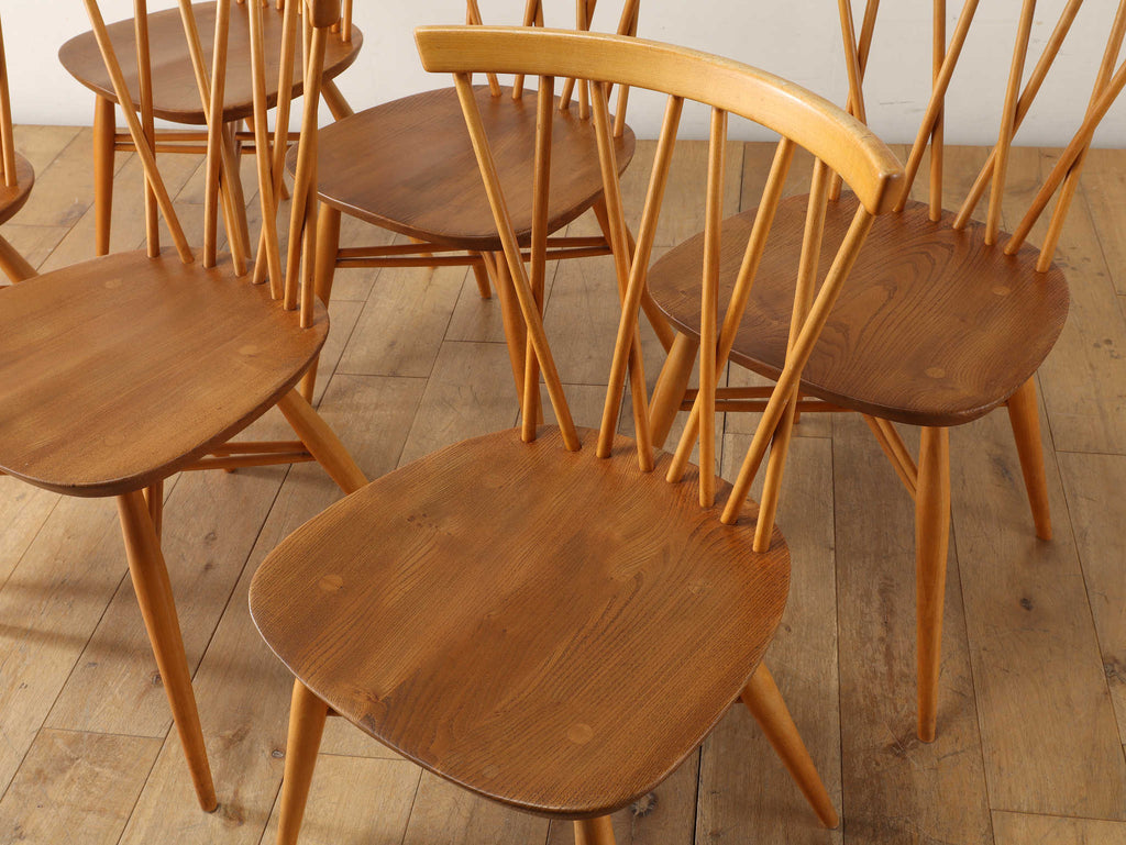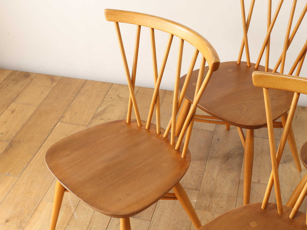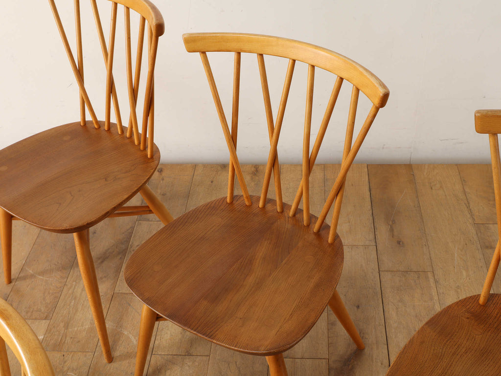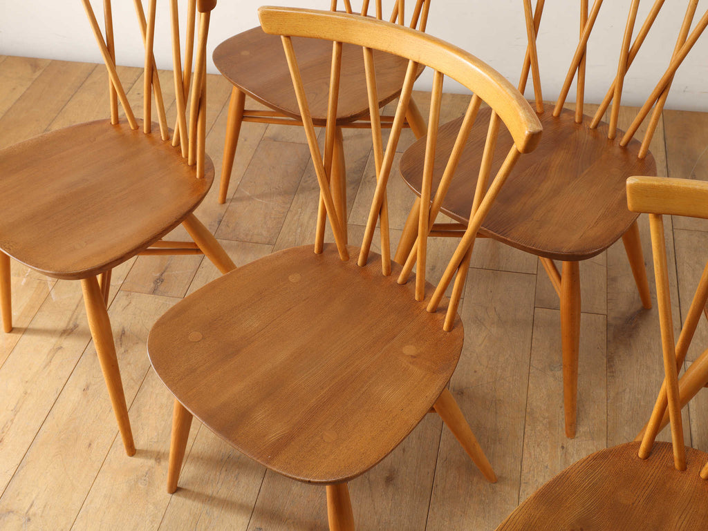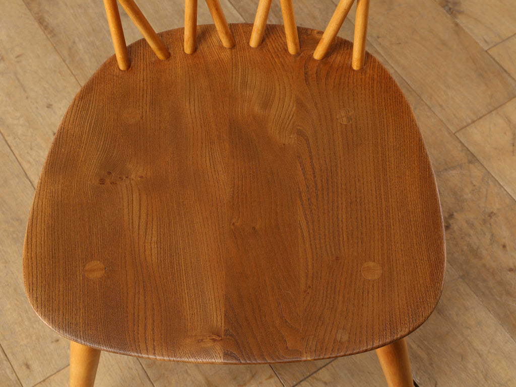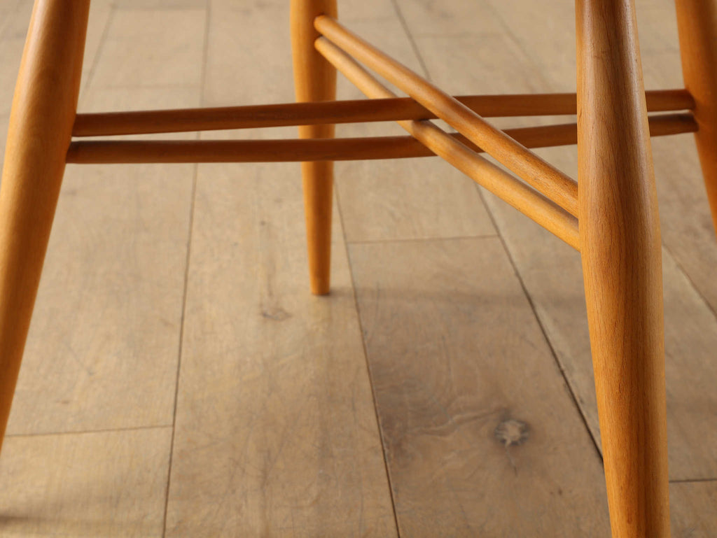 英国ミッドセンチュリーを代表とするERCOL社が誇るタイムレスな美しさを放つクロスバックチェアです。背面に交差したスピンドルのデザインは、シンプルでありながら印象的でどの角度から見ても美しく、空間に軽やかなアクセントを加えてくれます。滑らかな曲線、手に馴染む柔らかな質感、安定感のある座り心地の良さは、アーコール社が培ってきた木工技術の高さを物語っています。現代インテリアとの相性もよく、アンティーク/ヴィンテージを始める最初の家具としてもお薦めです。ただ置いてあるだけで絵になるチェアでお部屋を彩ってみてはいかがでしょうか。