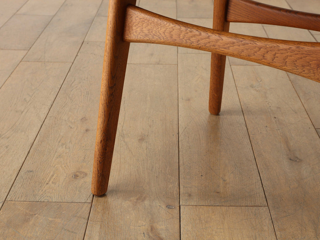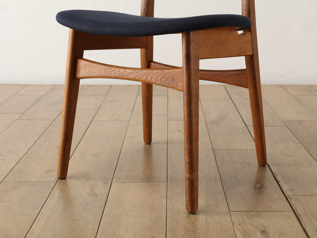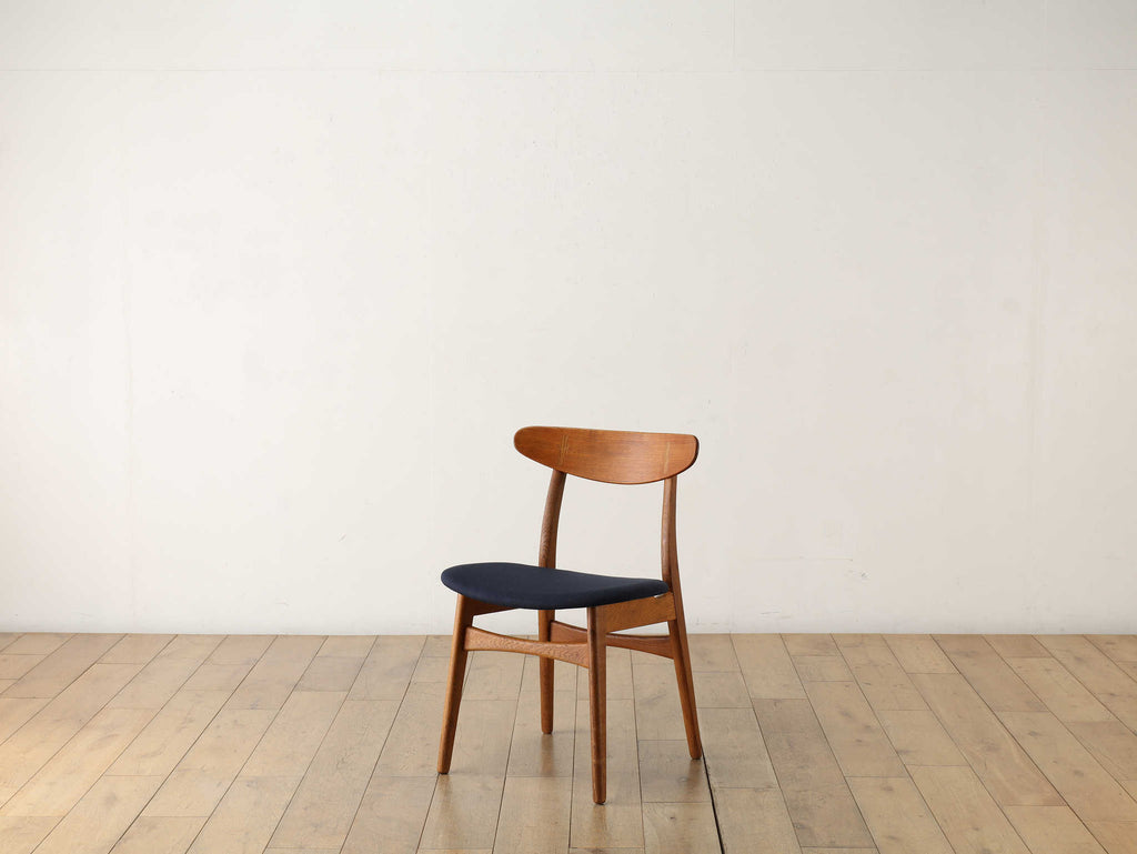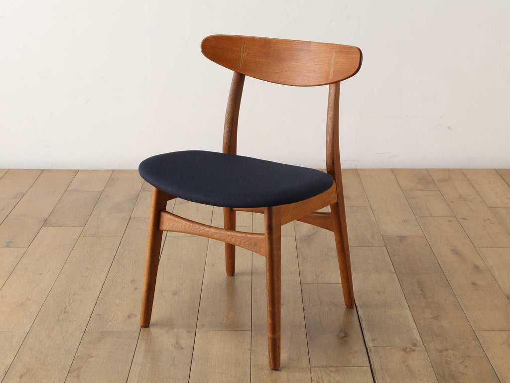 デンマークの家具デザイン史において、多大な影響を与えた巨匠、ハンス・J・ウェグナー。生涯において、500脚以上のチェアをデザインしたといわれており、その作品は、MoMA(ニューヨーク近代美術館)にも所蔵されております。そのウェグナーによってデザインされたダイニングチェア通称CH30です。デザインの起源は1954年より Carl Hansen & Søn(カール・ハンセン&サン)社で製造されたヴィンテージの個体となります。シンプルながら、大きく広めの座面設定で、座り心地が素晴らしいのも評価されたチェアです。特徴としては背束部のフィンガージョイント部分をデザインとして全面的に演出しており、ウェグナーらしさがうかがえる最良の実用チェアとして名高い名作と評価されています。【ファブリック】