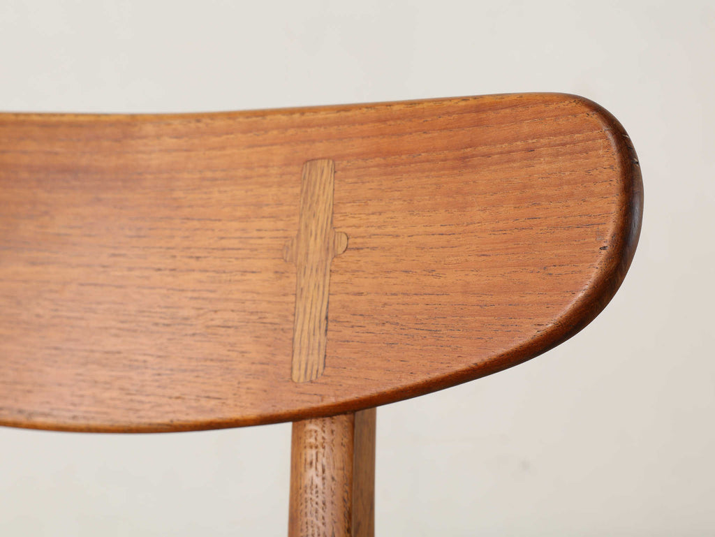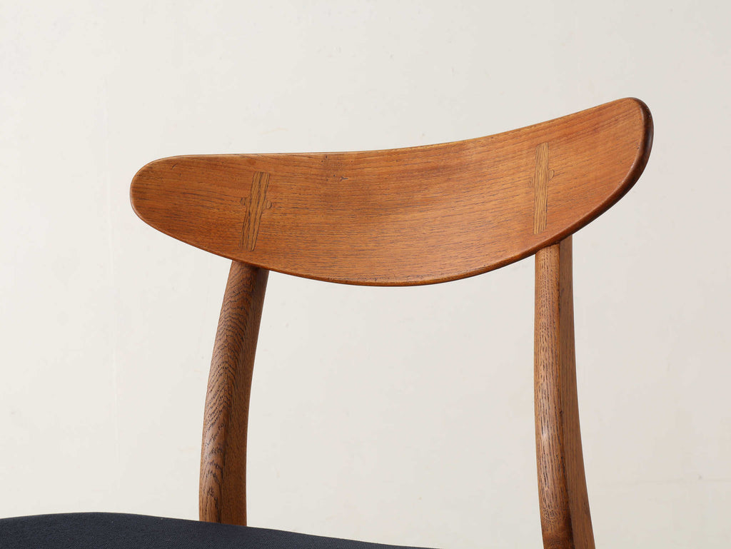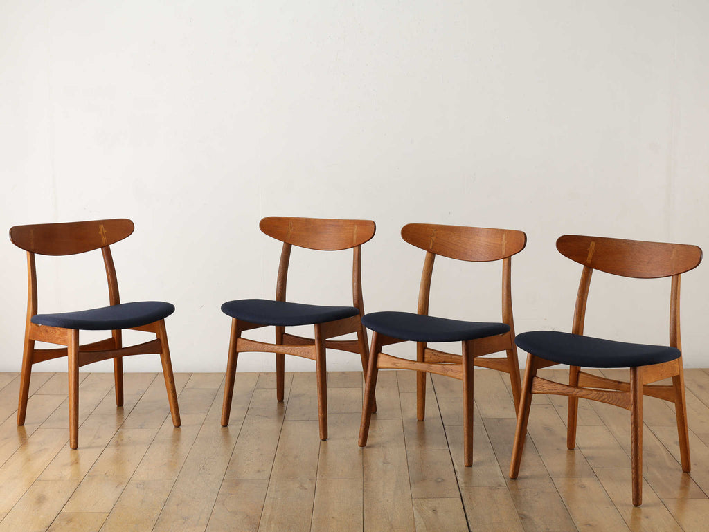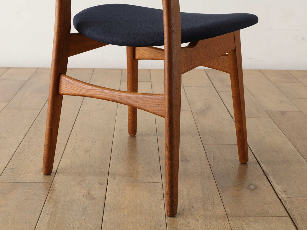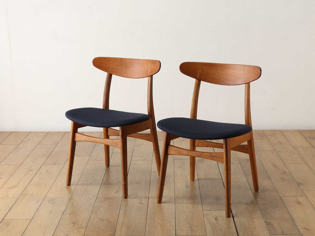 デンマークの家具デザイン史において、多大な影響を与えた巨匠、ハンス・J・ウェグナー。生涯において、500脚以上のチェアをデザインしたといわれており、その作品は、MoMA(ニューヨーク近代美術館)にも所蔵されております。そのウェグナーによってデザインされたダイニングチェア通称CH30です。デザインの起源は1954年より Carl Hansen & Søn(カール・ハンセン&サン)社で製造されたヴィンテージの個体となります。シンプルながら、大きく広めの座面設定で、座り心地が素晴らしいのも評価されたチェアです。特徴としては背束部のフィンガージョイント部分をデザインとして全面的に演出しており、ウェグナーらしさがうかがえる最良の実用チェアとして名高い名作と評価されています。【ファブリック】