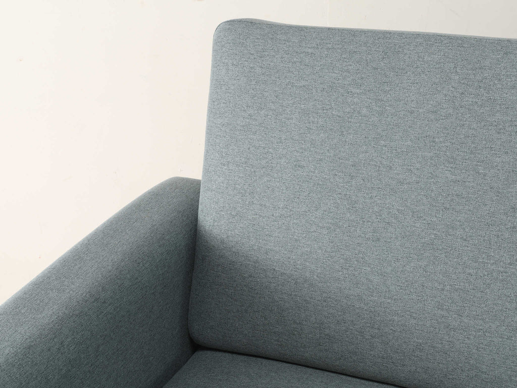 ポリエステル100%のこちらの生地は、液体を弾く加工が施されていますので、汚れ、染みを防ぎ、生地が長く保つように仕上げられています。生地の耐久性が向上するだけでなく、メンテナンスが容易になります。生地と中材は国内で張替えています。