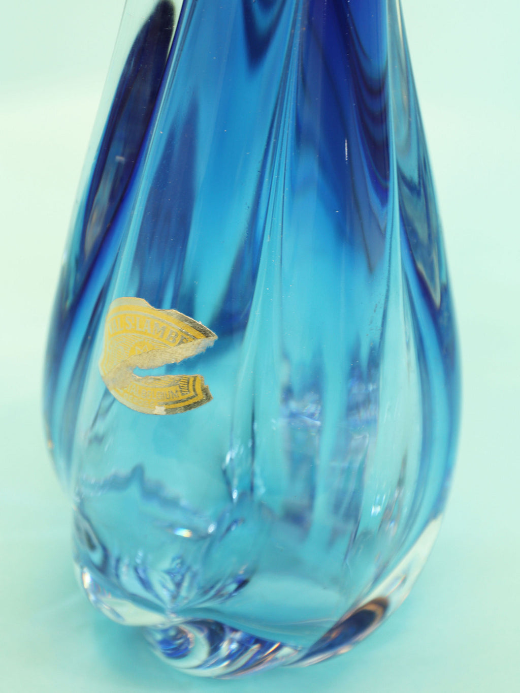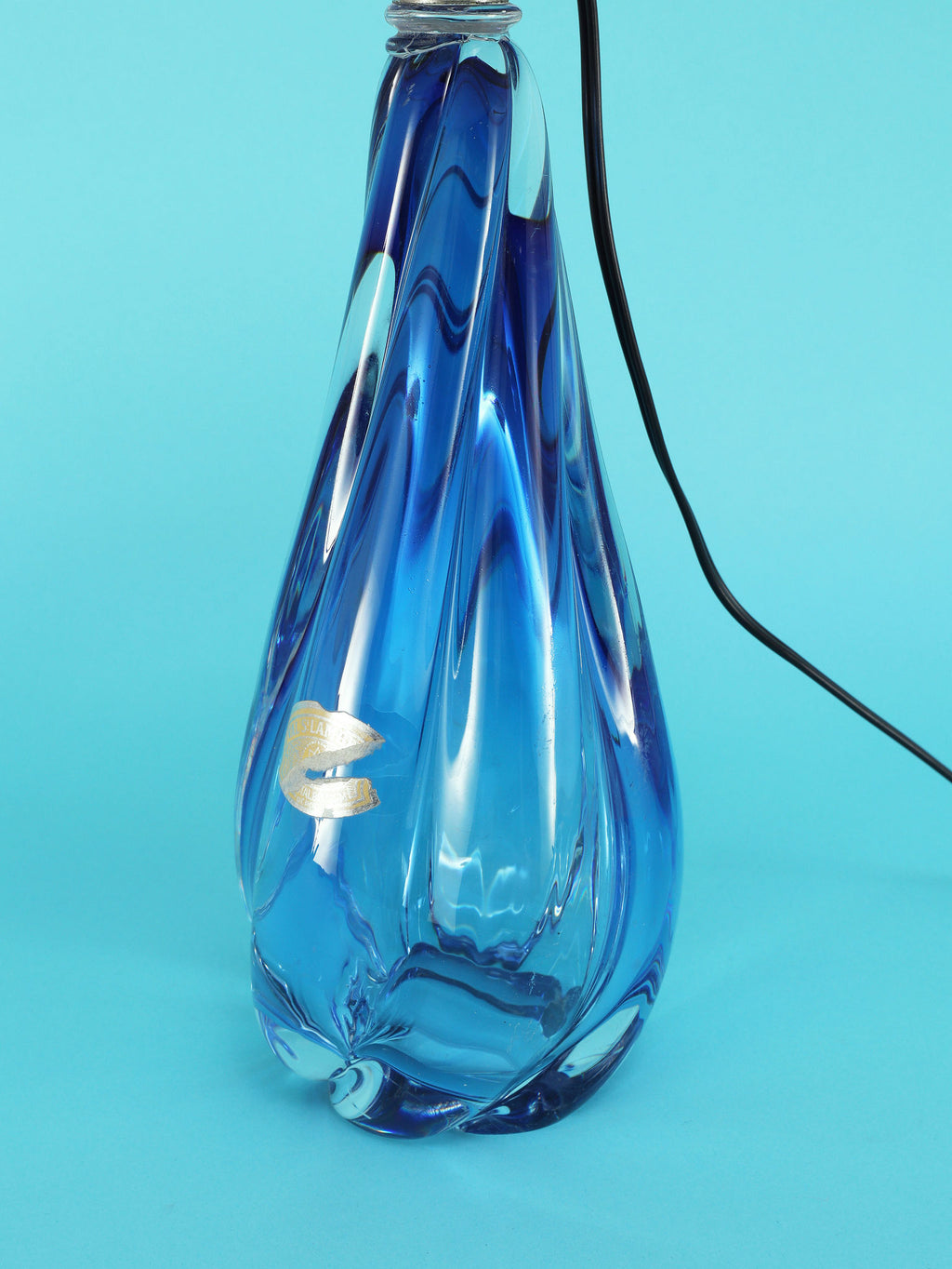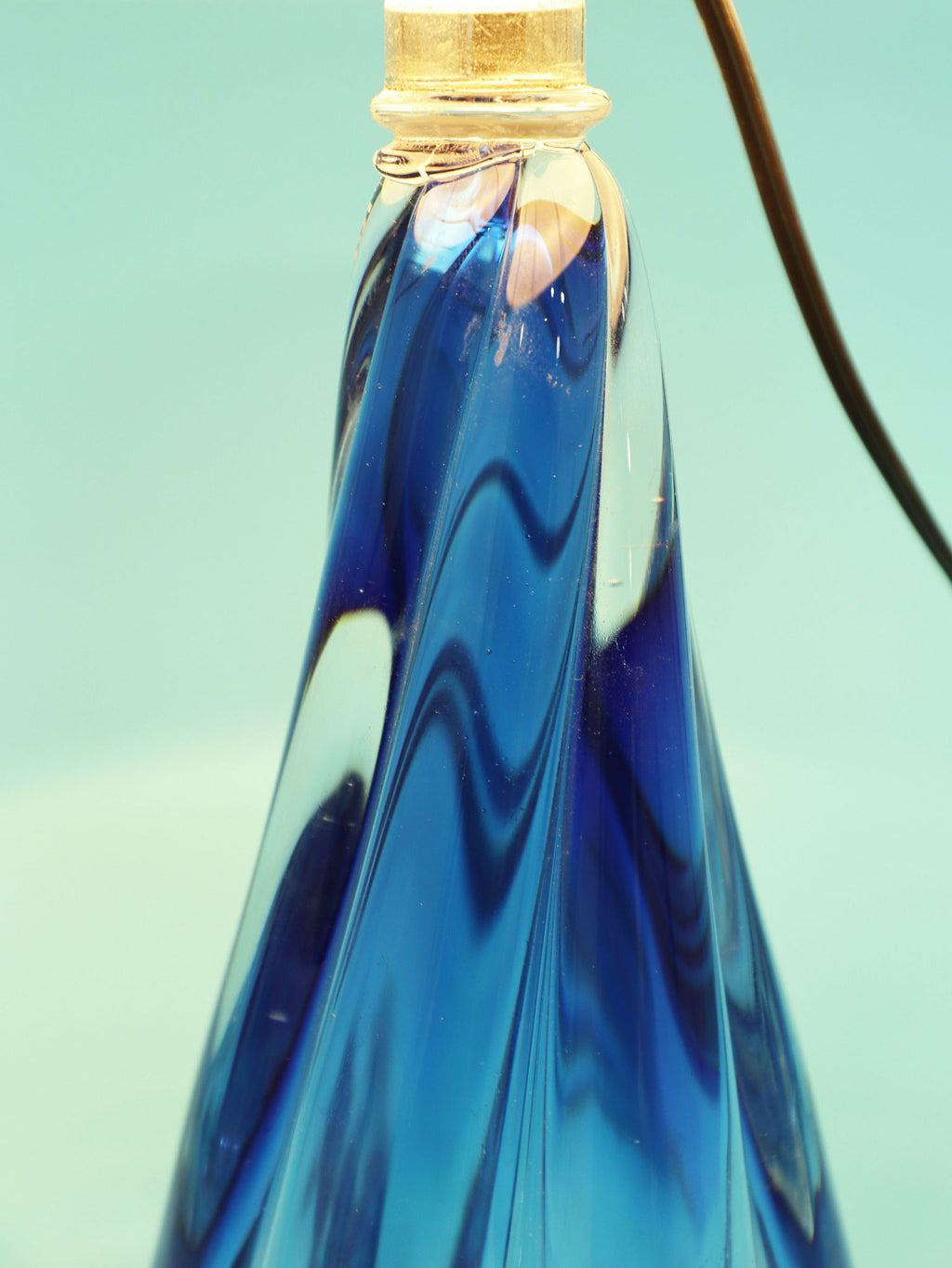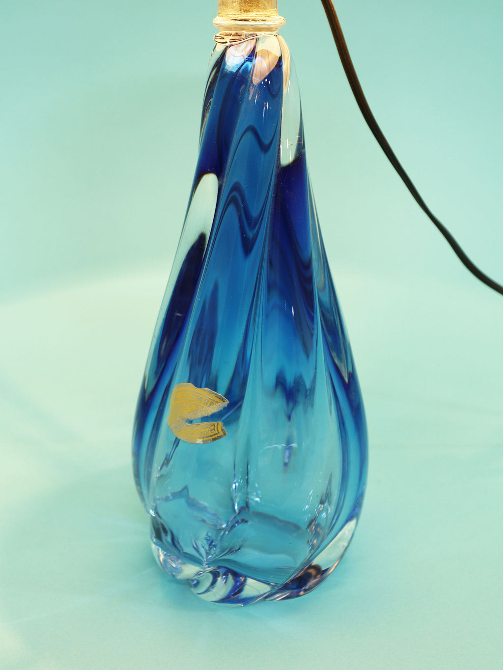 ベルギー王室御用達として名高いVal Saint Lambert 社 (ヴァル・サン・ランベール)製の、ミッドセンチュリー期を代表するクリスタルメーカーのテーブルランプです。1950年代から60年代にかけて製造されたと推測し、ヴァル・サン・ランベールならではの美しいクリスタルガラスが贅沢に使用されています。透明なガラスと、アールデコから続くグラデーションカラーが特徴的で、特にこの作品は、底部から中心にかけて淡く変化する各色の色彩が、見る角度によって様々な表情を醸し出します。種類も様々であり人の手により形成された本体は、光を反射するたびに美しい輝きを放ち、空間にエレガントなアクセントをもたらします。シンプルながらも彫刻的な存在感があり、消灯時もオブジェとしての魅力を十二分に発揮するでしょう。モダンな空間からクラシックな設えまで、時代を超えて愛されるヴァル・サン・ランベールの美意識をぜひご自宅でお楽しみください。