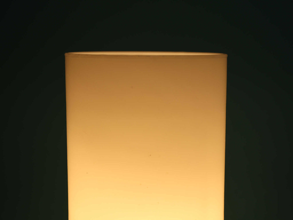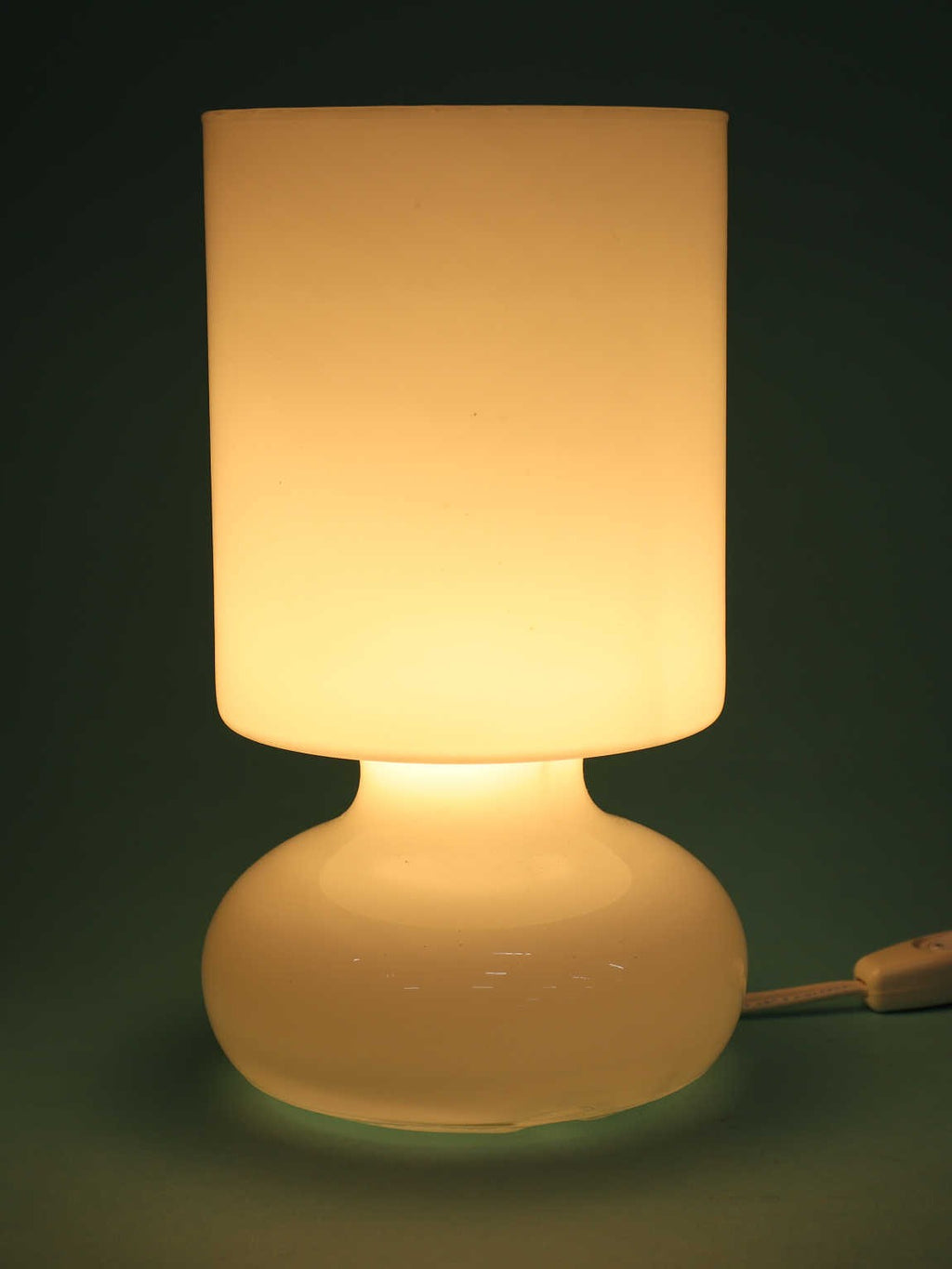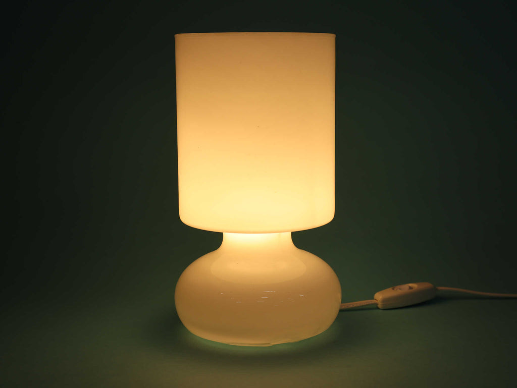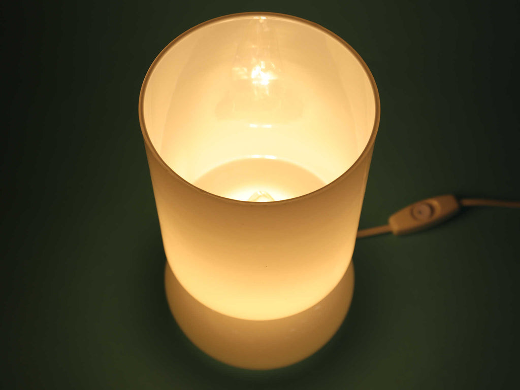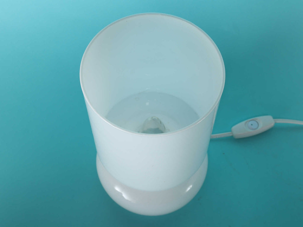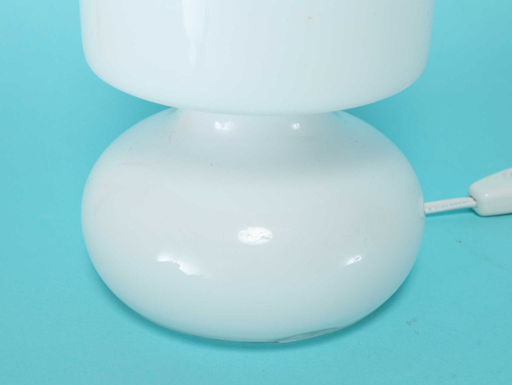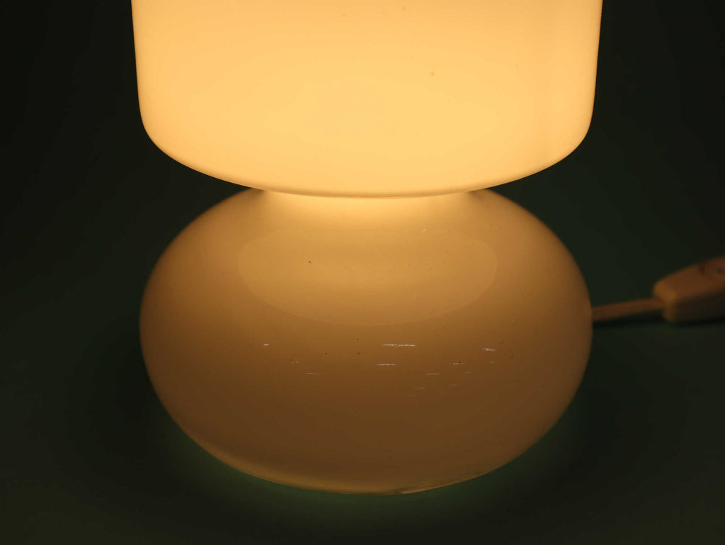 1970年代(推定)のイタリアで製作された、ガラスの質感が際立つテーブルランプです。柔らかな曲線を描くベースと、円筒形のシェードが一体となったミニマルな構成は、当時のミッドセンチュリー・モダンの洗練された美意識を体現しています。乳白色のガラスは、消灯時にはオブジェとして空間に静けさをもたらし、点灯時には、その白さが温かい光へと変化し、周囲を優しく包み込みます。過度な装飾を排し、素材の美しさと光そのものを主役としたこのランプは、現代のインテリアにも自然に溶け込み、日常に上質な安らぎをもたらしてくれるでしょう。