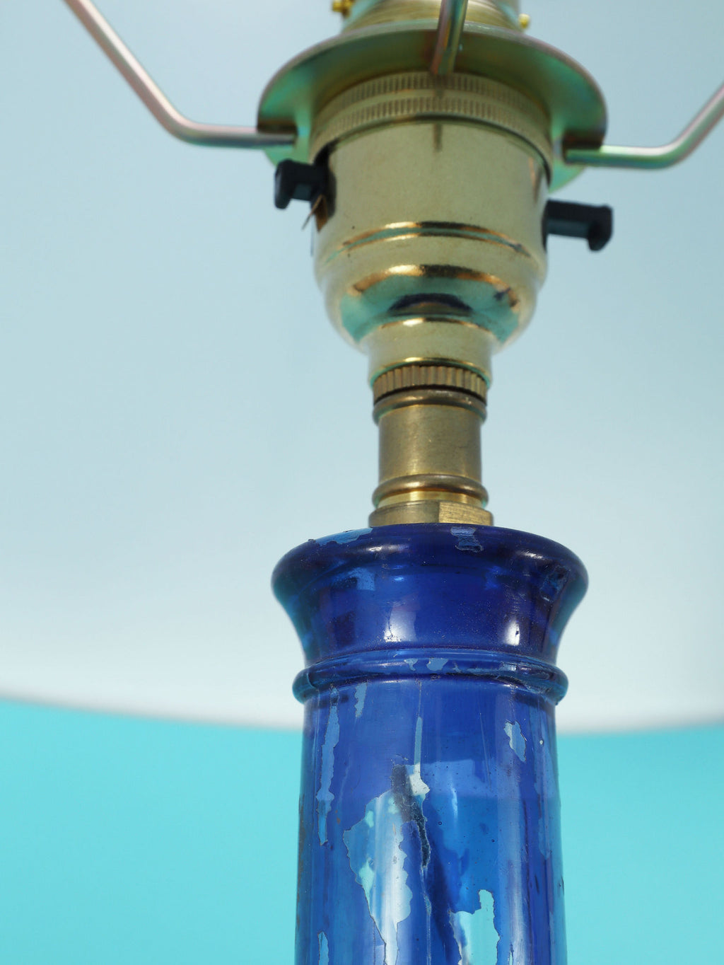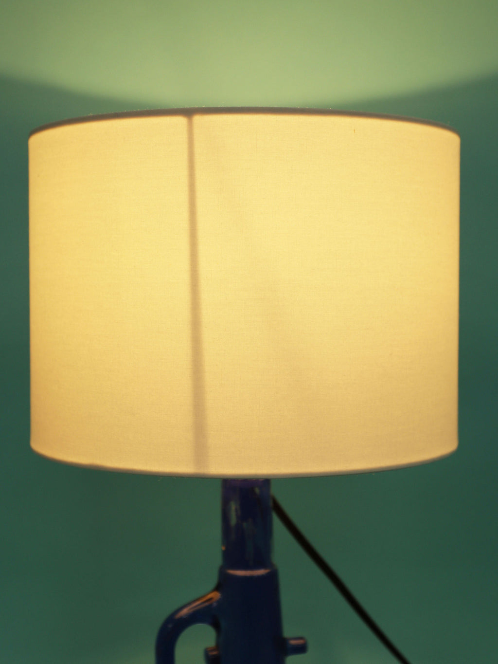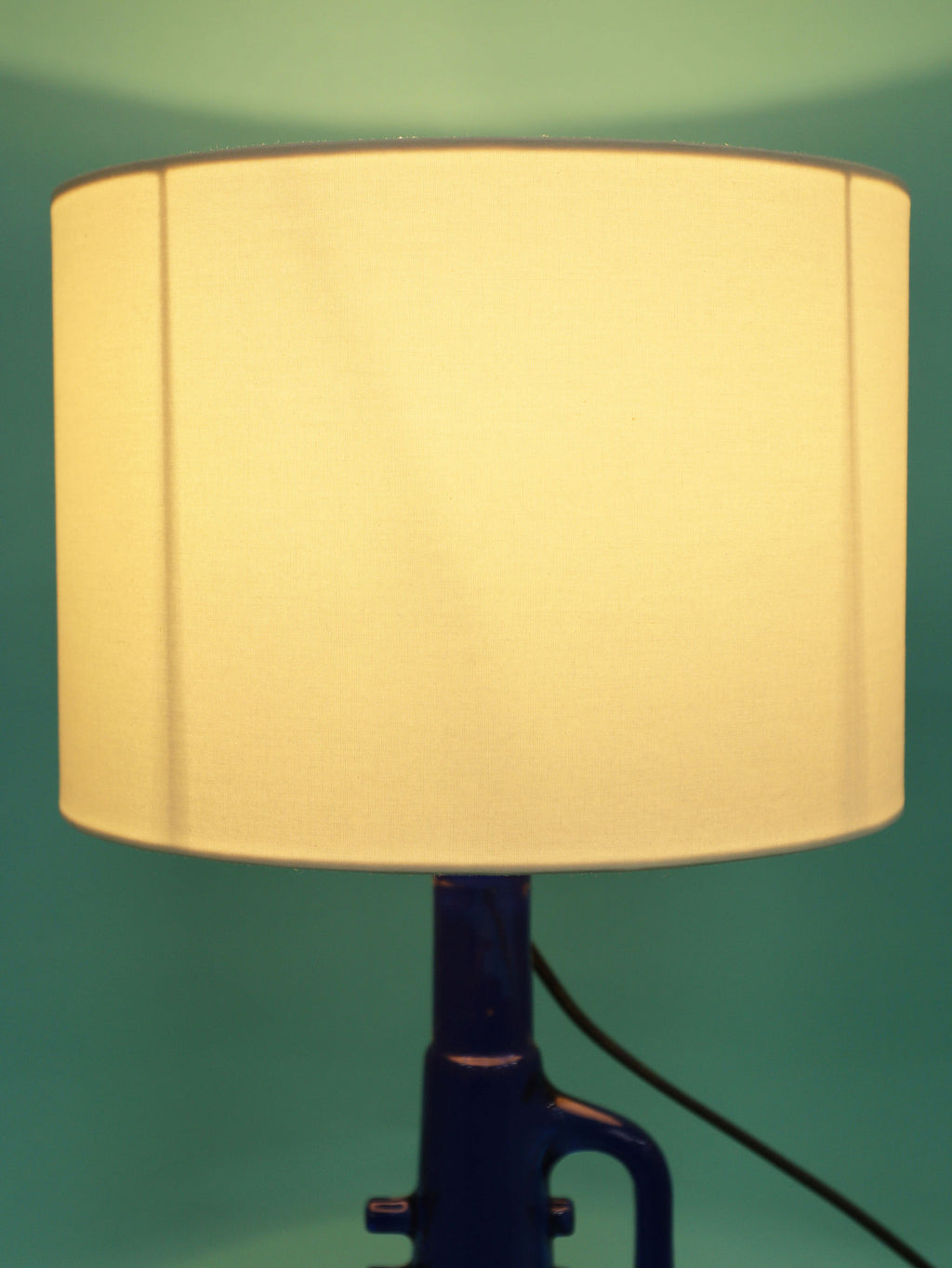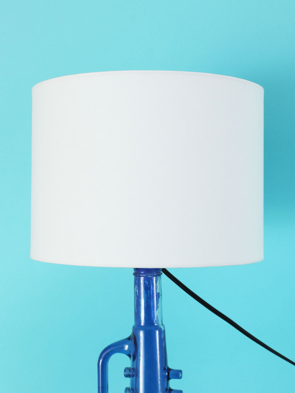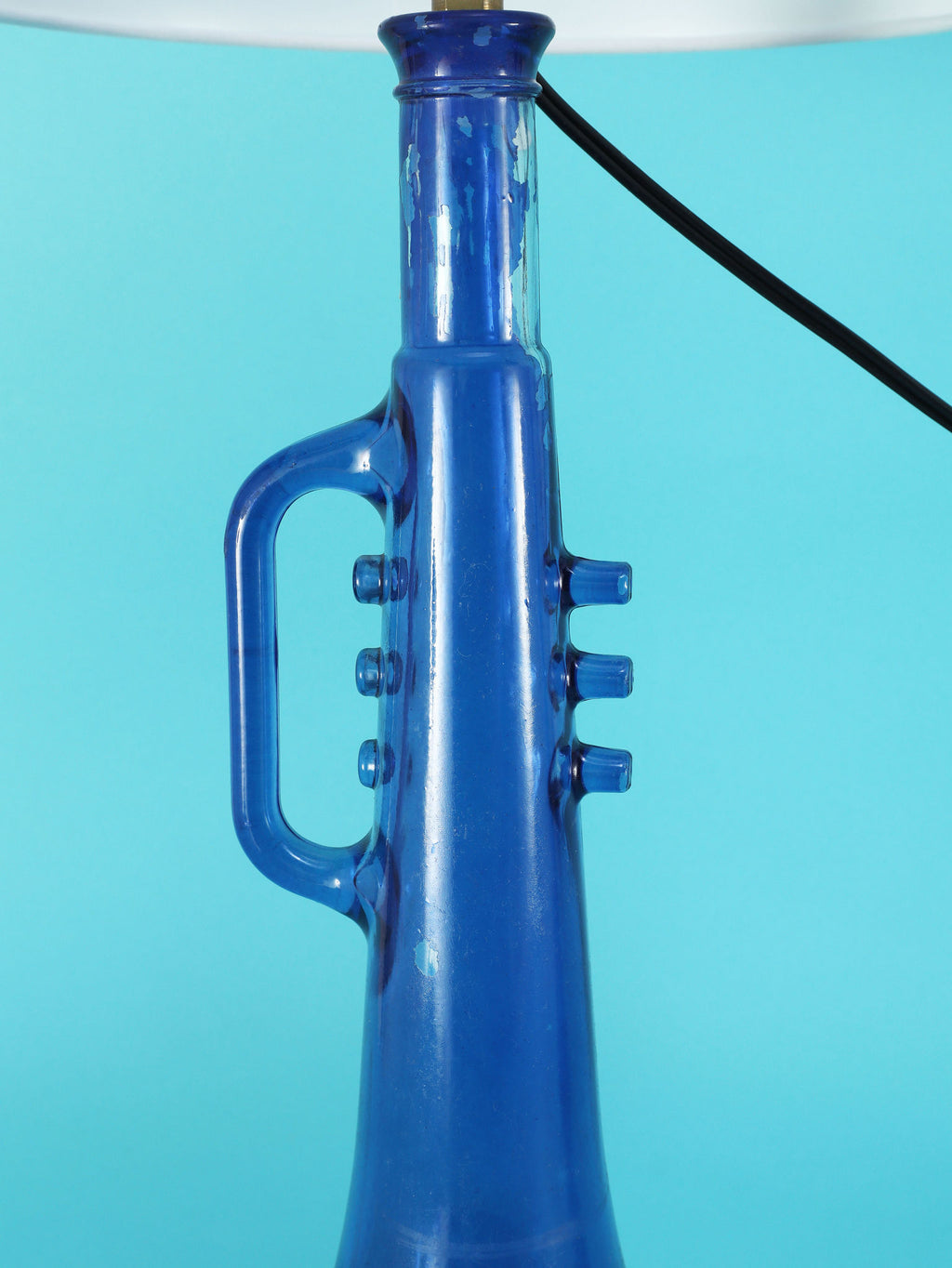 鮮やかなコバルトブルーが美しい、1970年代(推定)に作られたガラス製のテーブルランプです。トランペットを模したユニークで遊び心のあるフォルムが目を惹きます。明かりを灯すと、深い青色のガラスを通して幻想的な光が広がり、お部屋をムーディーに演出してくれます。ミッドセンチュリーやモダンなインテリアにのアクセントとしてもおすすめです。オブジェとして飾っておくだけでも存在感のある、アートピースのような照明です。2つセットでシンメトリーに配置するのも素敵です。