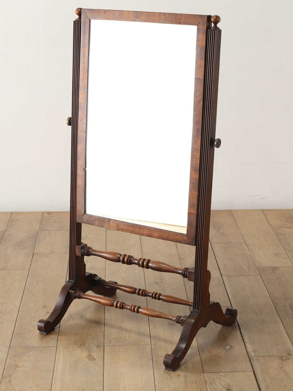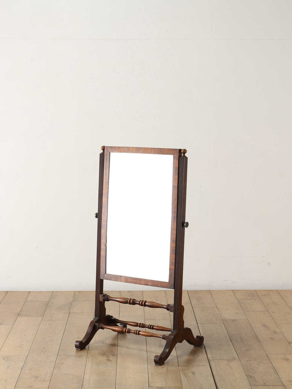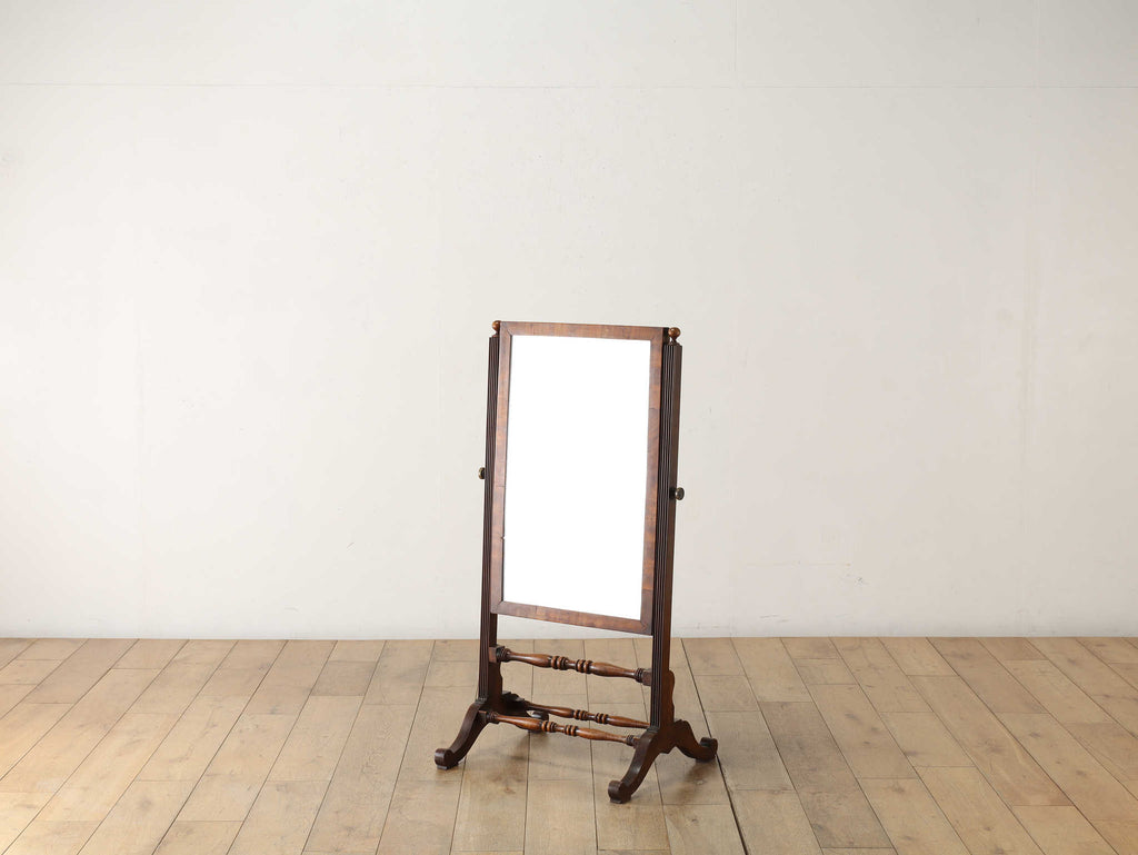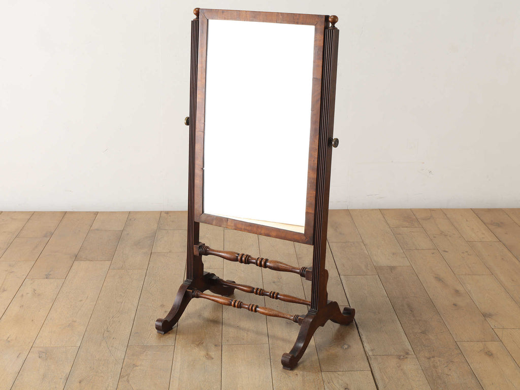 こちらの壮麗なマホガニー材のシュバルミラーは、推定ながら1830年代(推定)にリージェンシー様式を継承、時を超えた美しさを持つ逸品です。長きにわたり大切にされてきたマホガニー材は、深い色味と豊かな木目、そして経年による特有の味わいを醸し出しています。装飾を抑えつつも優雅な印象を与えるリージェンシー様式のデザインは、空間に洗練された気品をもたらし、圧倒的な存在感を放ちます。その姿見としての役割を超え、まるで過去の物語を静かに語りかけるような風格。ドレッシングルームや広間のアクセントとして、空間を格上げしてくれることでしょう。クラシカルな美学を宿した珠玉の一品です。