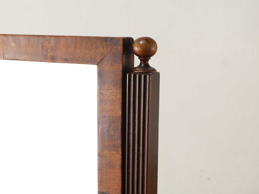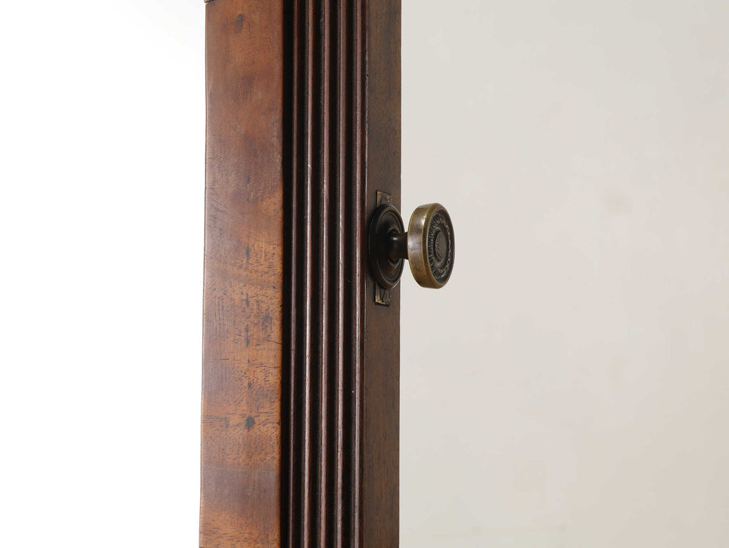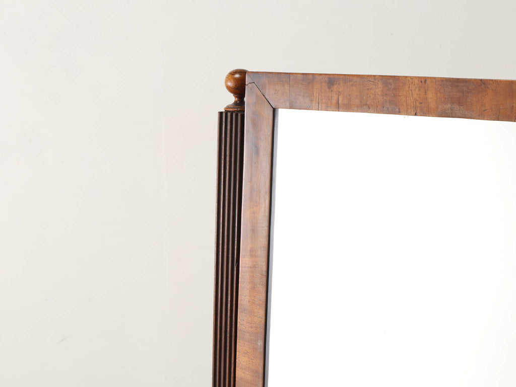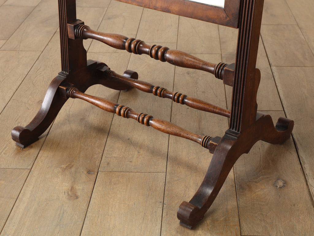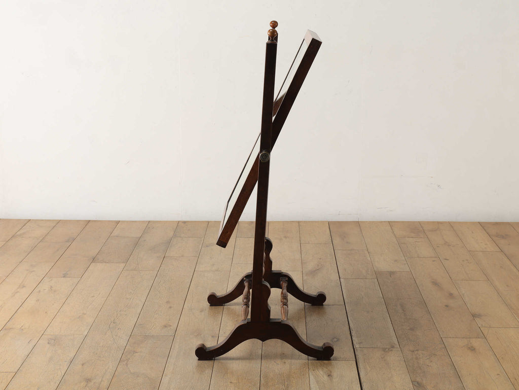 こちらの壮麗なマホガニー材のシュバルミラーは、推定ながら1830年代(推定)にリージェンシー様式を継承、時を超えた美しさを持つ逸品です。長きにわたり大切にされてきたマホガニー材は、深い色味と豊かな木目、そして経年による特有の味わいを醸し出しています。装飾を抑えつつも優雅な印象を与えるリージェンシー様式のデザインは、空間に洗練された気品をもたらし、圧倒的な存在感を放ちます。その姿見としての役割を超え、まるで過去の物語を静かに語りかけるような風格。ドレッシングルームや広間のアクセントとして、空間を格上げしてくれることでしょう。クラシカルな美学を宿した珠玉の一品です。