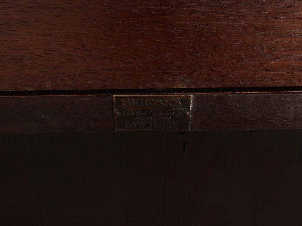 1910年代(推定)イギリスで作られたブックケースです。深い色艶のマホガニー材で、中央の優美なオーバル意匠が気品を添えます。両サイドのガラス扉から漏れる光は、中に飾る器や思い出を美しく引き立てます。端正な佇まいと確かな手仕事は、英国の伝統と誇りの証。空間に静かな奥行きをもたらし、日々の暮らしを格上げしてくれる一生もののギャラリーピースです。