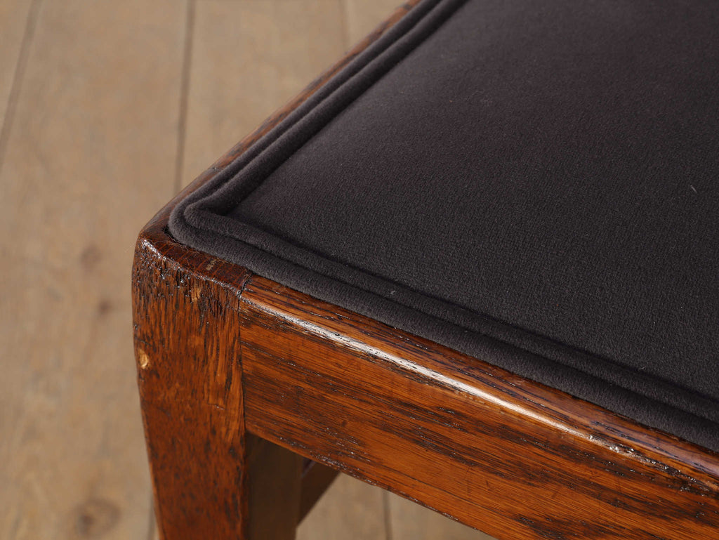 シンプルなフォルムにも、あたたかみやこだわりが感じられるアーツ&クラフツチェアです。1860年代 - 1910年代にかけて行われたアーツ&クラフツ運動は、それまで主流であった豪華絢爛なデザインではなく、手仕事を大切にしていた原点に戻り質のいいもの長く使えるもの、 本当に美しいものを作ろうとイギリスのウィリアム・モリスなどが起こした運動です。芸術意識を高める社会活動は当時の家具デザインにも影響を与えています。【ファブリック】