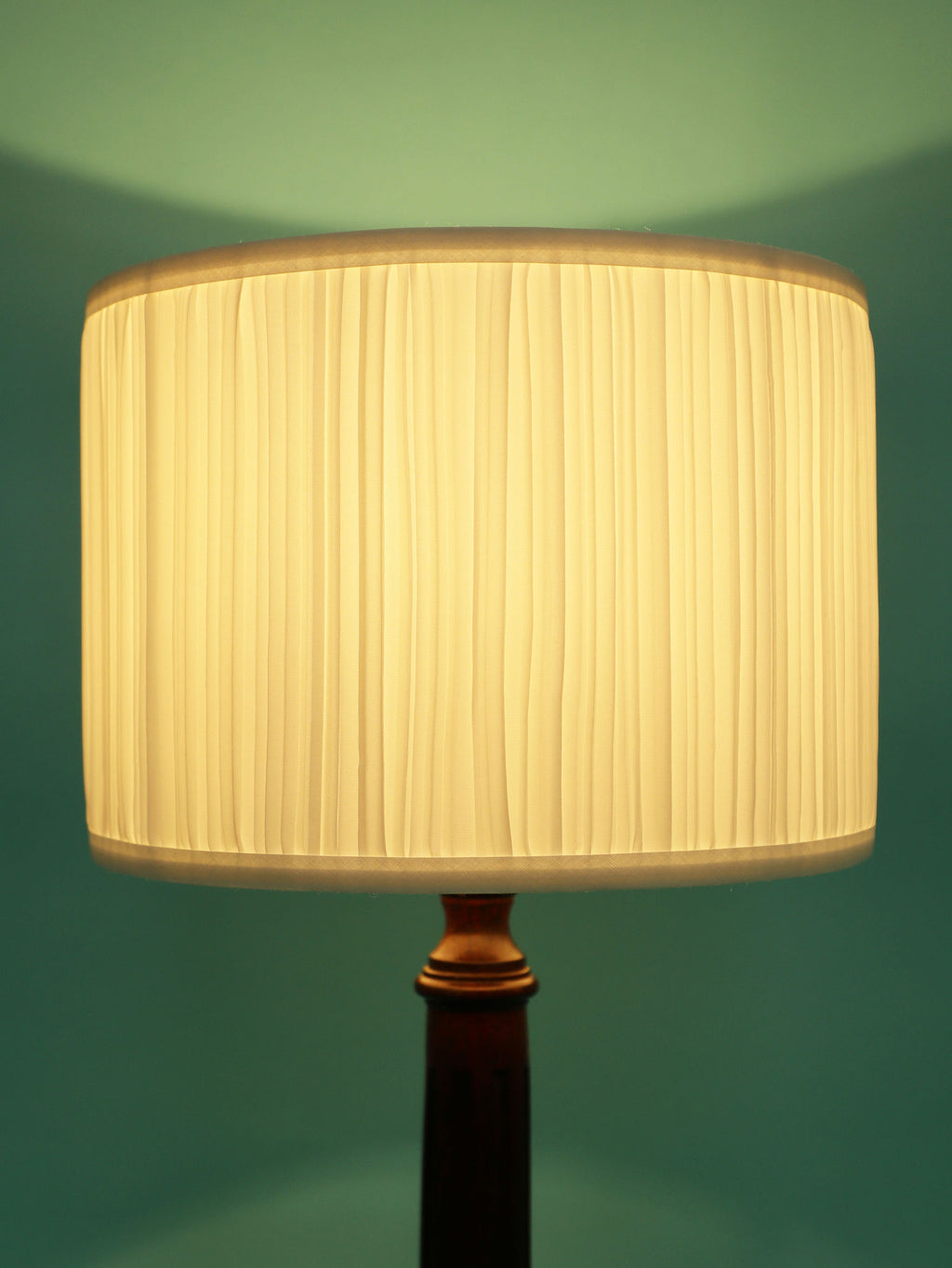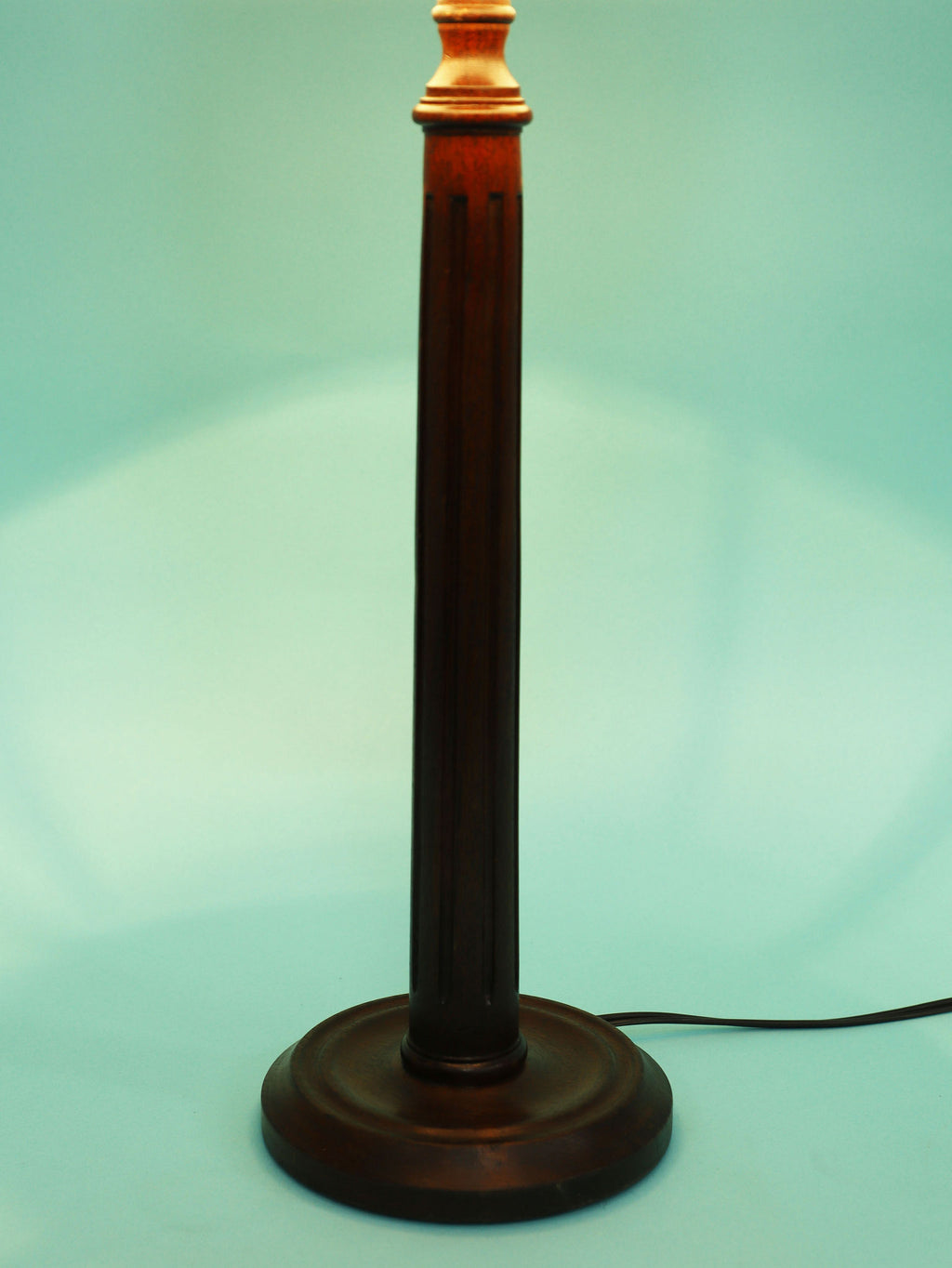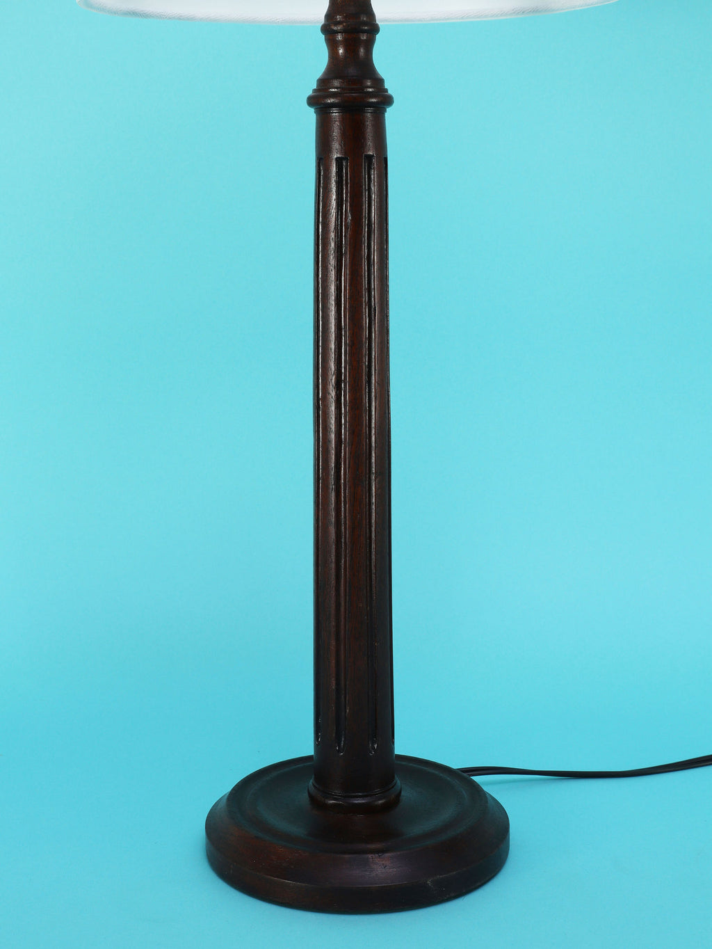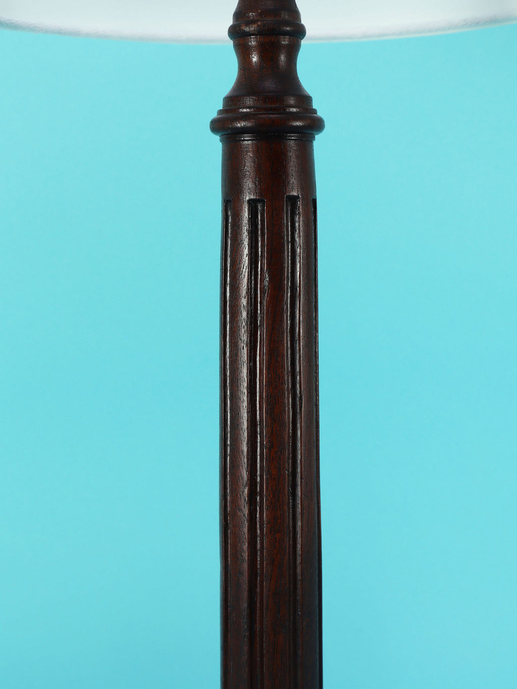 シンプルでモダンな印象のテーブルランプ。深いダークブラウンのベースは、この時代の英国家具らしい重厚で安定感のある円形台座と、すらりと伸びた柱状の支柱が特徴です。支柱には控えめな溝が縦に施されており、過度な装飾を排したデザインが、木材の持つ落ち着いた雰囲気を際立たせています。長年の時を経てきた木の古艶と深みのある色が、空間に確かな信頼感と落ち着きをもたらします。上部には、円柱型の白いシェードがつくことで、重厚なベースとのコントラストが生まれ、書斎やベッドサイドにモダン・クラシックな光を届けてくれるでしょう。飽きのこないシンプルな佇まいは、様々なインテリアに調和する一品です。