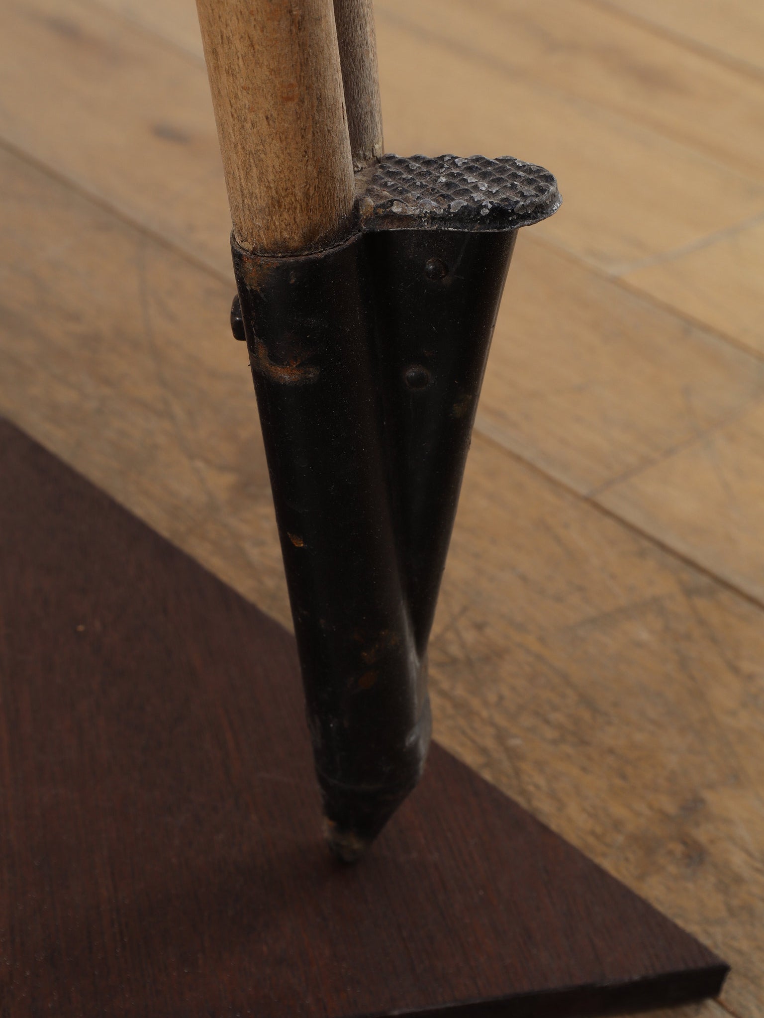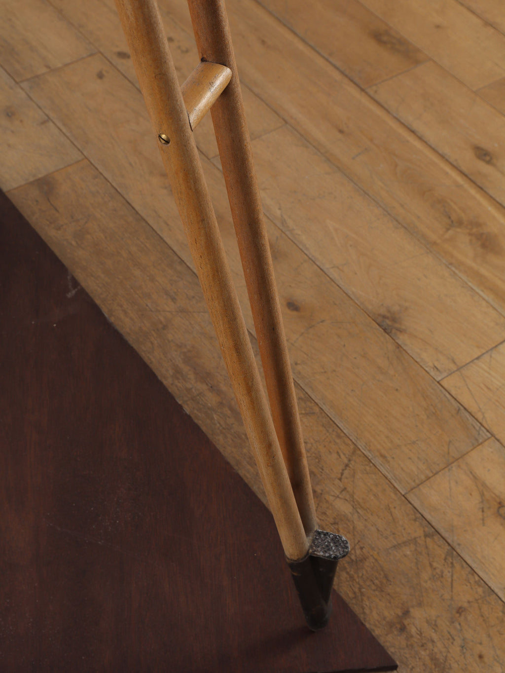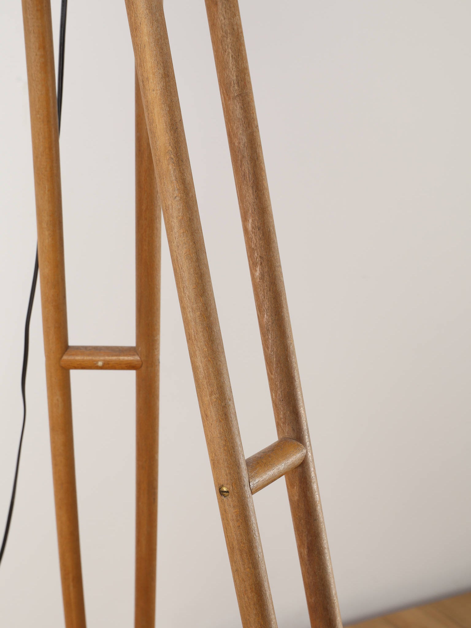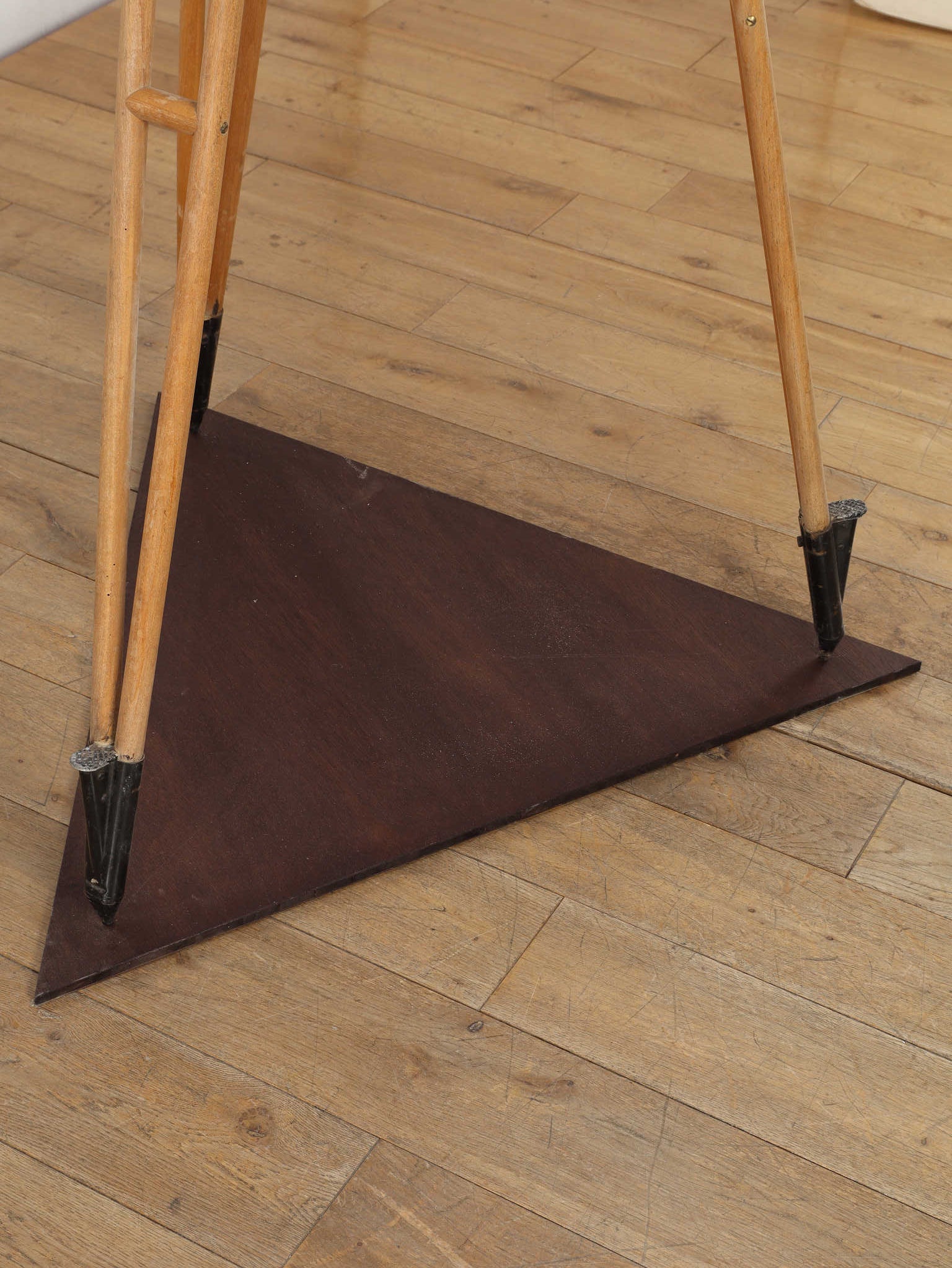 1890年代(推定)、英国製のシネマランプです。かつて航海や舞台の現場を照らしていたであろう、実用性から生まれた機能美と力強いフォルムが魅力です。圧倒的な存在感を放つヘッド部分は、重厚なメタルの質感が丁寧に磨き上げられ、クールでインダストリアルな美しさを湛えています。それを支える三脚の木材ならではの温かみと金属パーツの経年変化が相まって、味わい深い表情を見せます。広々としたリビングやアトリエ、店舗のディスプレイとして置けば、空間を一変させるドラマティックなアクセントとなります。歴史のロマンと機械的な造形美が融合した、他にはない特別な照明器具です。