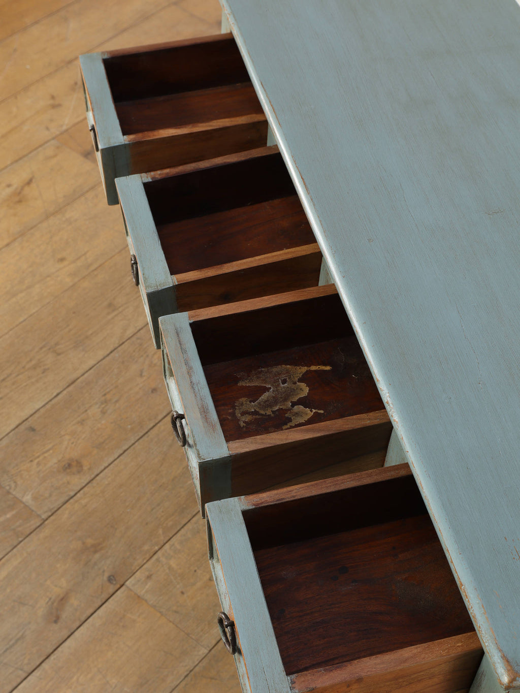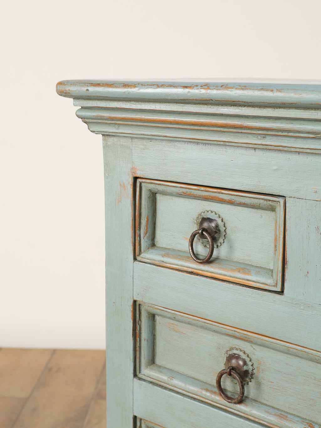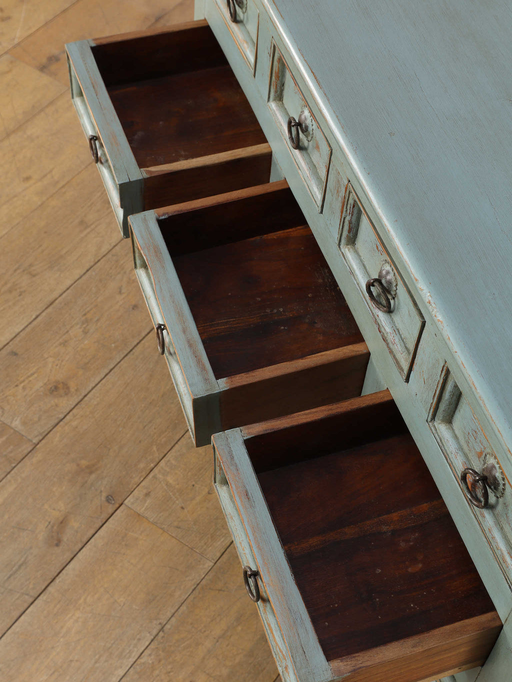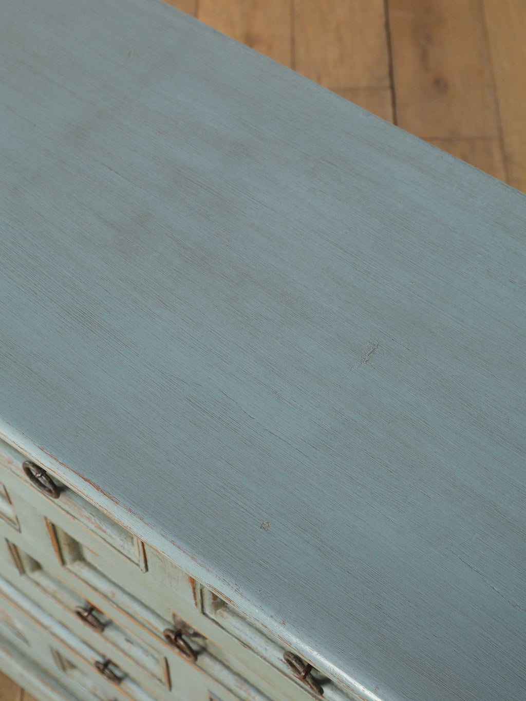 程よいサイズ感が魅力的なチェスト。一番の魅力は、見る人をワクワクさせるような、小さなたくさんの抽斗が配置されたユニークなデザインでしょう。アクセサリーや文具、大切な小物など、細かく分けて収納できる実用性の高さと、まるで宝箱のような楽しさを兼ね備えています。表面は、時代を経て風合いを増したようなシャビーな質感のペイントが施されており、落ち着いた色合いでありながら、お部屋にスパイスのようなアクセントを加えてくれます。単なる収納家具としてだけでなく、その唯一無二のインテリア性により、空間の主役となること間違いなしです。収納力とデザイン性を両立した、遊び心あふれるチェストをぜひお手元にお迎えください。
