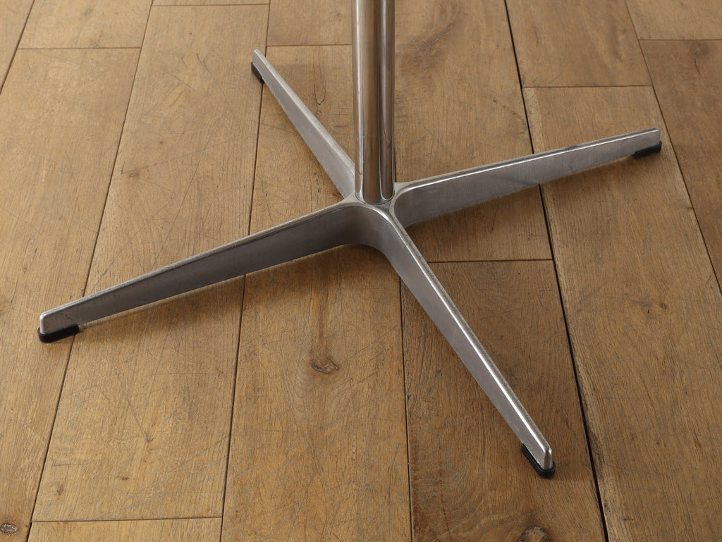 デンマークの巨匠デザイナーが生み出した、フリッツ・ハンセンのアイコニックなダイニングテーブルです。W1000mm、H720mmという、日本の住宅にも馴染みやすいコンパクトなサイズは、ダイニングスペースだけでなく、ワークスペースやカフェテーブルとしても活躍します。天板には、耐久性に優れたホワイトラミネートを使用。傷や汚れに強く、お手入れが簡単なので、日常の食卓にぴったりです。そこに組み合わされるのは、軽やかで美しいスチール製の脚。シンプルでありながらも計算し尽くされたデザインは、空間に洗練されたモダンな雰囲気を加えてくれます。このテーブルは、単なる家具で済ますのではなく、北欧デザインが持つ「機能性と美しさの融合」を体現した、まさにアート作品です。時を経ても色褪せないそのデザインは、日々の暮らしに静かな安らぎと上質さをもたらしてくれるでしょう。