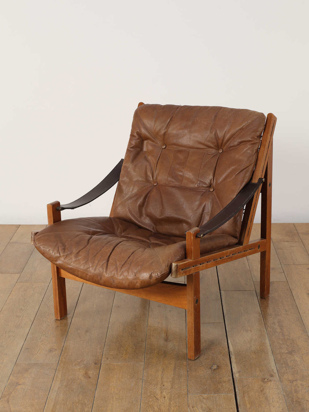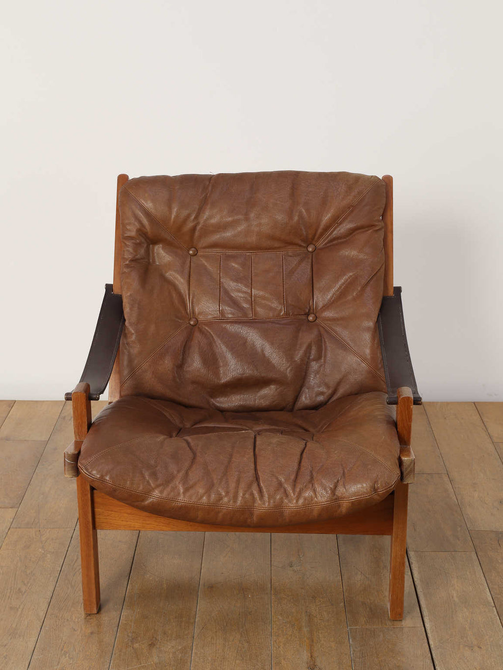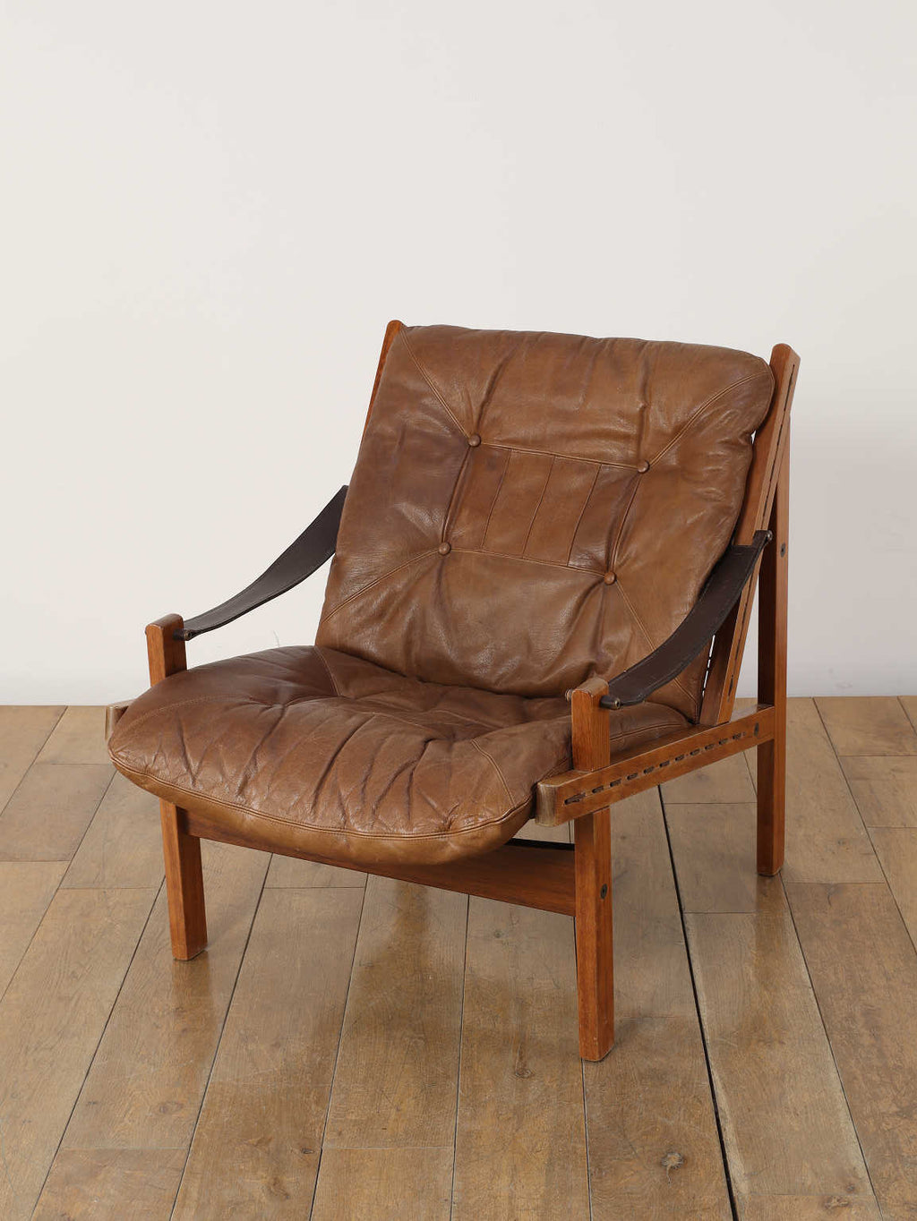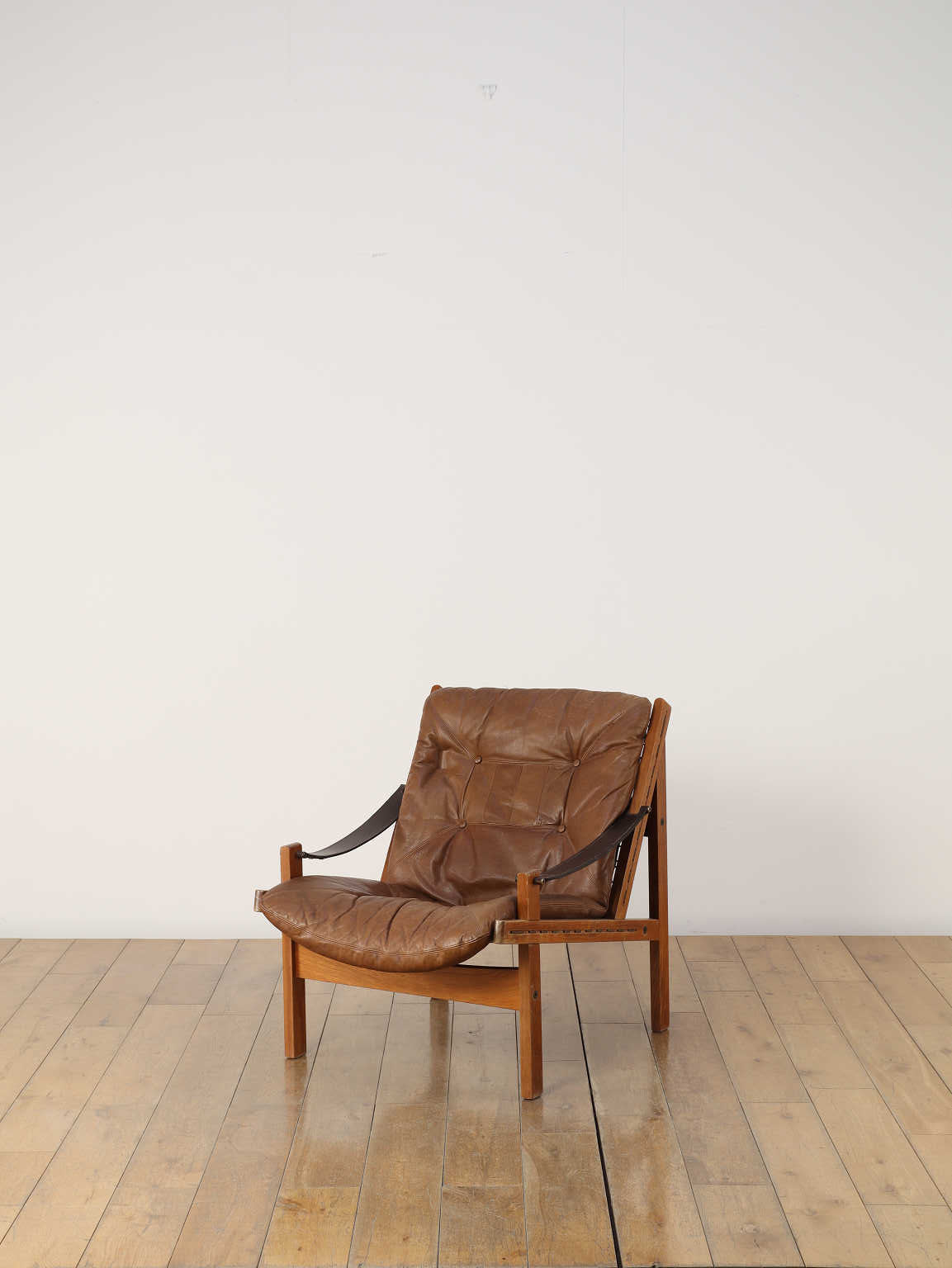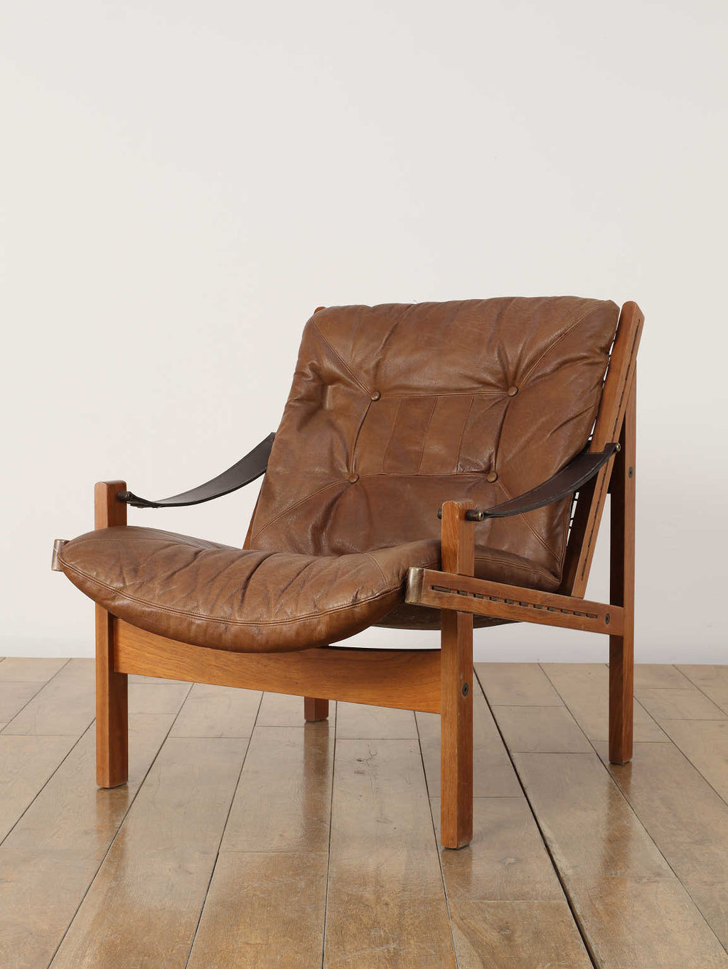 著名なデザイナー、トールビョルン・アフダル(Torbj?rn Afdal)とブルクスボ(Bruksbo)が共に手掛けた、極めて美しいイージーチェア。シンプルながらも素材とフォルムを洗練された形で表現し、自然な温もりのあるウッドと経年変化による味わいのあるレザーが魅力を最大限に引き出しています。ゆとりのある大きさのレザーシートと背もたれは体を優しく受け止め、上質な座り心地を提供します。