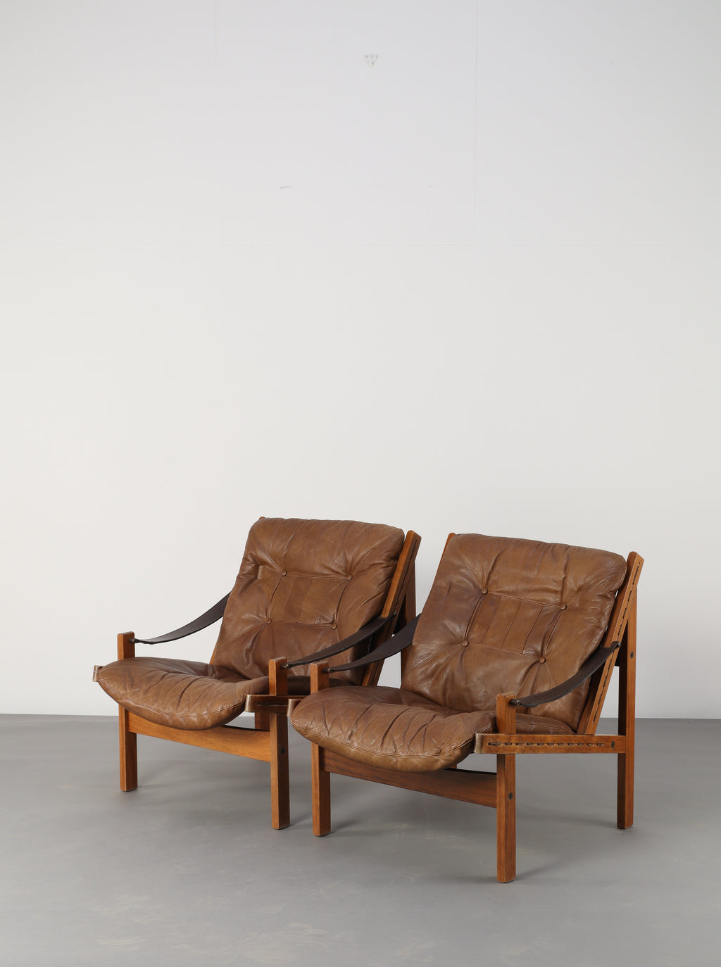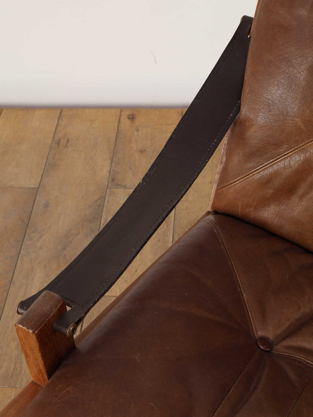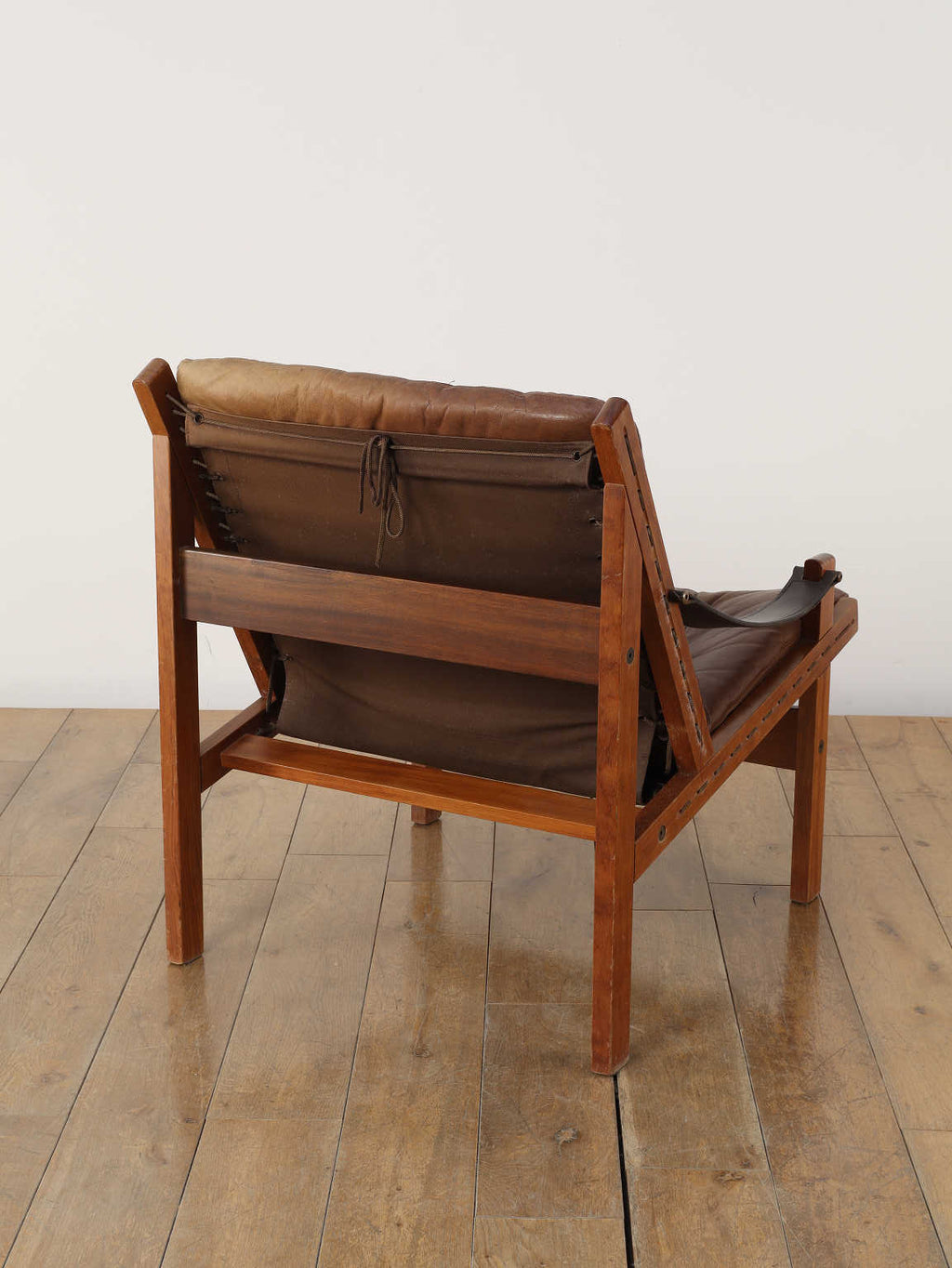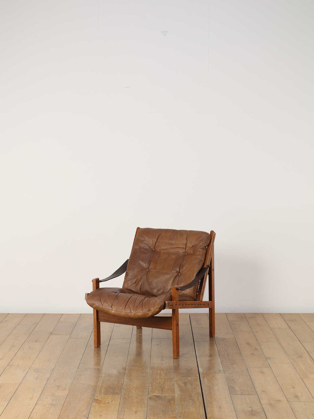 著名なデザイナー、トールビョルン・アフダル(Torbj?rn Afdal)とブルクスボ(Bruksbo)が共に手掛けた、極めて美しいイージーチェア。シンプルながらも素材とフォルムを洗練された形で表現し、自然な温もりのあるウッドと経年変化による味わいのあるレザーが魅力を最大限に引き出しています。ゆとりのある大きさのレザーシートと背もたれは体を優しく受け止め、上質な座り心地を提供します。