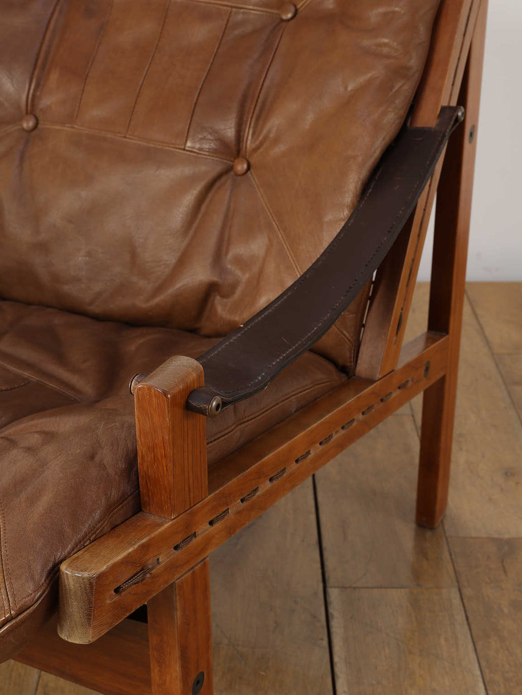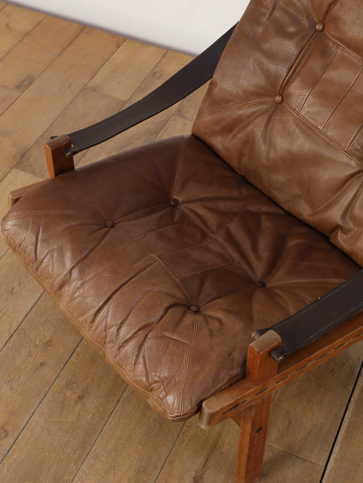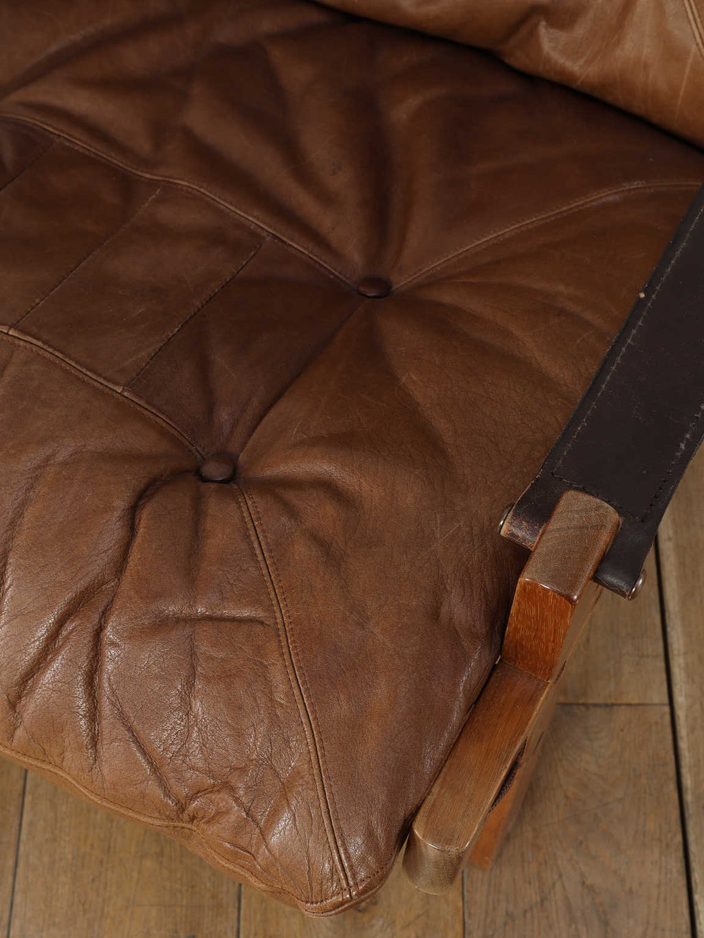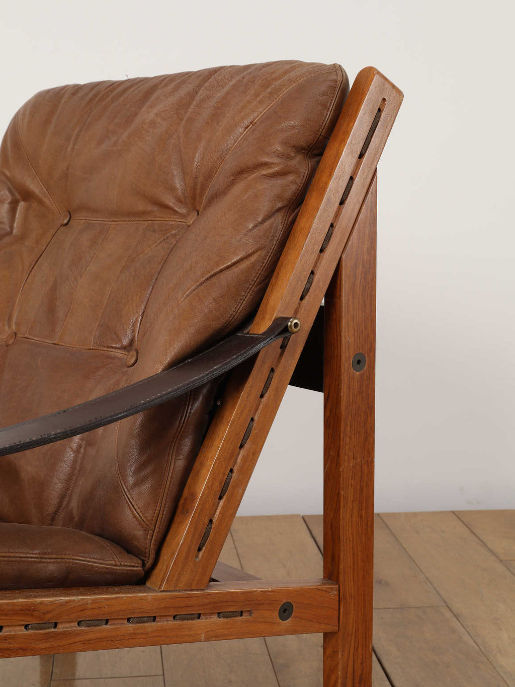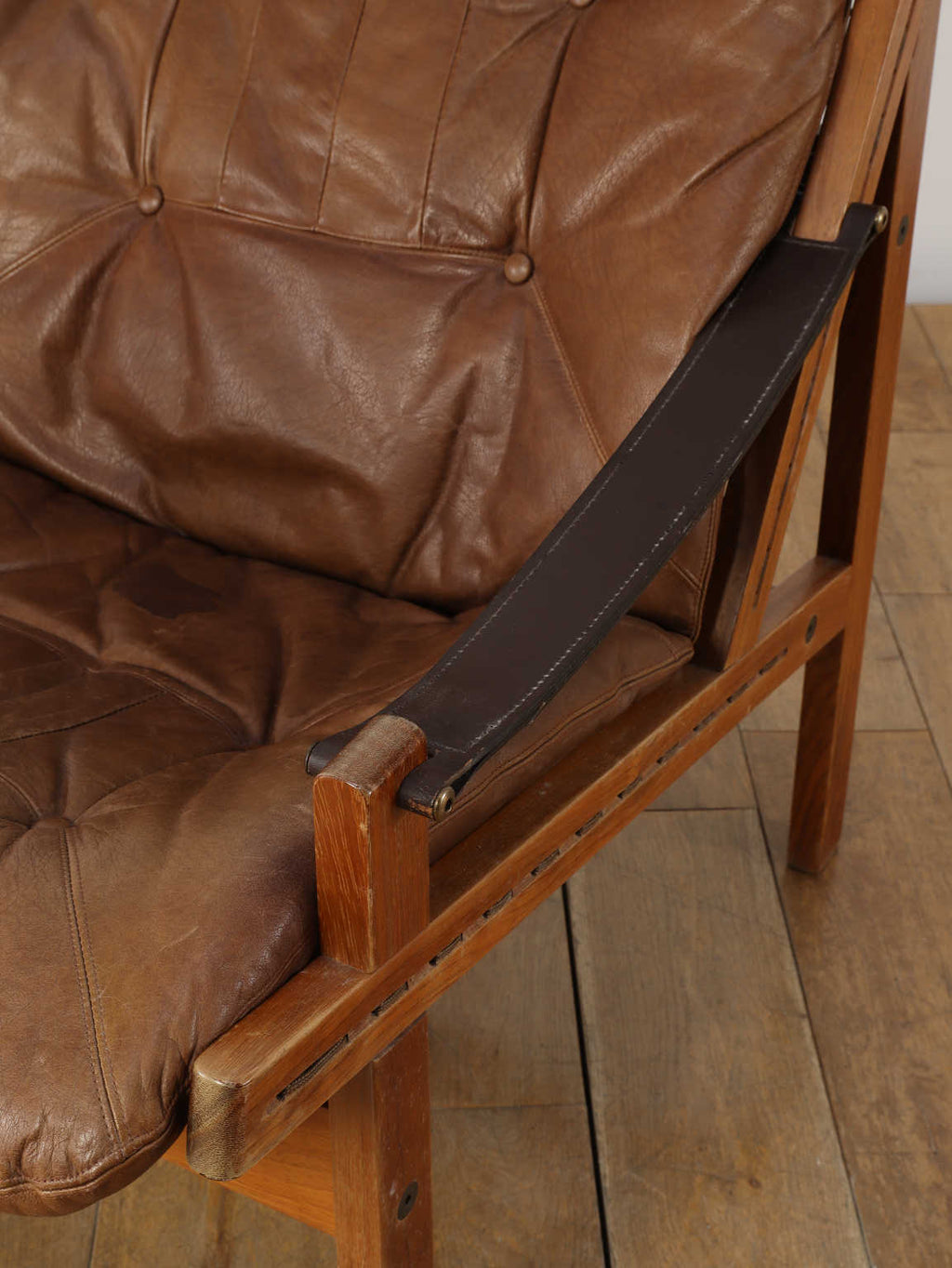 著名なデザイナー、トールビョルン・アフダル(Torbj?rn Afdal)とブルクスボ(Bruksbo)が共に手掛けた、極めて美しいイージーチェア。シンプルながらも素材とフォルムを洗練された形で表現し、自然な温もりのあるウッドと経年変化による味わいのあるレザーが魅力を最大限に引き出しています。ゆとりのある大きさのレザーシートと背もたれは体を優しく受け止め、上質な座り心地を提供します。