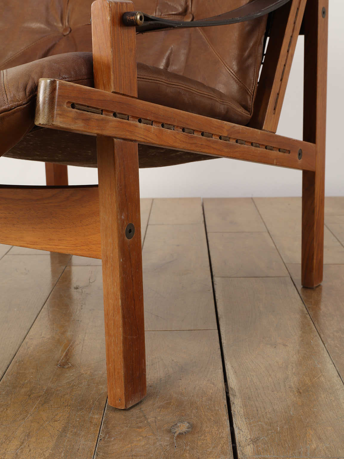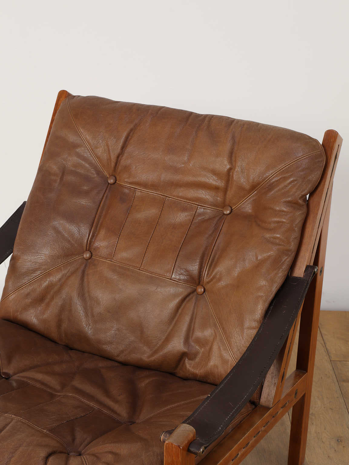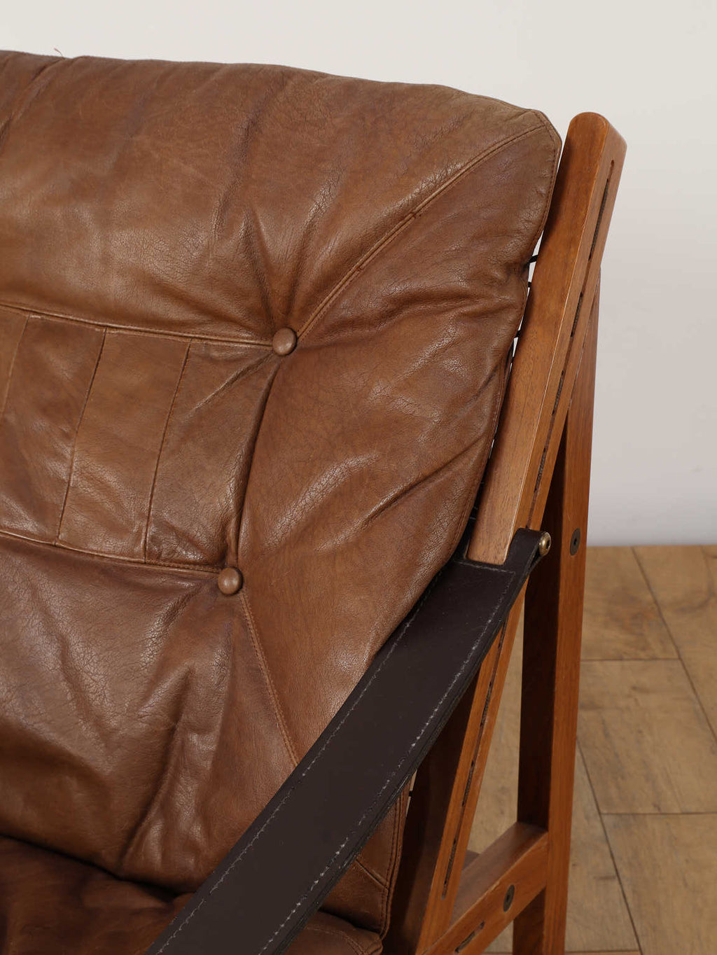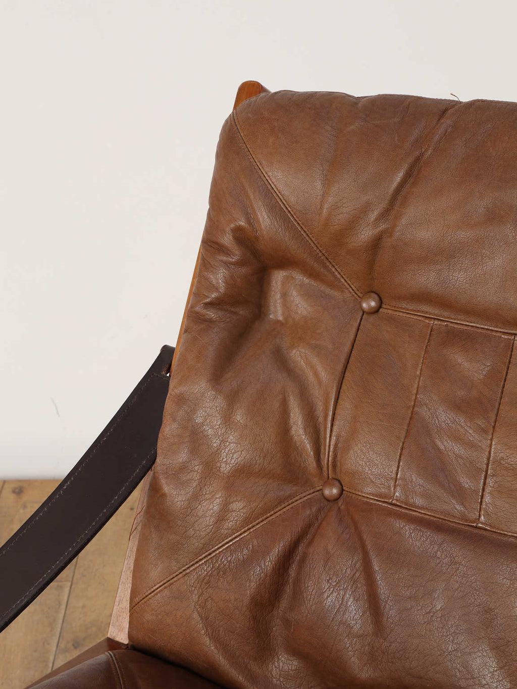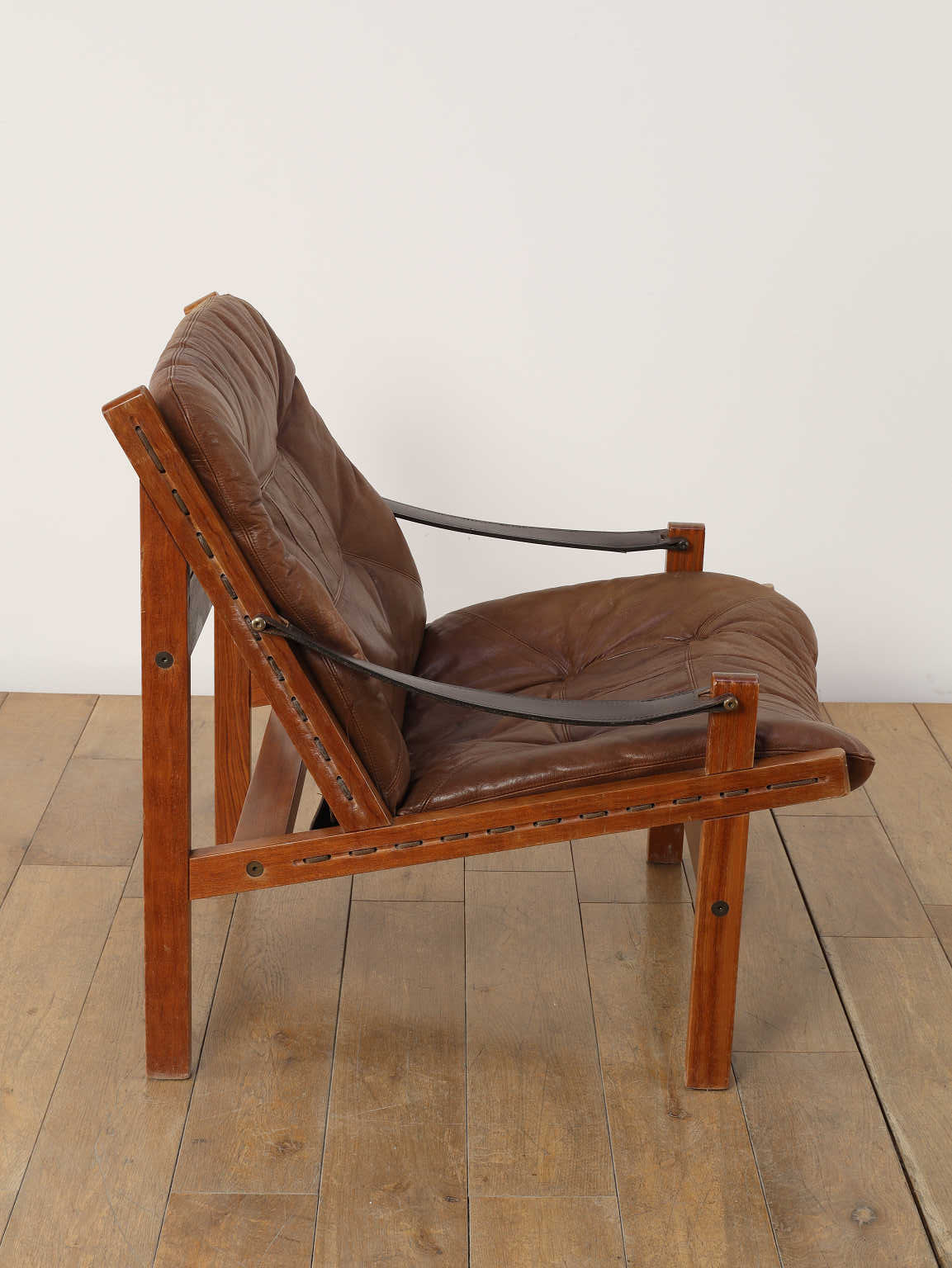 著名なデザイナー、トールビョルン・アフダル(Torbj?rn Afdal)とブルクスボ(Bruksbo)が共に手掛けた、極めて美しいイージーチェア。シンプルながらも素材とフォルムを洗練された形で表現し、自然な温もりのあるウッドと経年変化による味わいのあるレザーが魅力を最大限に引き出しています。ゆとりのある大きさのレザーシートと背もたれは体を優しく受け止め、上質な座り心地を提供します。