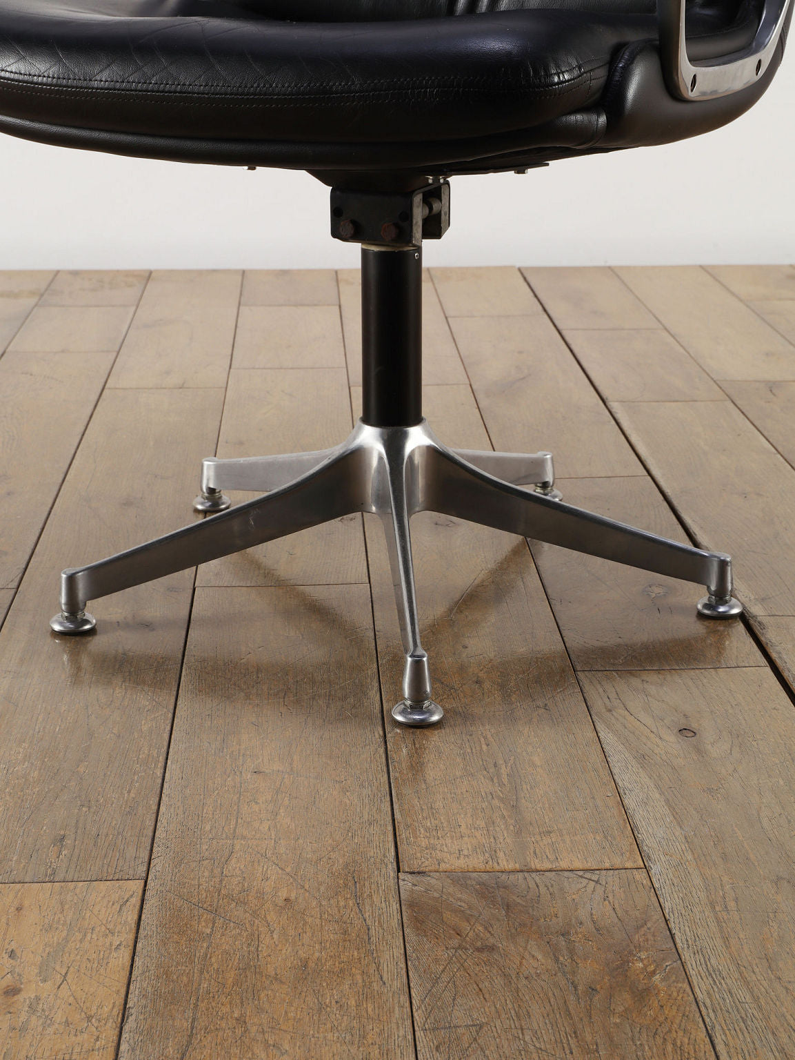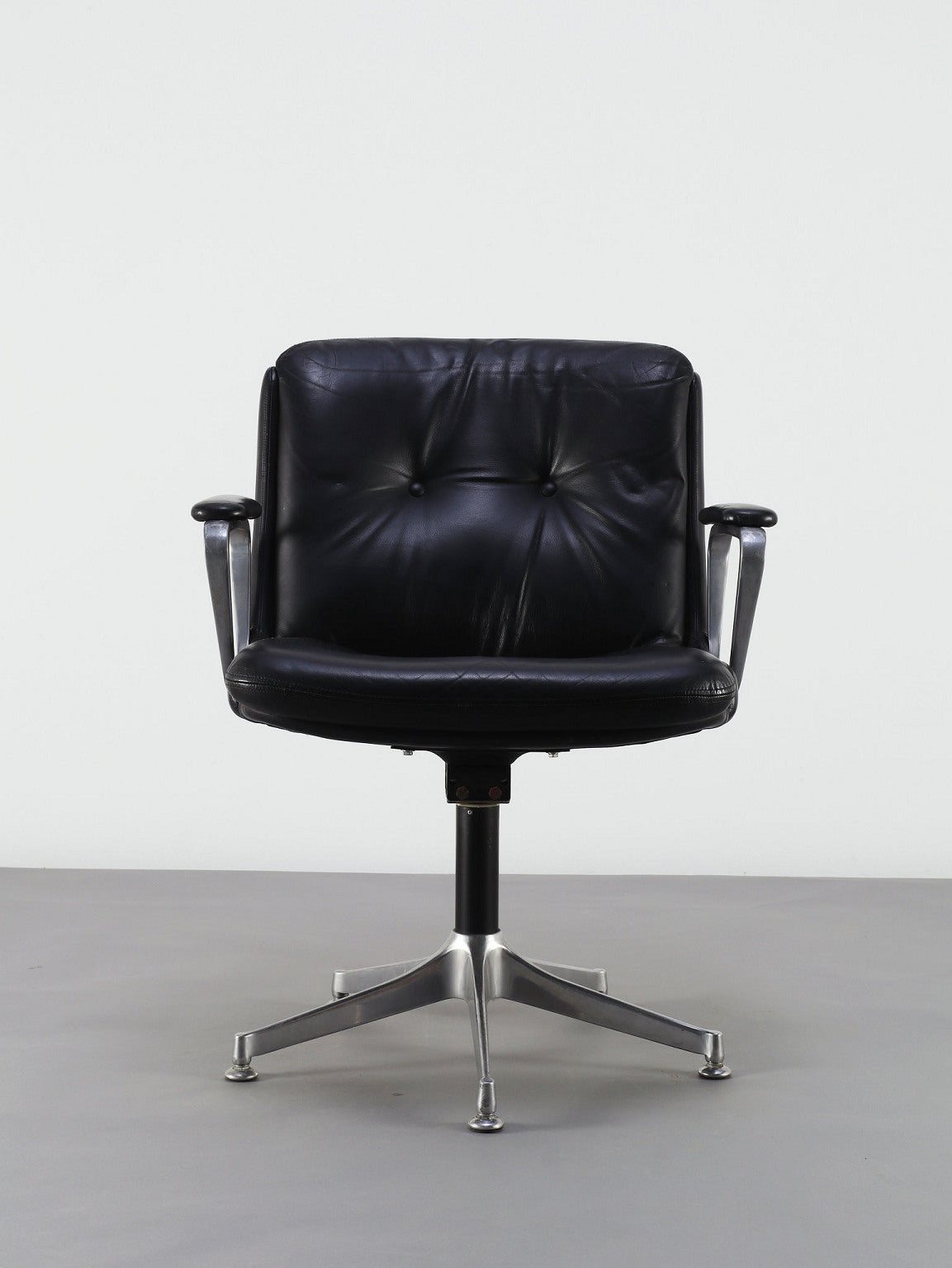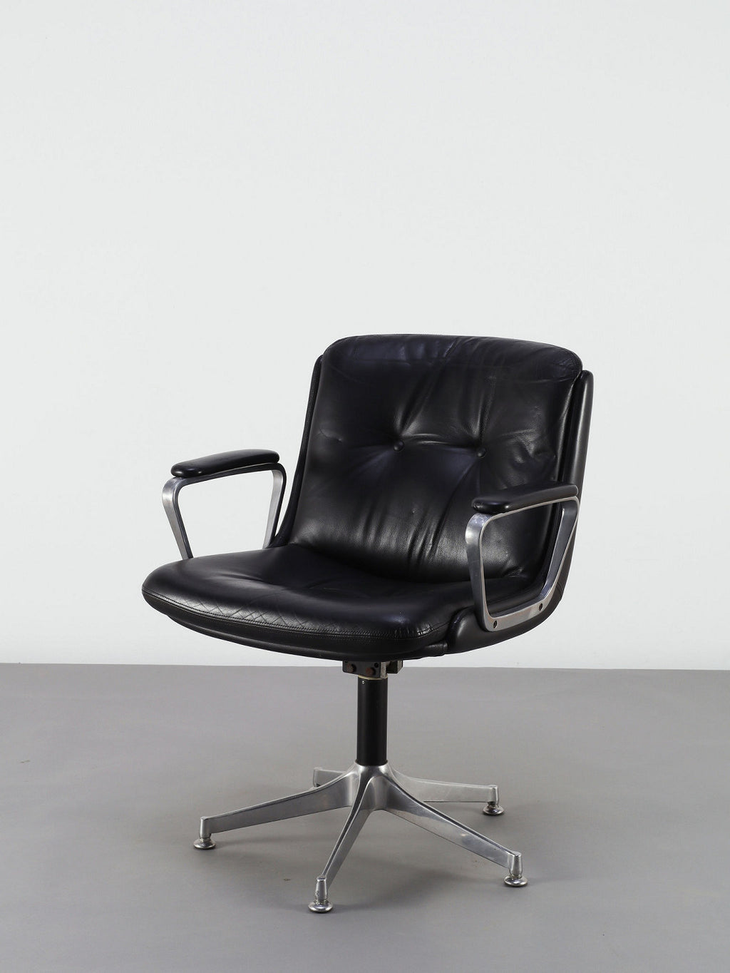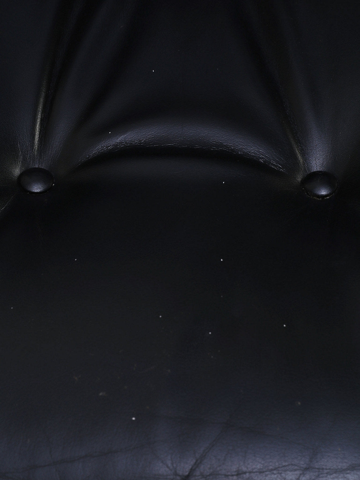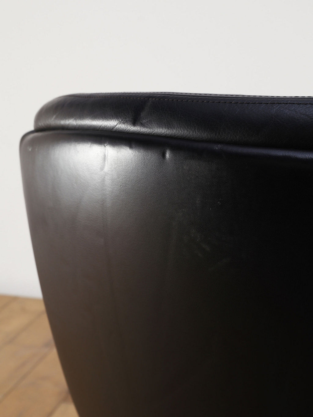 実用主義と美意識が高度に融合した、オランダ・ミッドセンチュリー期を象徴するデスクチェア。時を経て味わい深く艶を増したブラックレザーは、ヴィンテージならではの重厚なオーラを放っています。そこに組み合わされたクールなメタルベースとアームが、全体をモダンに引き締める絶好のアクセントに。身体をしっかりと支える座り心地は、長時間のデスクワークにおいても最良のパートナーとなるでしょう。無骨さと洗練が同居するこの一脚があることで、自宅の書斎やオフィスにクリエイティブな印象を与えてくれるでしょう。