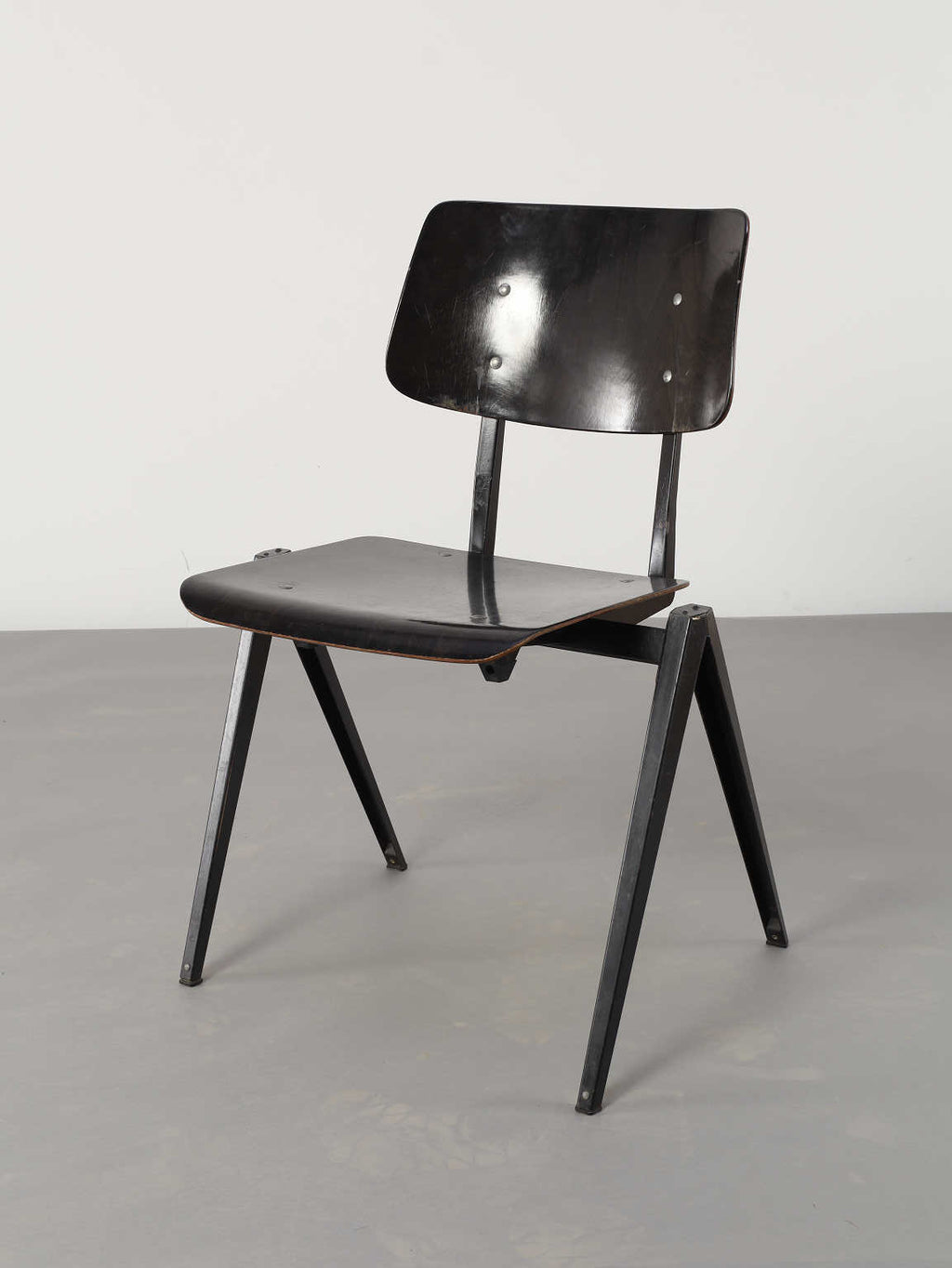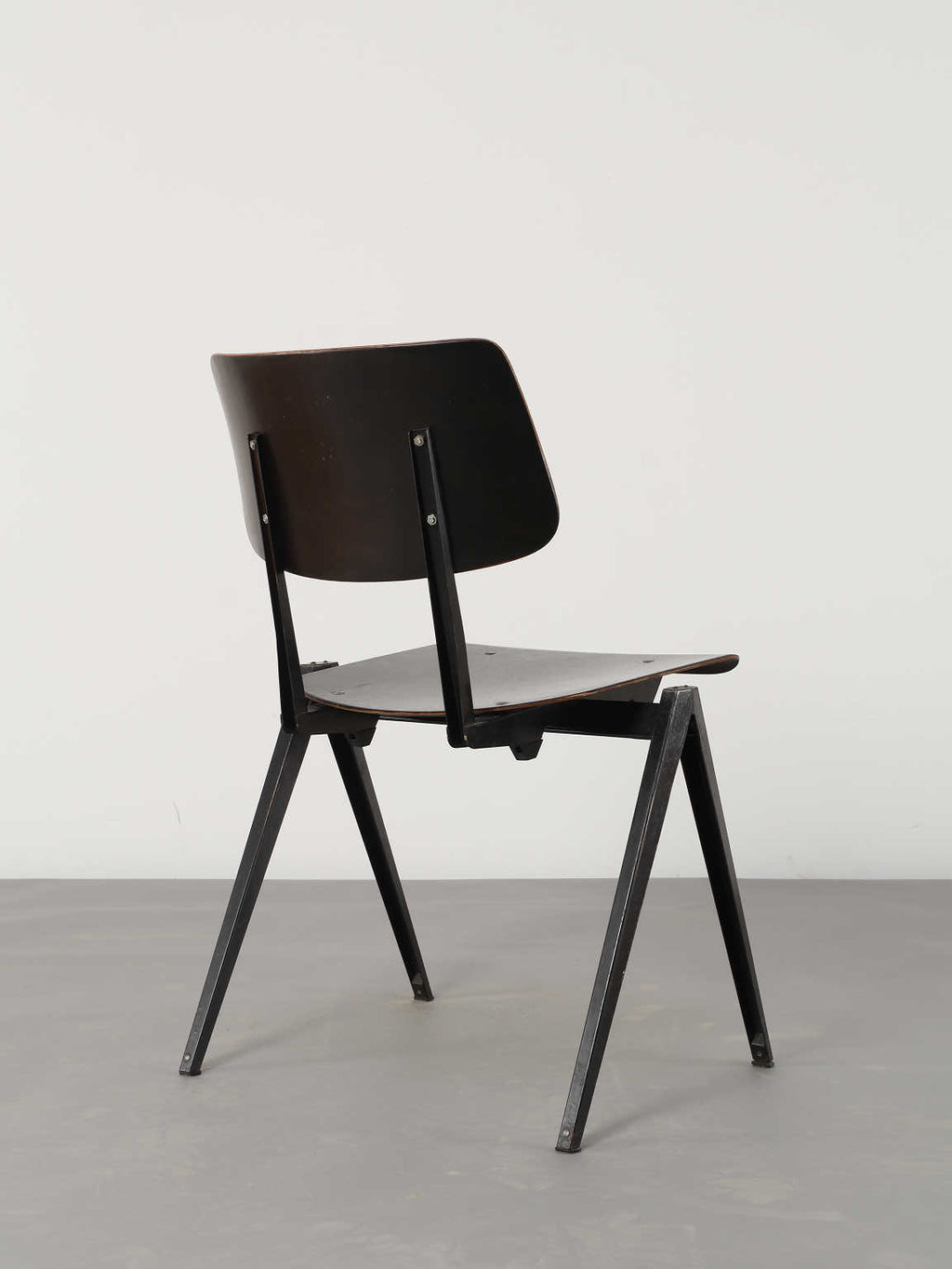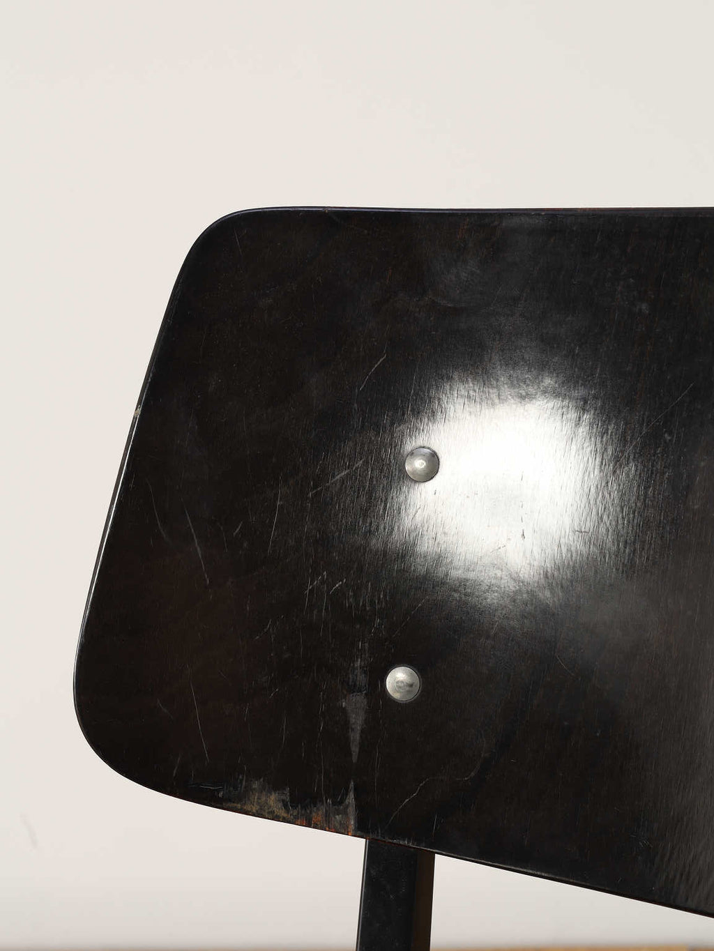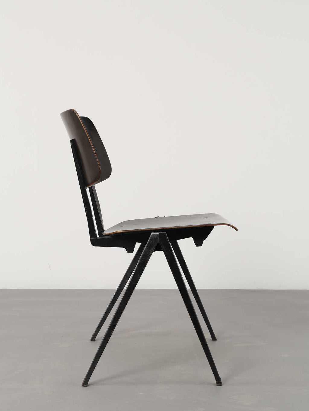 オランダヴィンテージを代表する家具メーカー、GALVANITAS社の実用性とデザイン性を兼ね備えたモデルNo.21のスタッキングチェア。ダークな色味のウッドと、左右対称のコンパス型のブラックメタルフレームの組み合わせが、インダストリアルでクールな雰囲気を演出します。ダイニングチェアとしてはもちろん、ワークデスクに合わせてアトリエのような雰囲気もお愉しみいただけます。スタッキングが可能なので、使わない時は重ねてコンパクトに収納できるのも嬉しいポイントです。